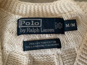 90年代ラルフローレンのテニスセーター(チルデンセーター)。ラインは黒に近い紺、黄色、赤で構成されています。素材はコットン85%、カシミア15%で、コットン100%よりも軽いニットです。