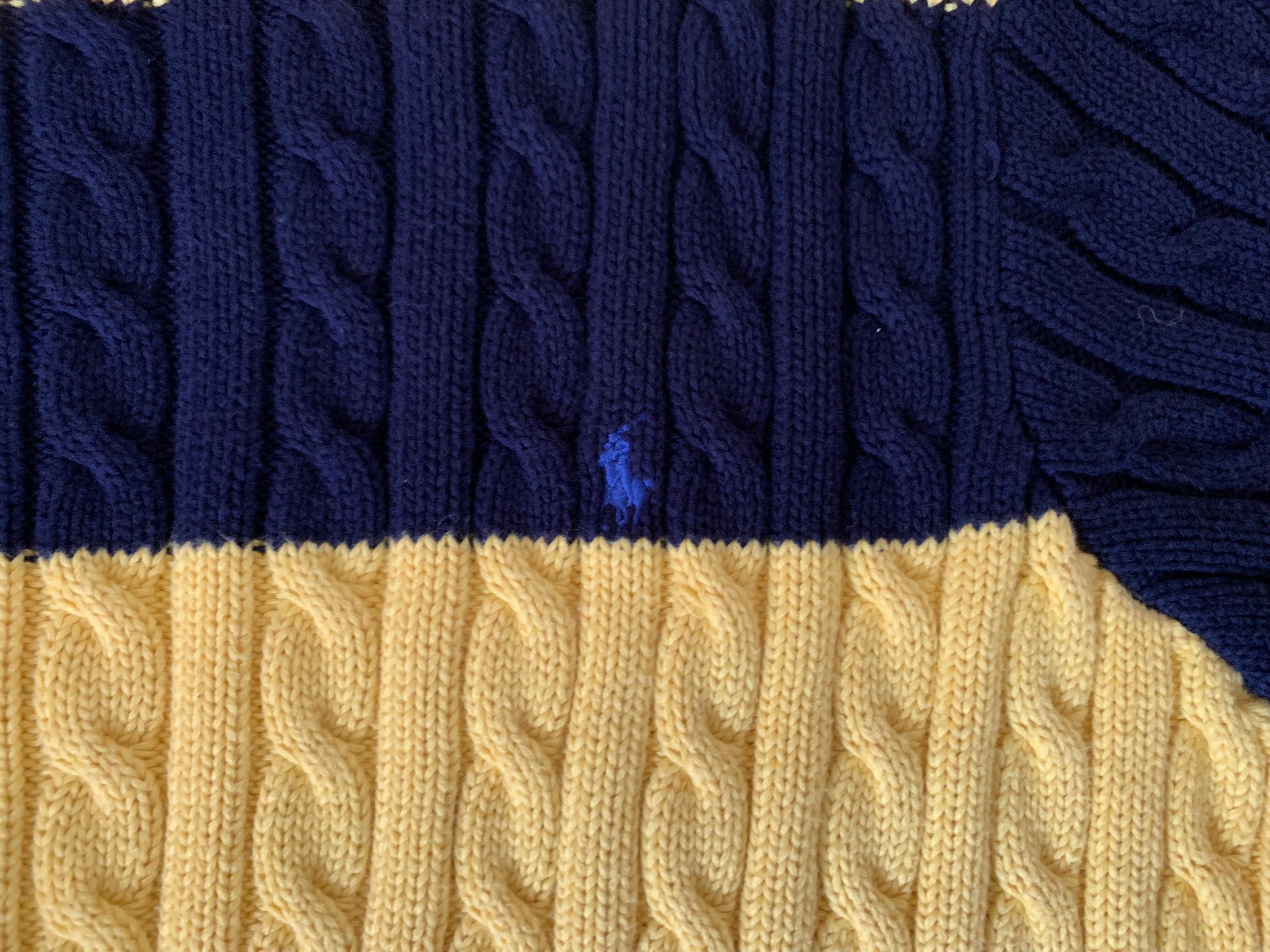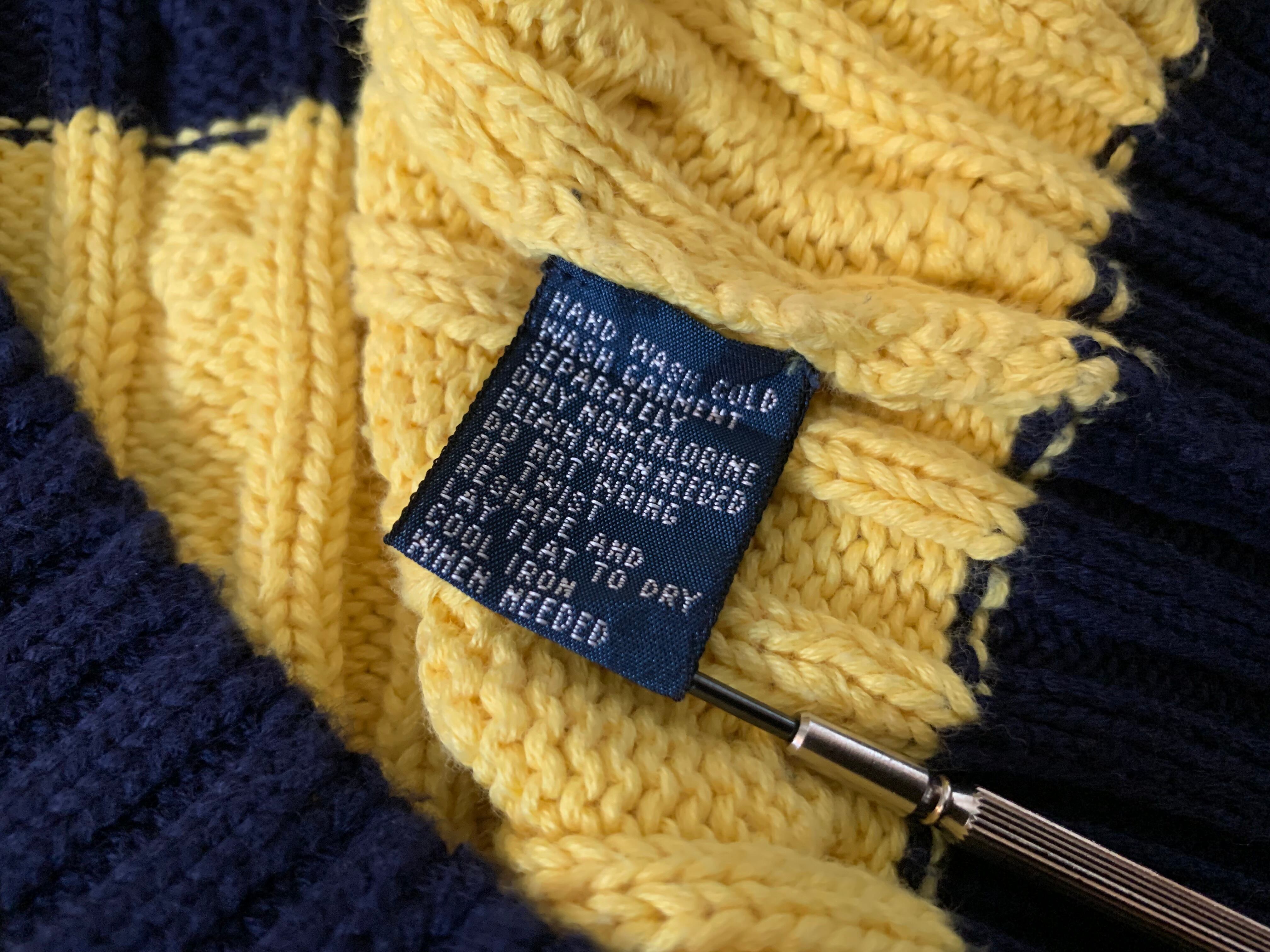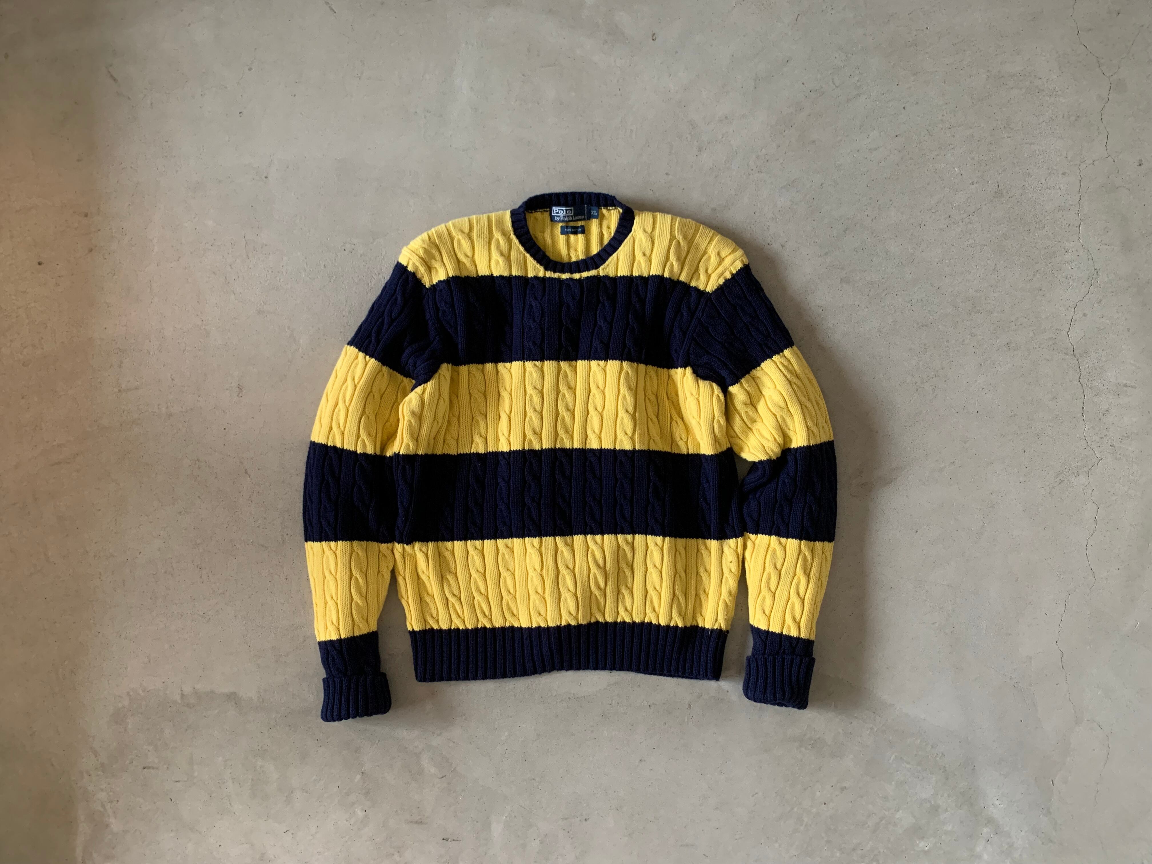 鮮やかなイエローとネイビーのボーダー柄が目を惹きます。
