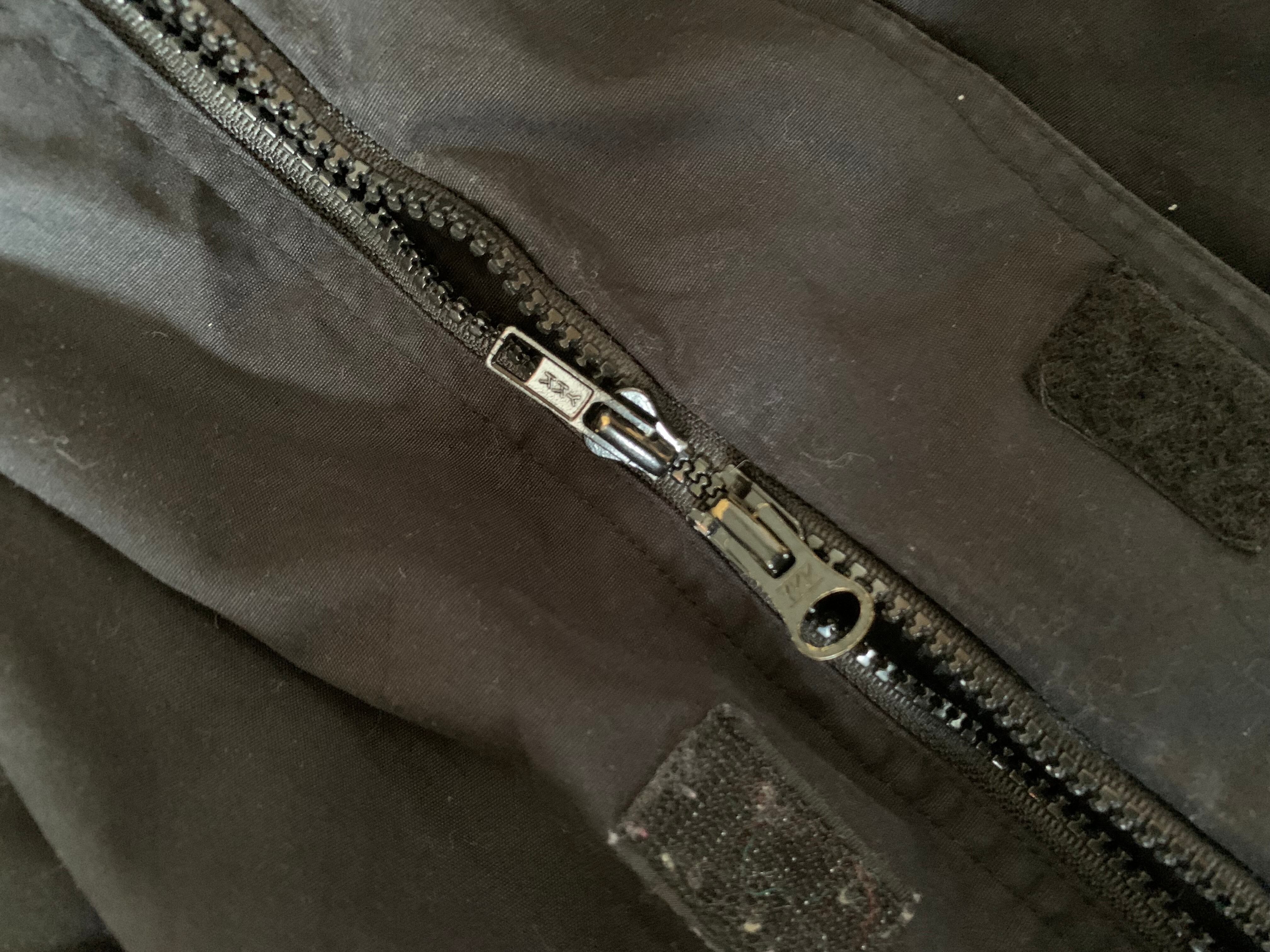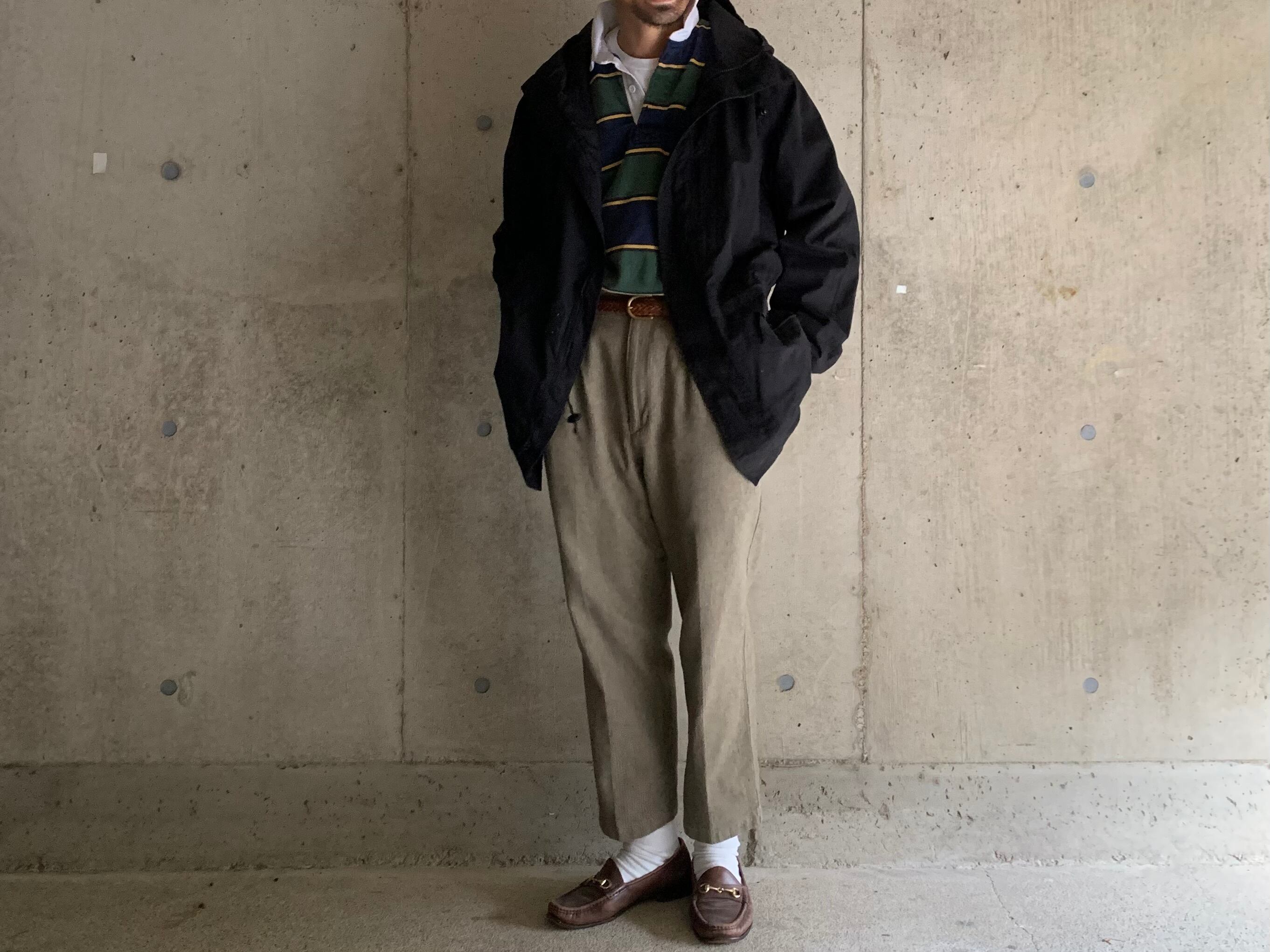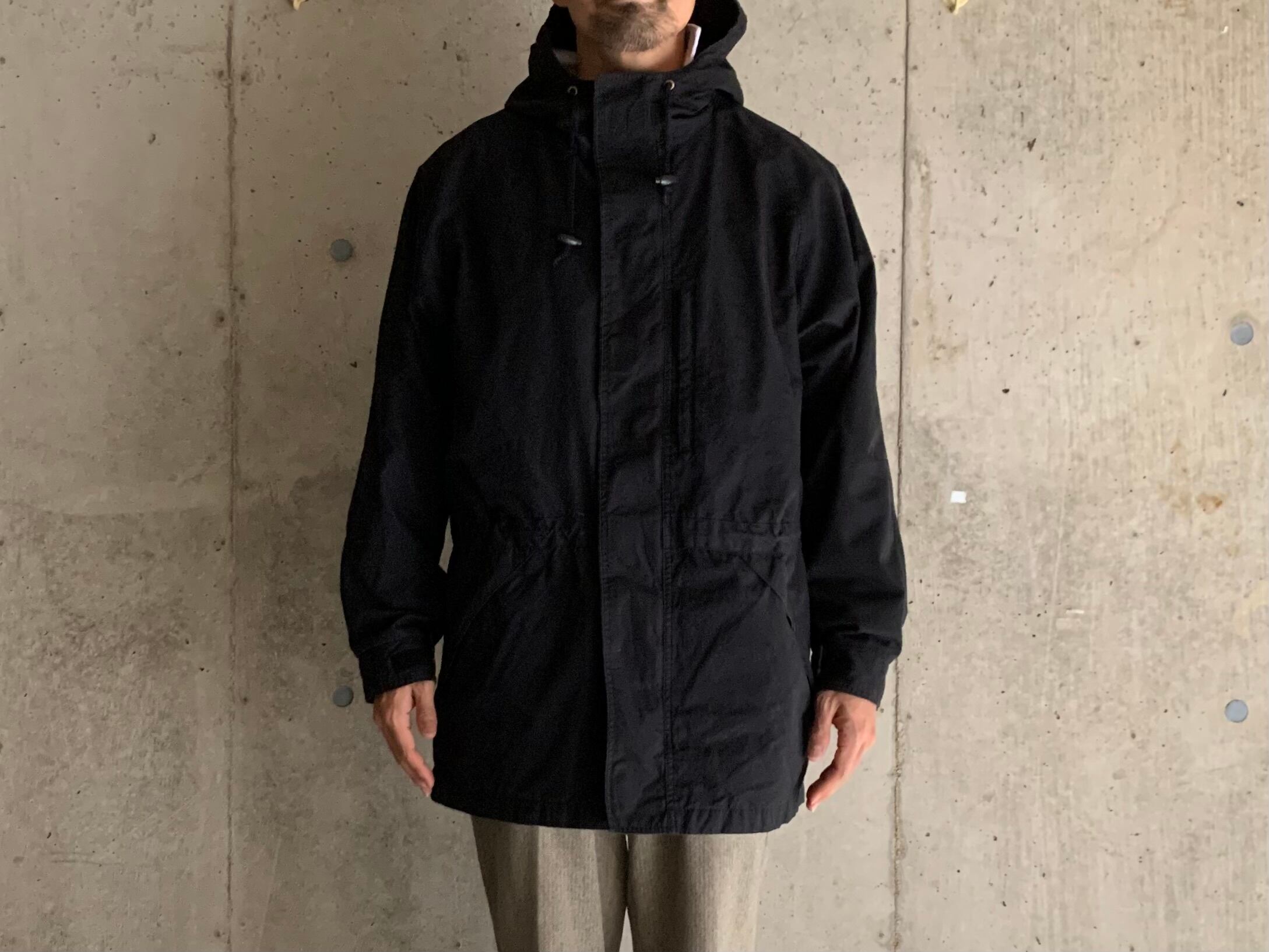 オールブラックで、どんなコーデにも合わせやすい一枚。素材はポリエステル65%、コットン35%。中にライナーなどを挟めばかなり暖かくできます。
