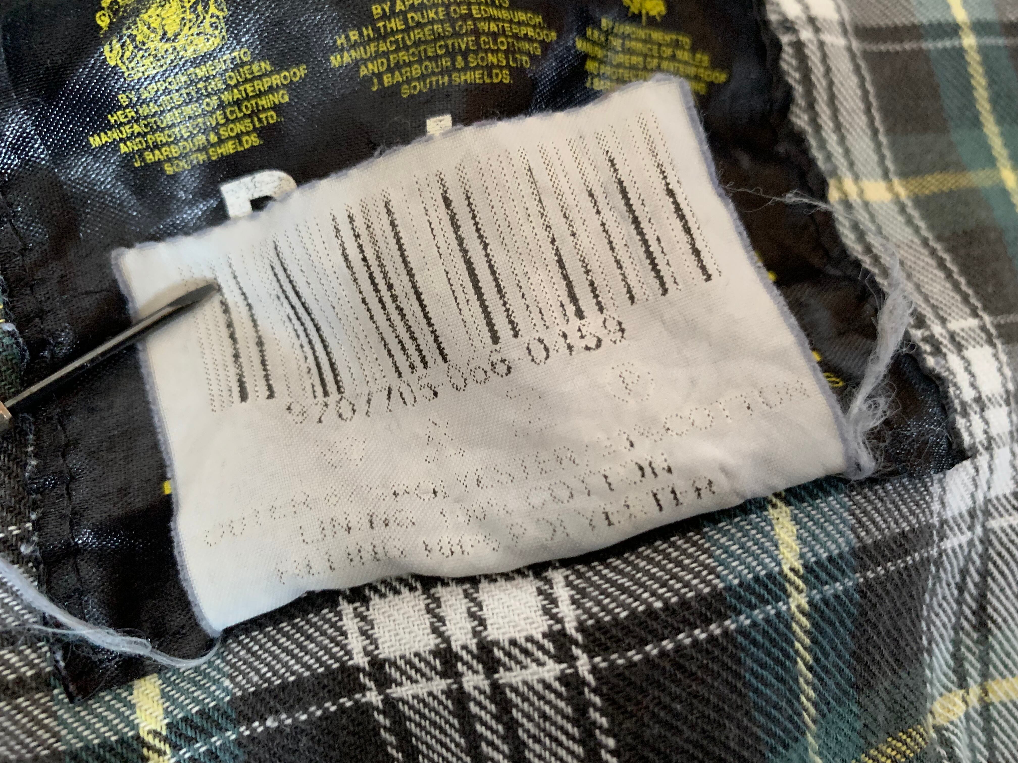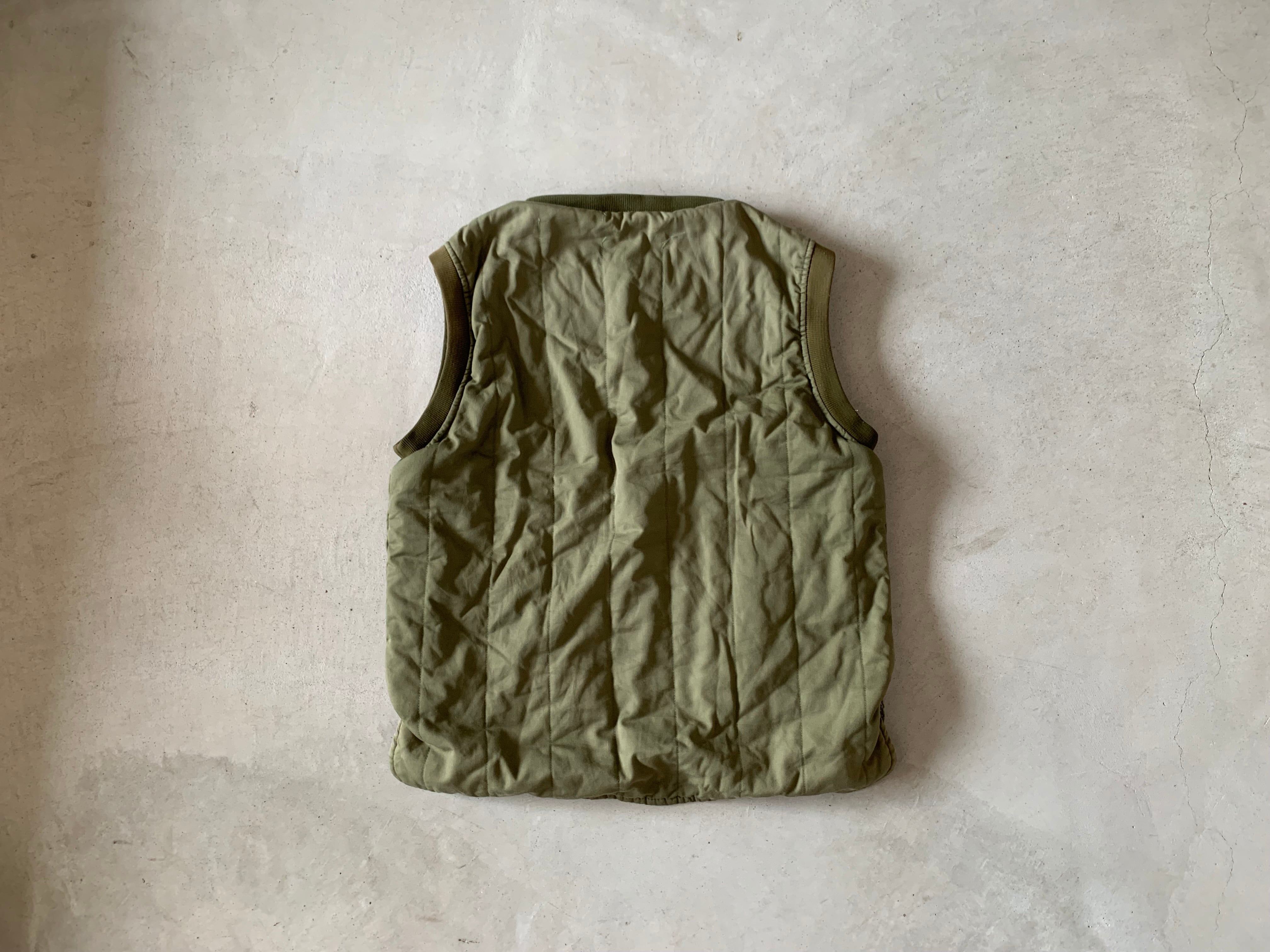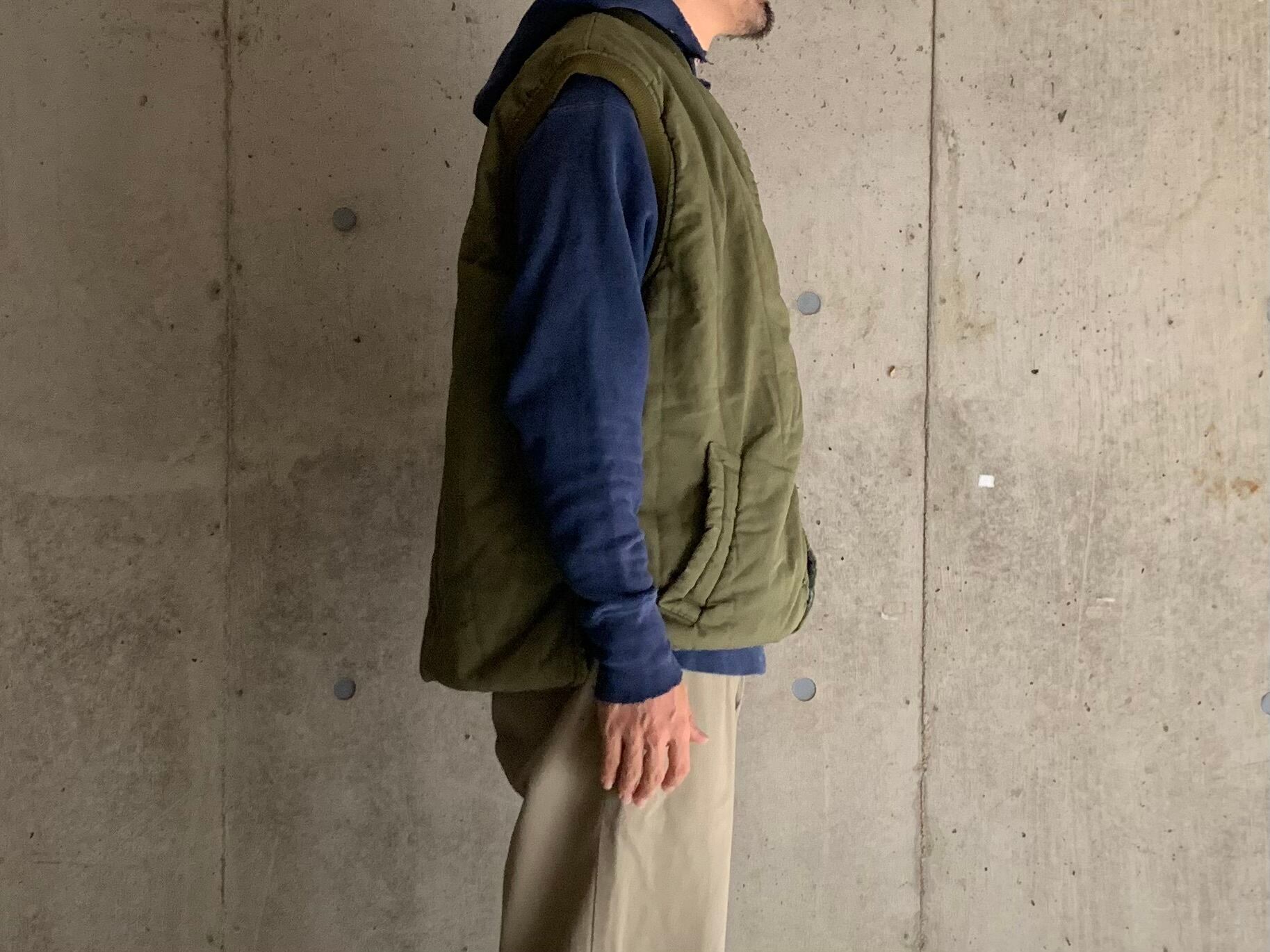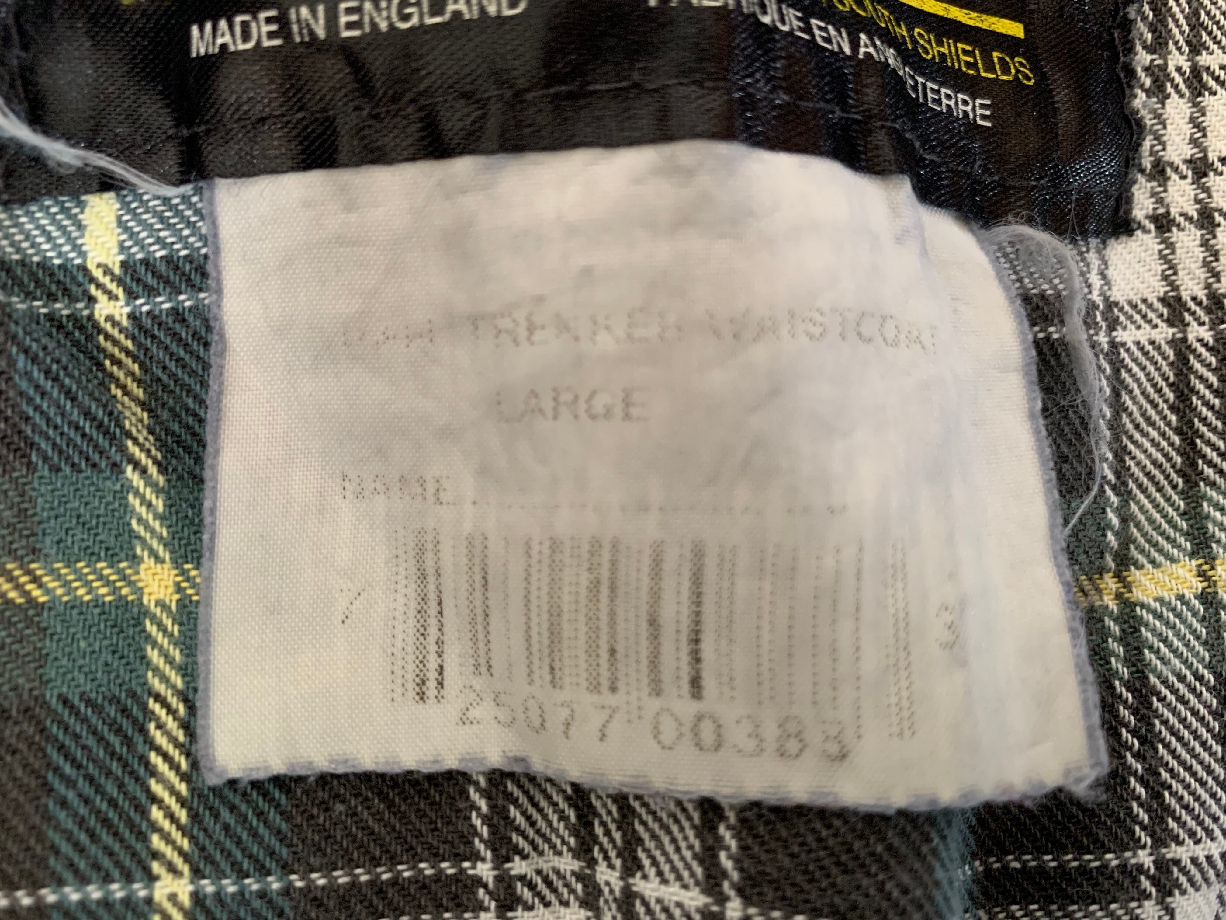 90年代、3ワラントのタグがつくバブアーの中綿ベスト。表面はオイルは塗られていないコットンです。