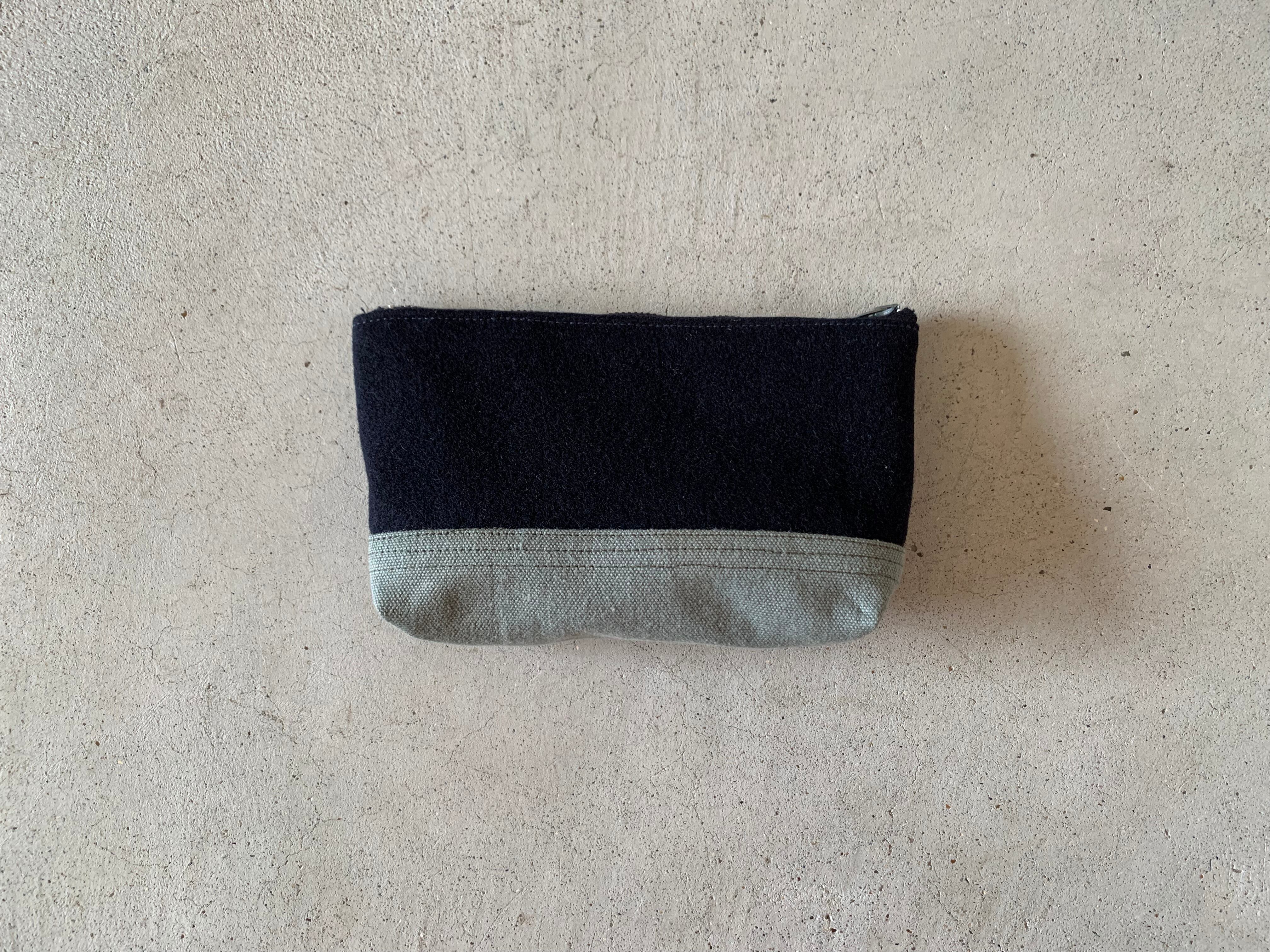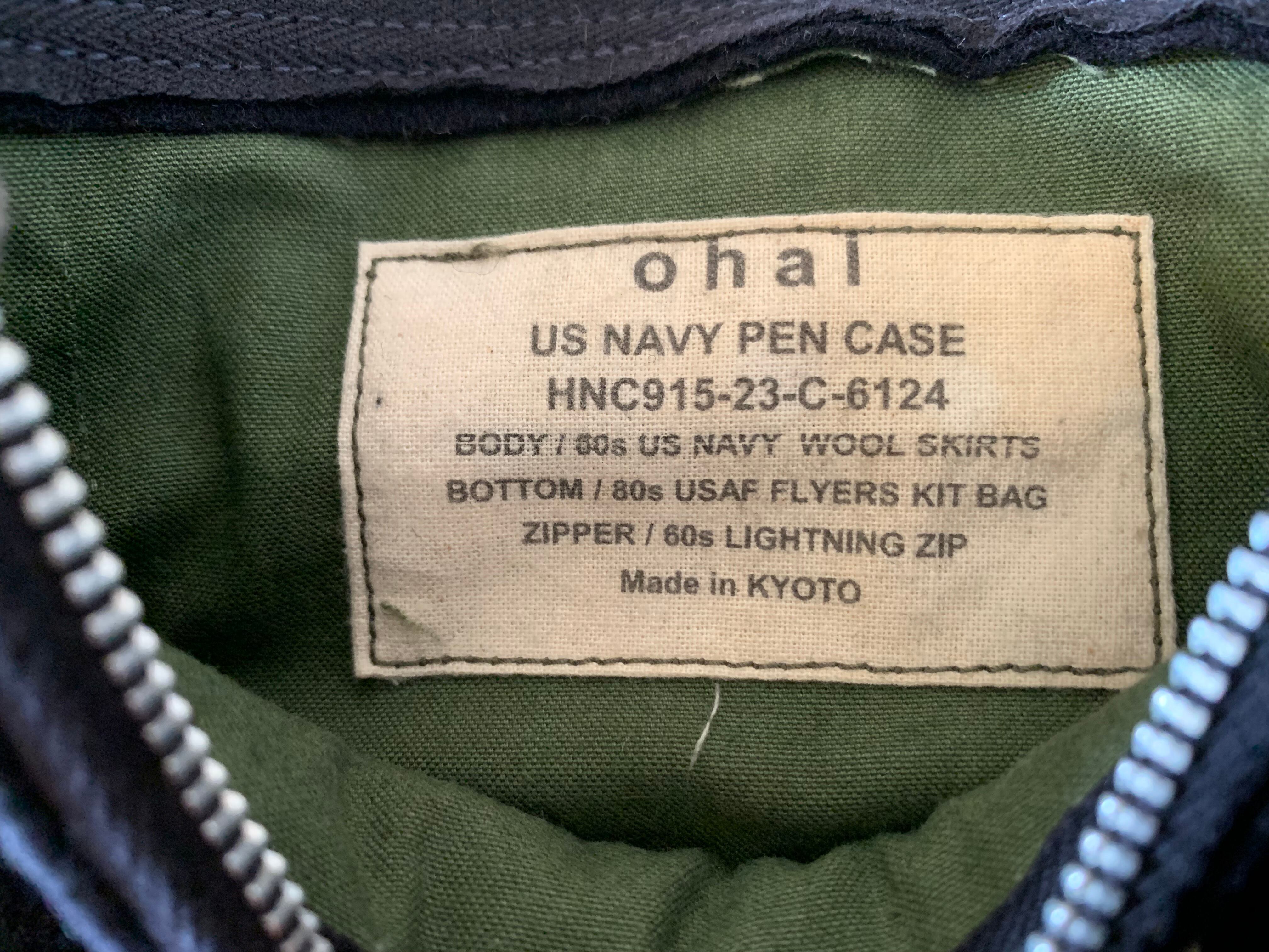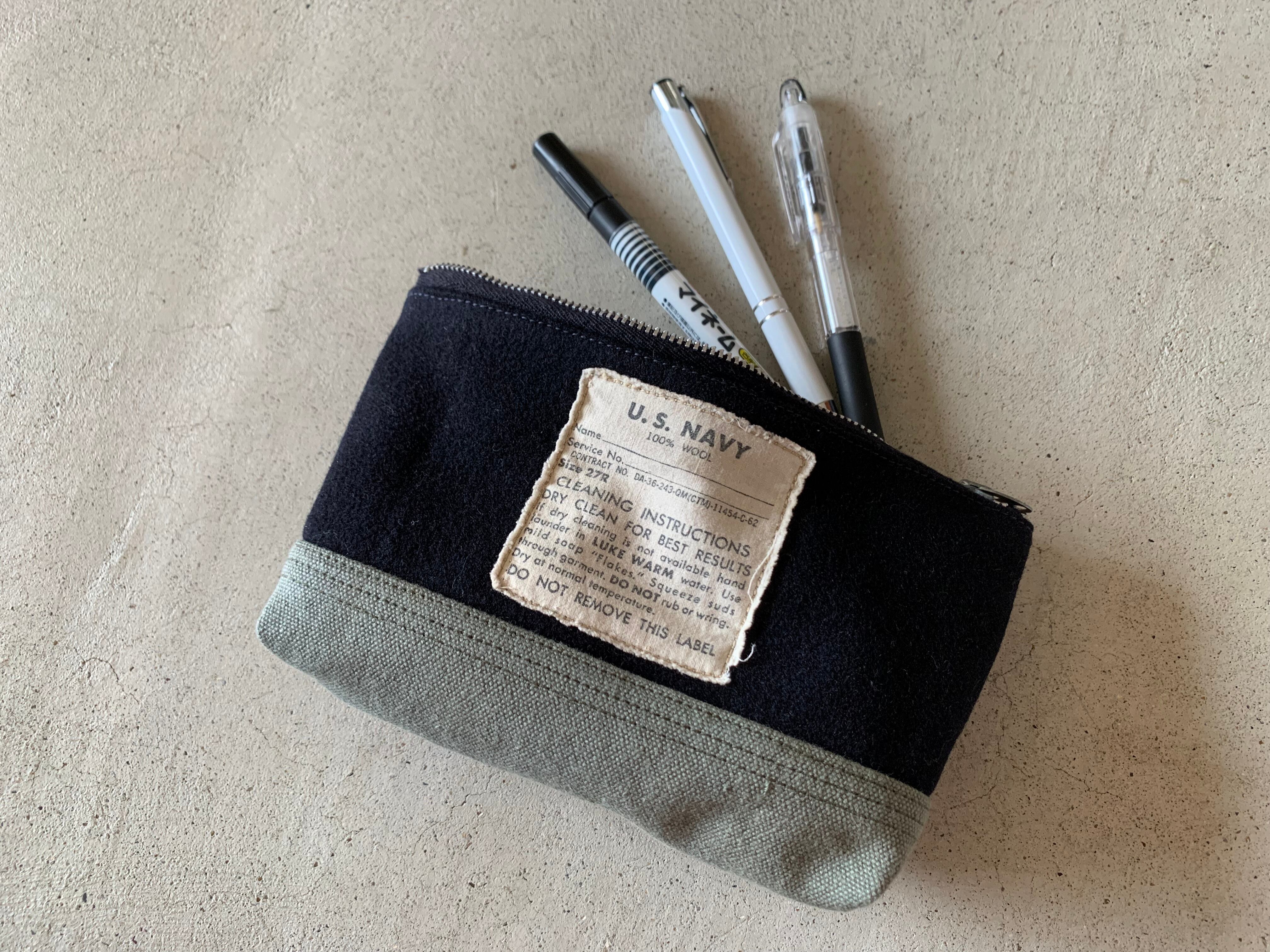 ボディーは60年代、アメリカ軍のウールスカートの生地です。前面にはボディーのスカートについていたミルスペックのスレーキを縫い付け、ヴィンテージらしい雰囲気を漂わせています。