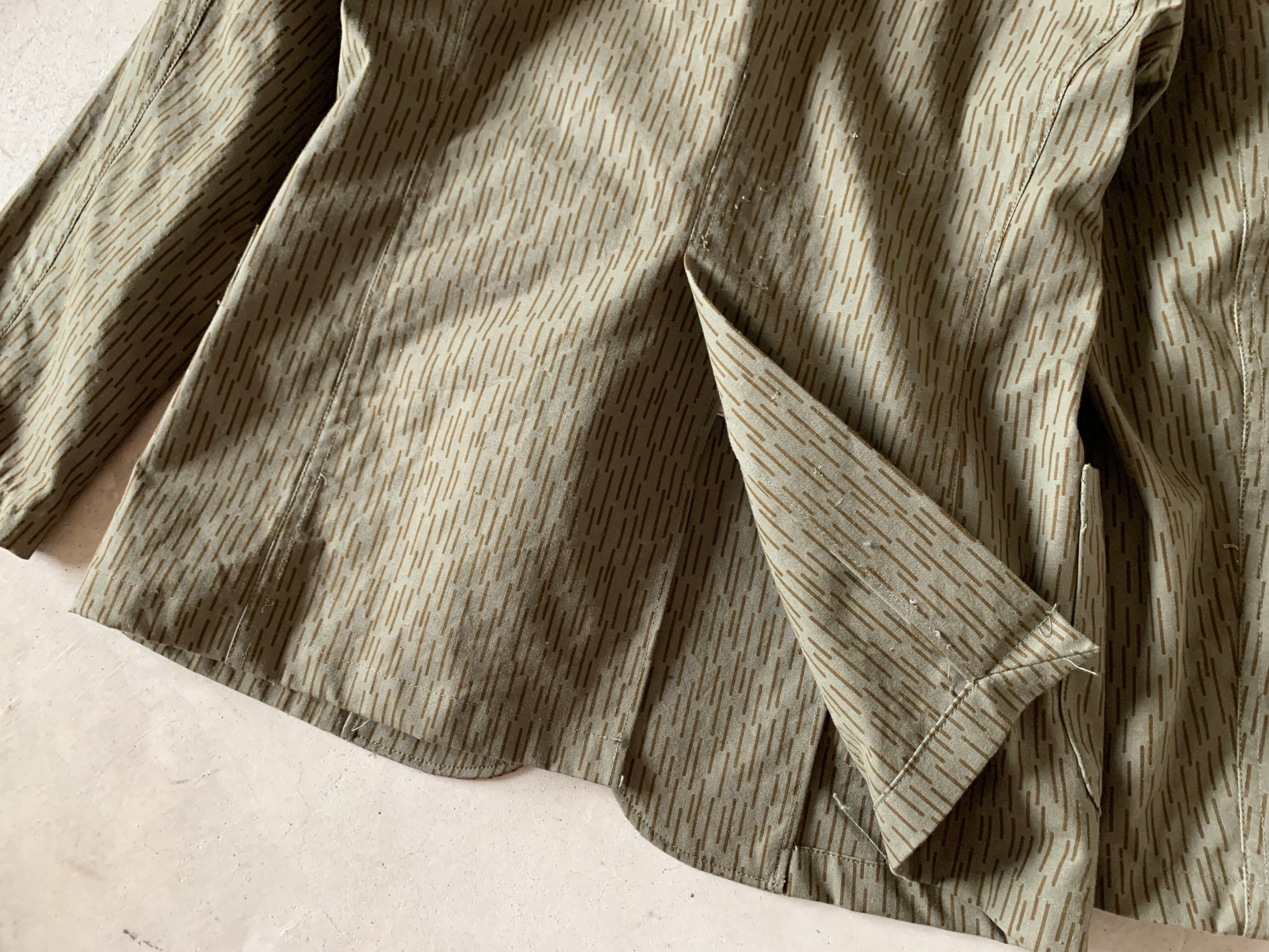 素材は80年代、東ドイツ軍のレインドロップカモと呼ばれる独特な迷彩柄のテント生地。丈夫なコットン素材でカモ柄だけど派手ではない、落ち着いた印象です。