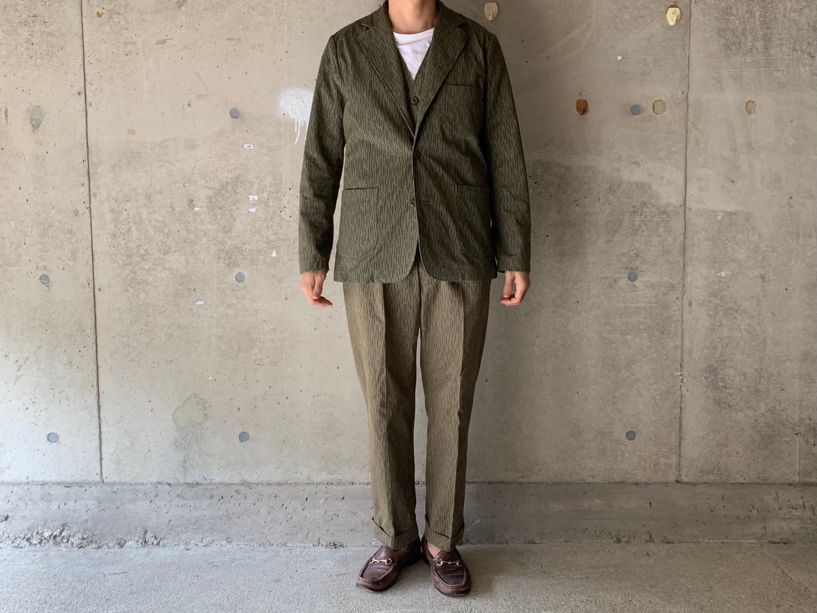 当店で販売している同じ生地で作ったパンツとベストの3ピースで着用してもグッドです。(全て違う個体で作成しているため、微妙に色が違います。完璧な3ピースをお求めの方は推奨いたしません。)