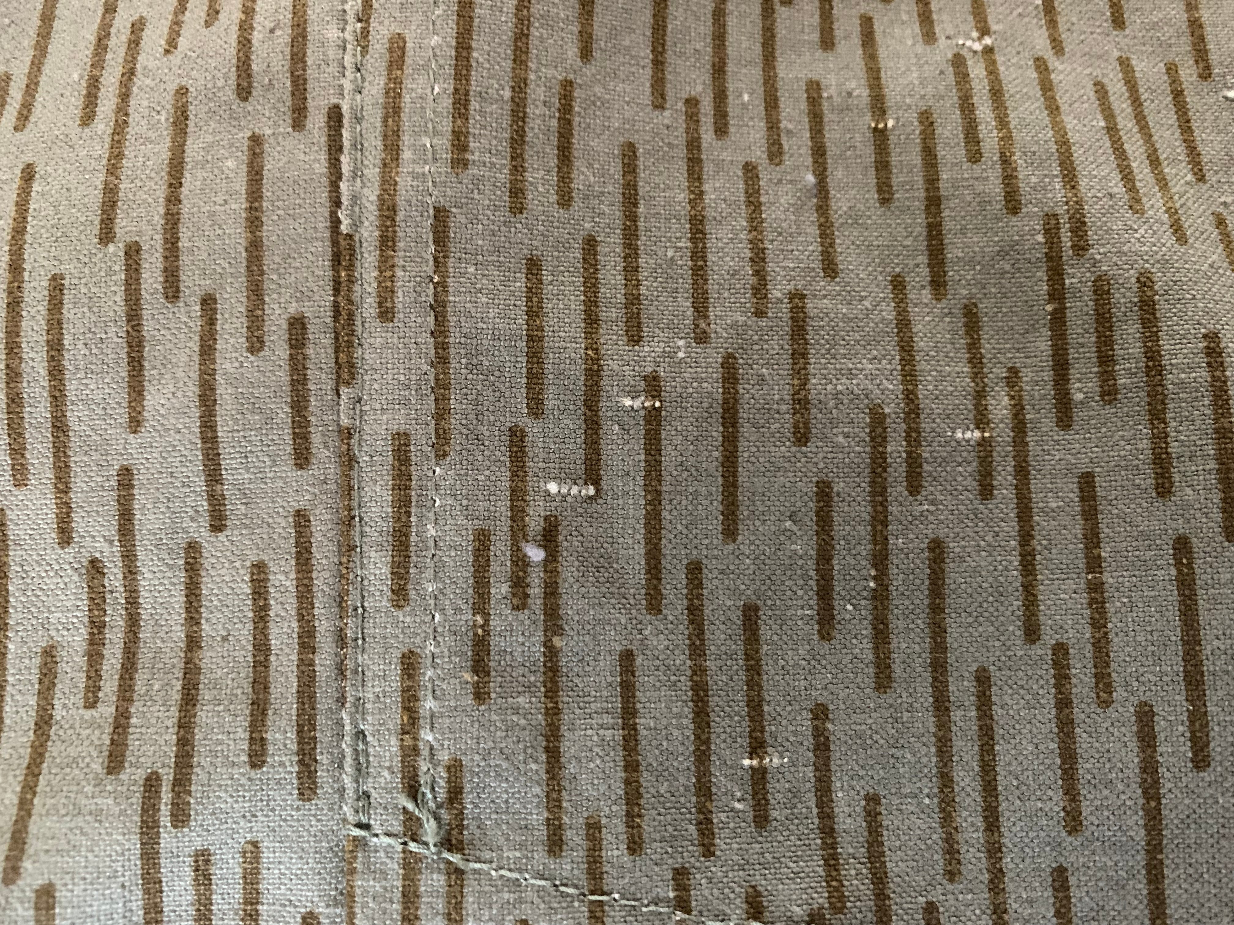 全てヴィンテージ生地を使用しますので、シミや汚れ、傷や擦れなどによるダメージ、色褪せ、補修跡、縫い跡などがございます。それぞれ画像でご確認ください。