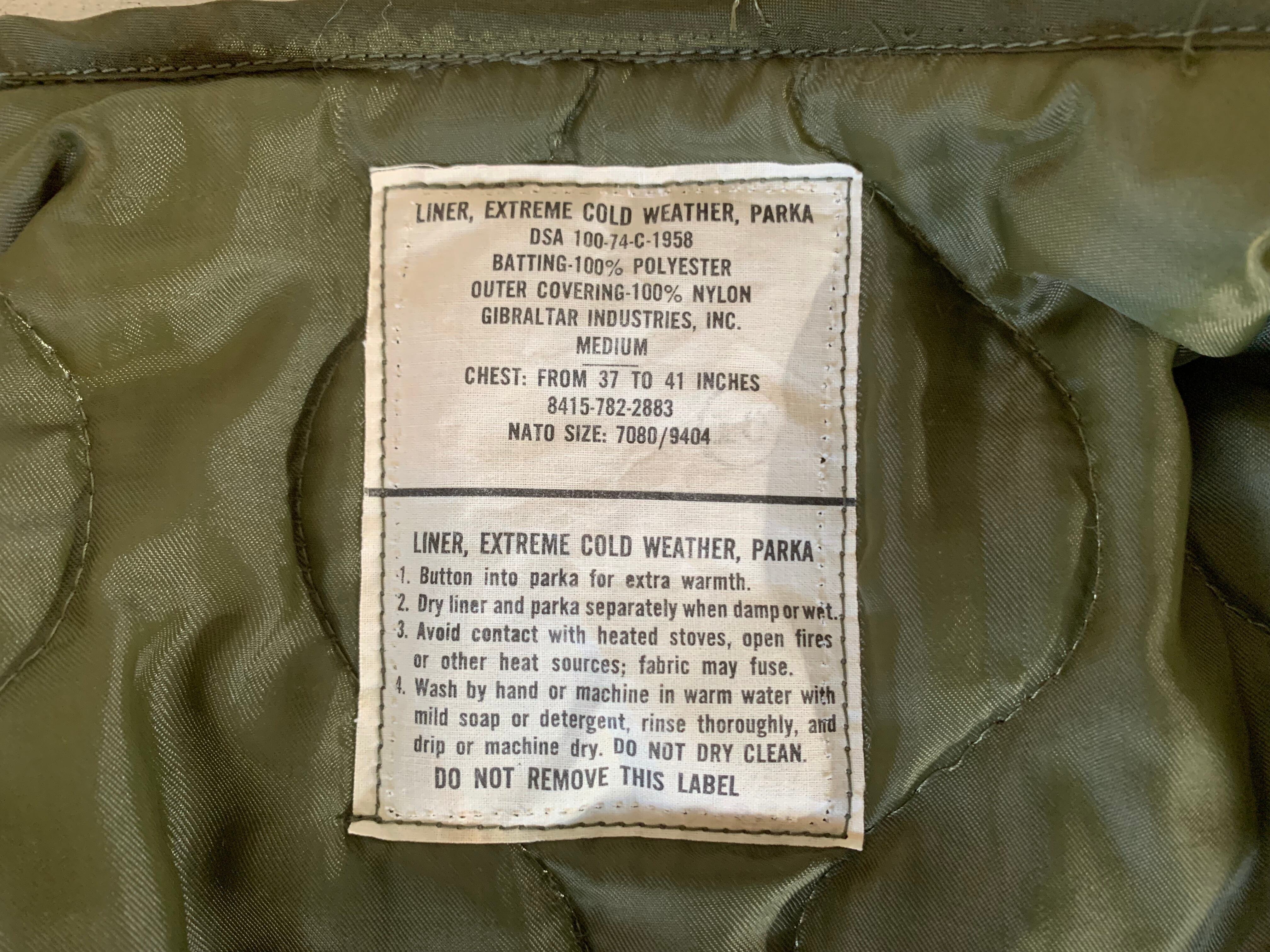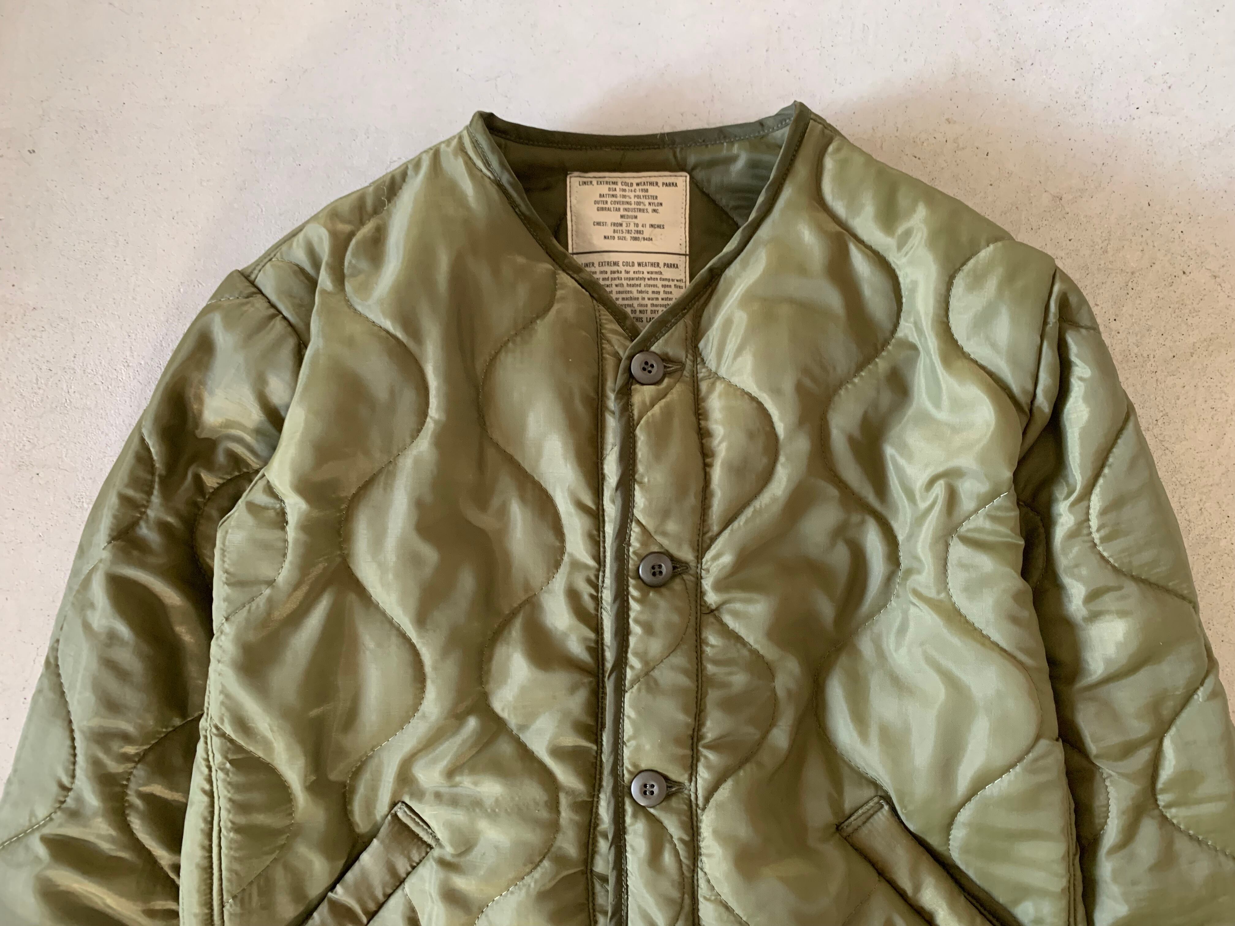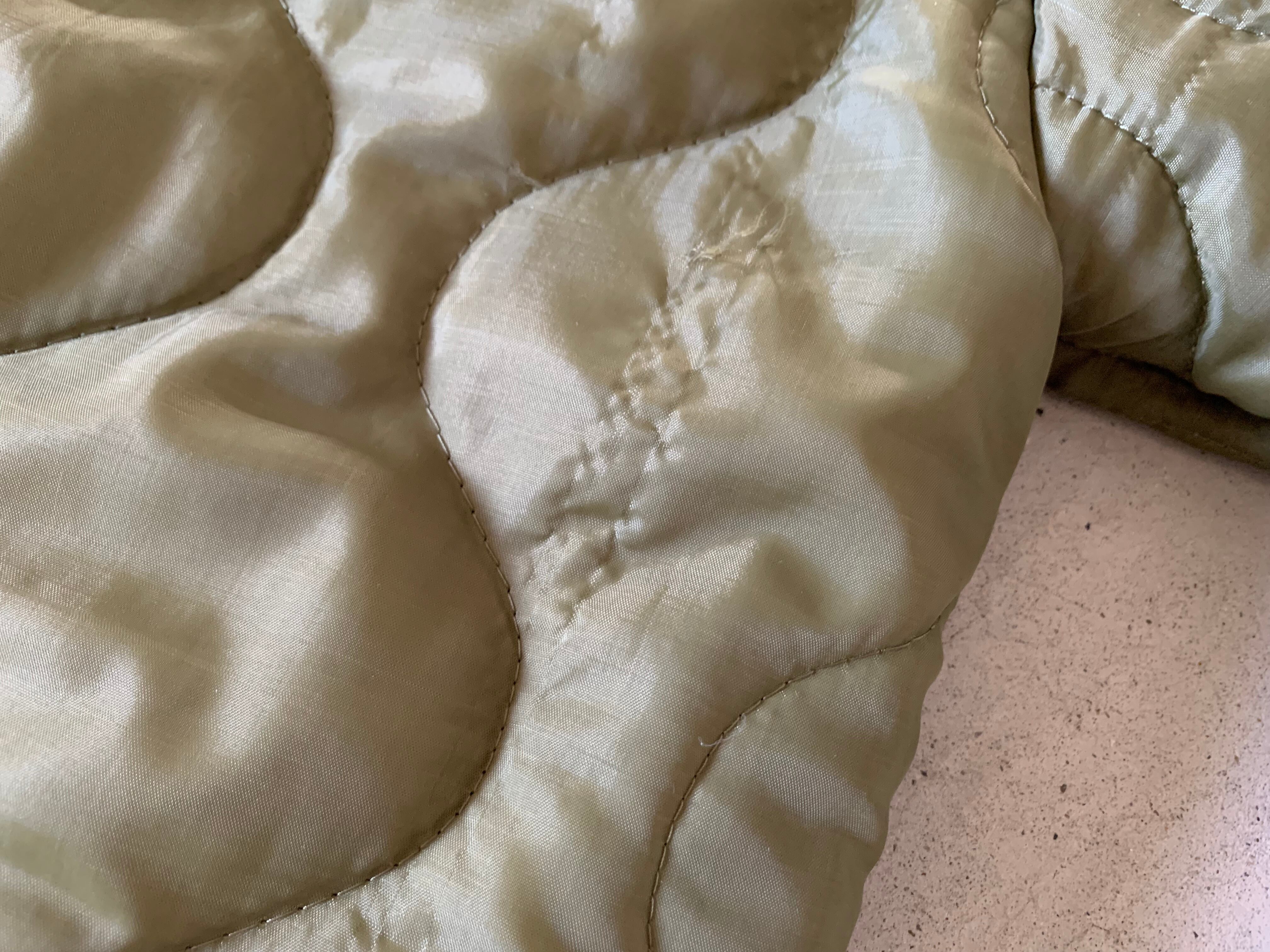 ボディーは米軍の、70年代頃に納入された、M-65 Field Parkaの中に取り付ける、キルティングライナー。