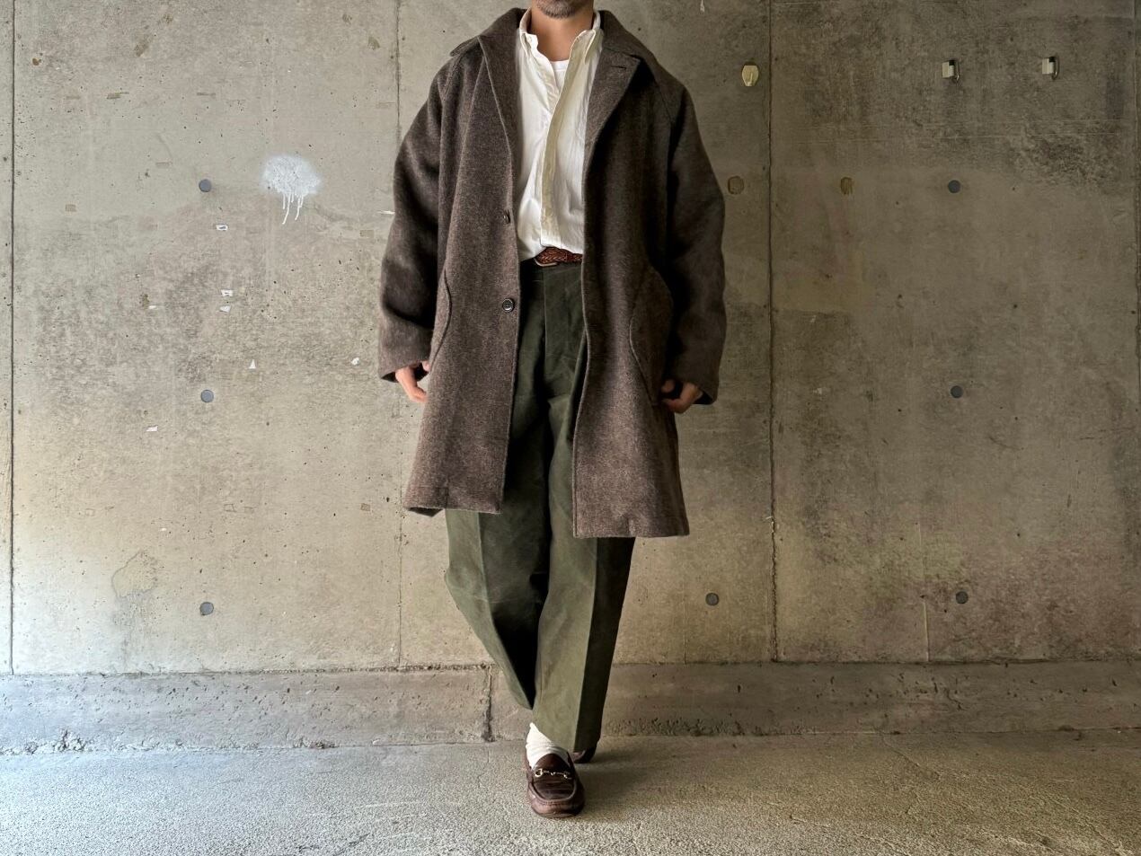 ヴィンテージのブランケットでオーバーサイズのバルマカーンコートを作りました。