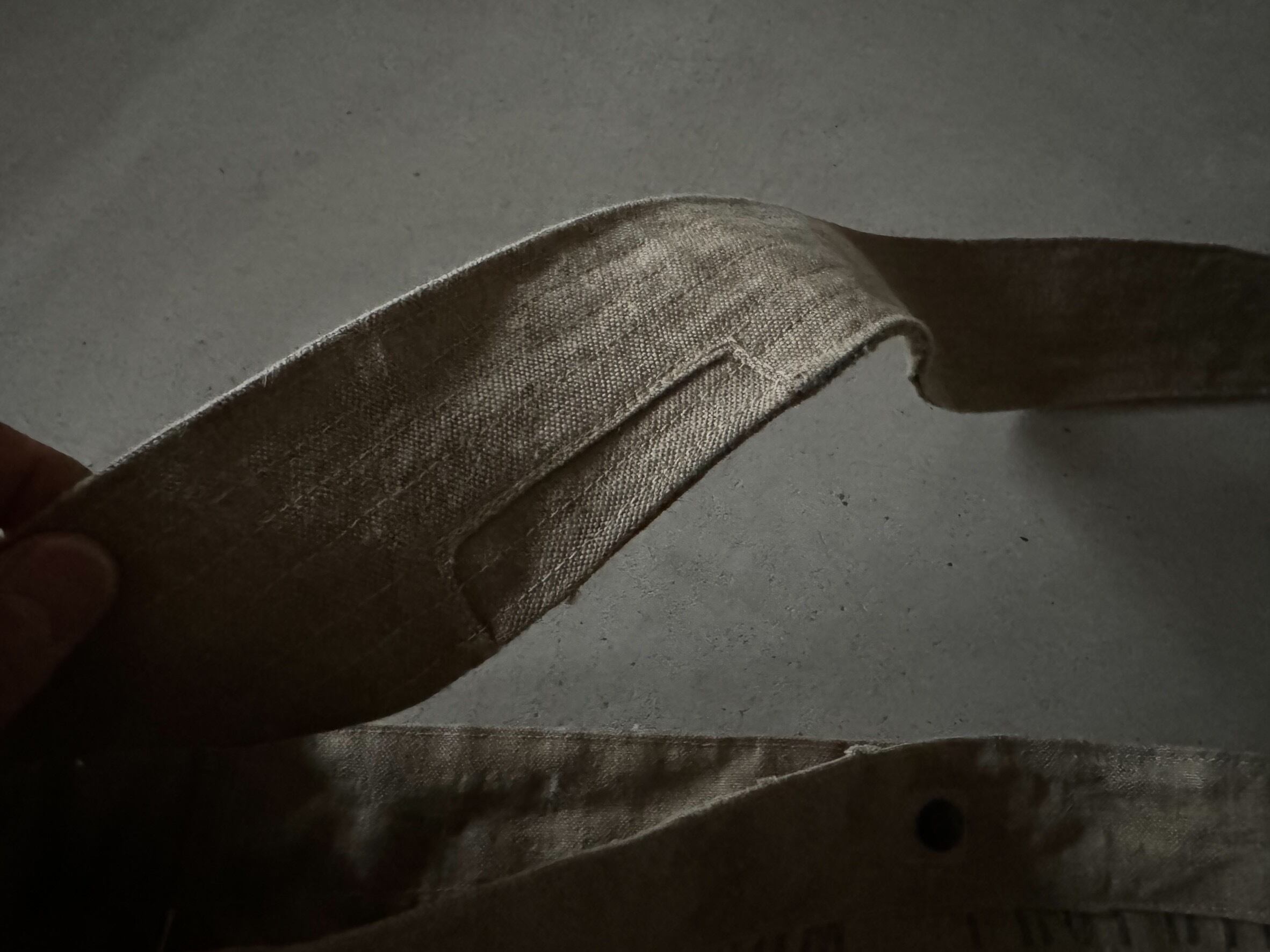 ショルダーベルトはボディーと同じ素材で作っています。昔のニュースペーパーと同じように、太めのショルダーベルトにしてますので、重たい物を入れても肩への負荷が軽減されます。