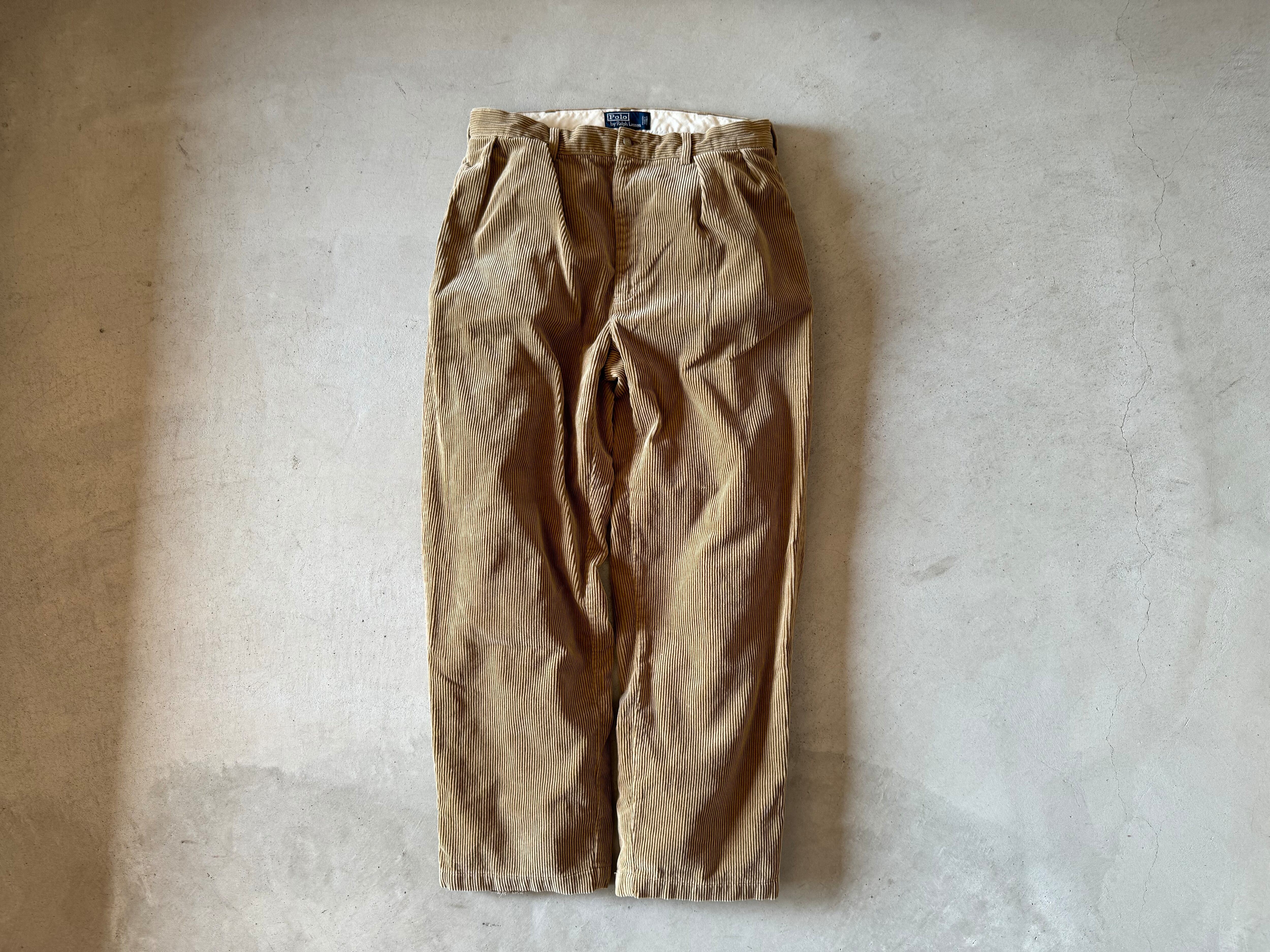 ラルフローレンの人気パンツシリーズ『ANDREW PANT』。2タックでモモ周りがゆったりとしたシルエットは今の気分にちょうどいい一本です。キャメルを少し薄くしたような色の太畝コーデュロイ素材。
