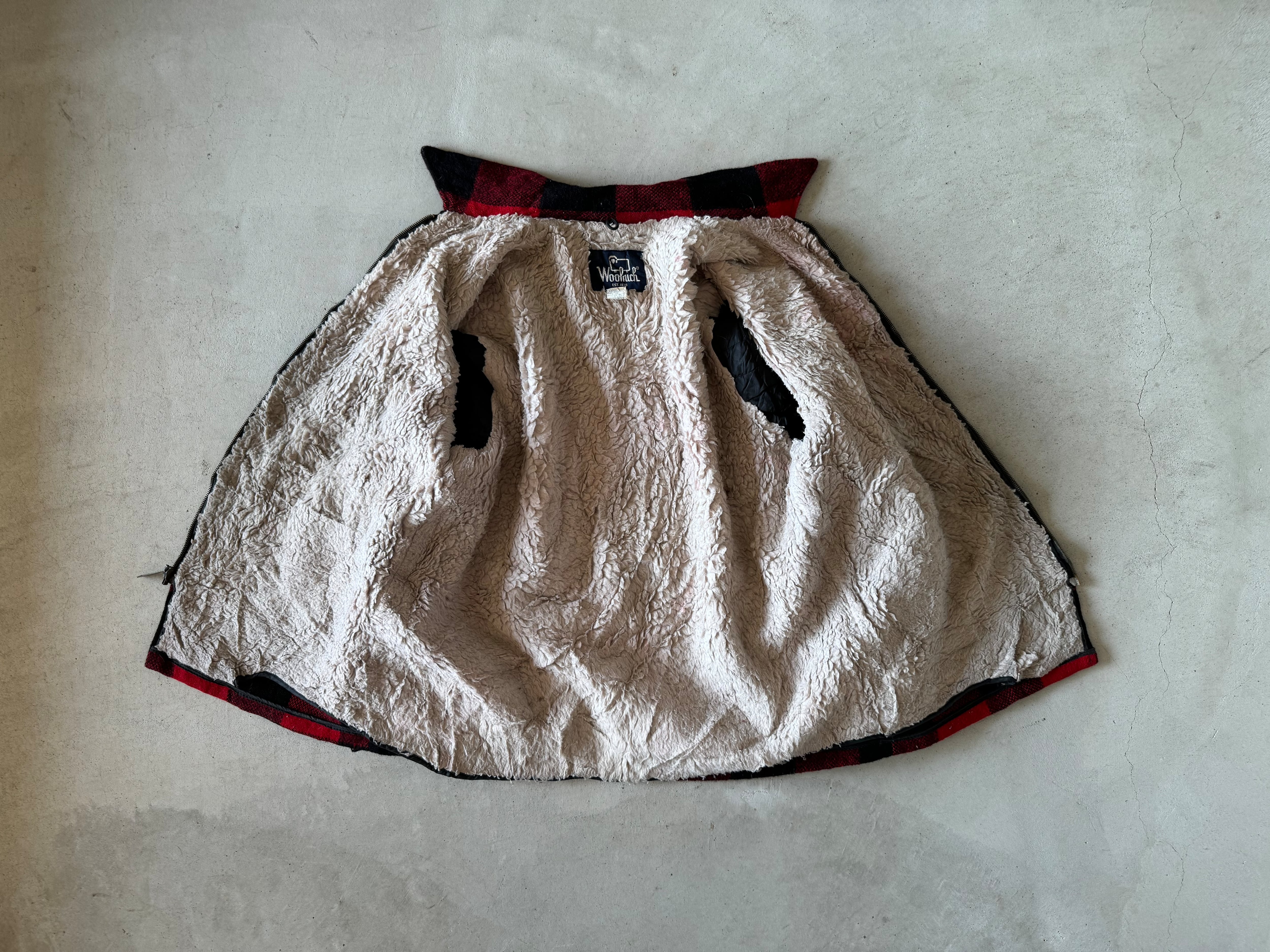 中のボアに赤い色が色移りしています。11枚目の画像でご確認ください。