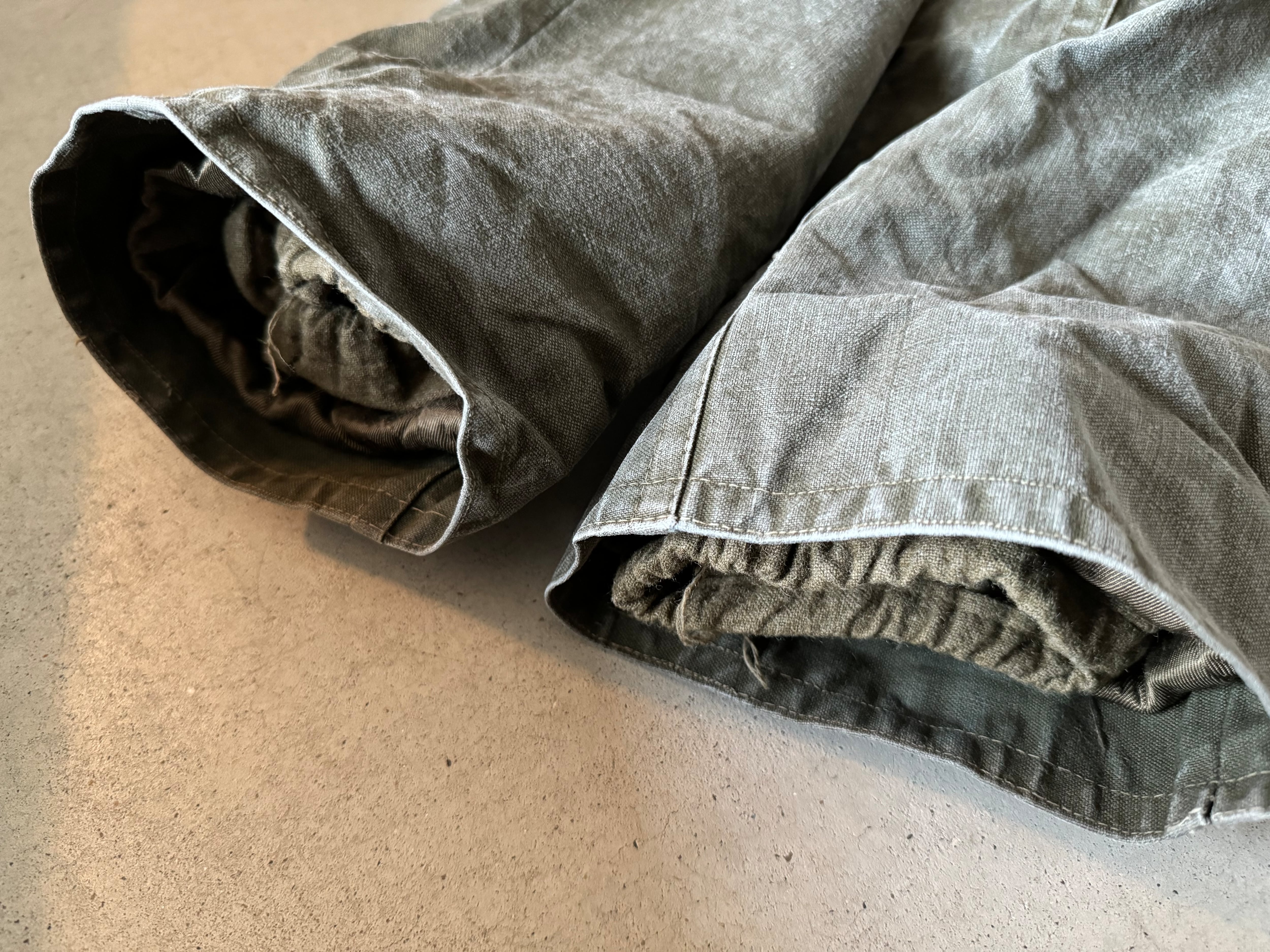 ガッシリとした丈夫なキャンバスに、裏はウールのライナーが貼られている重厚なコートです。