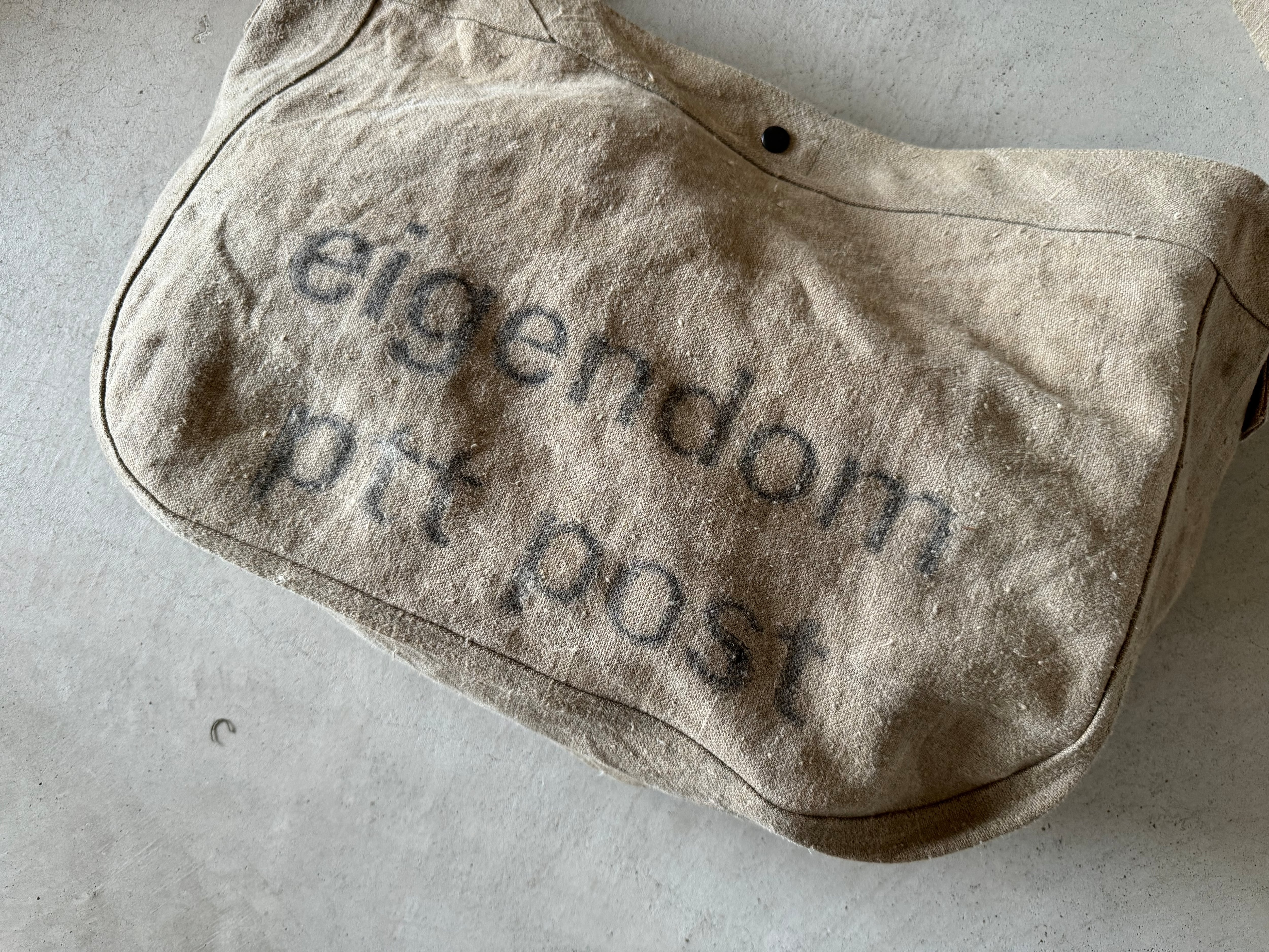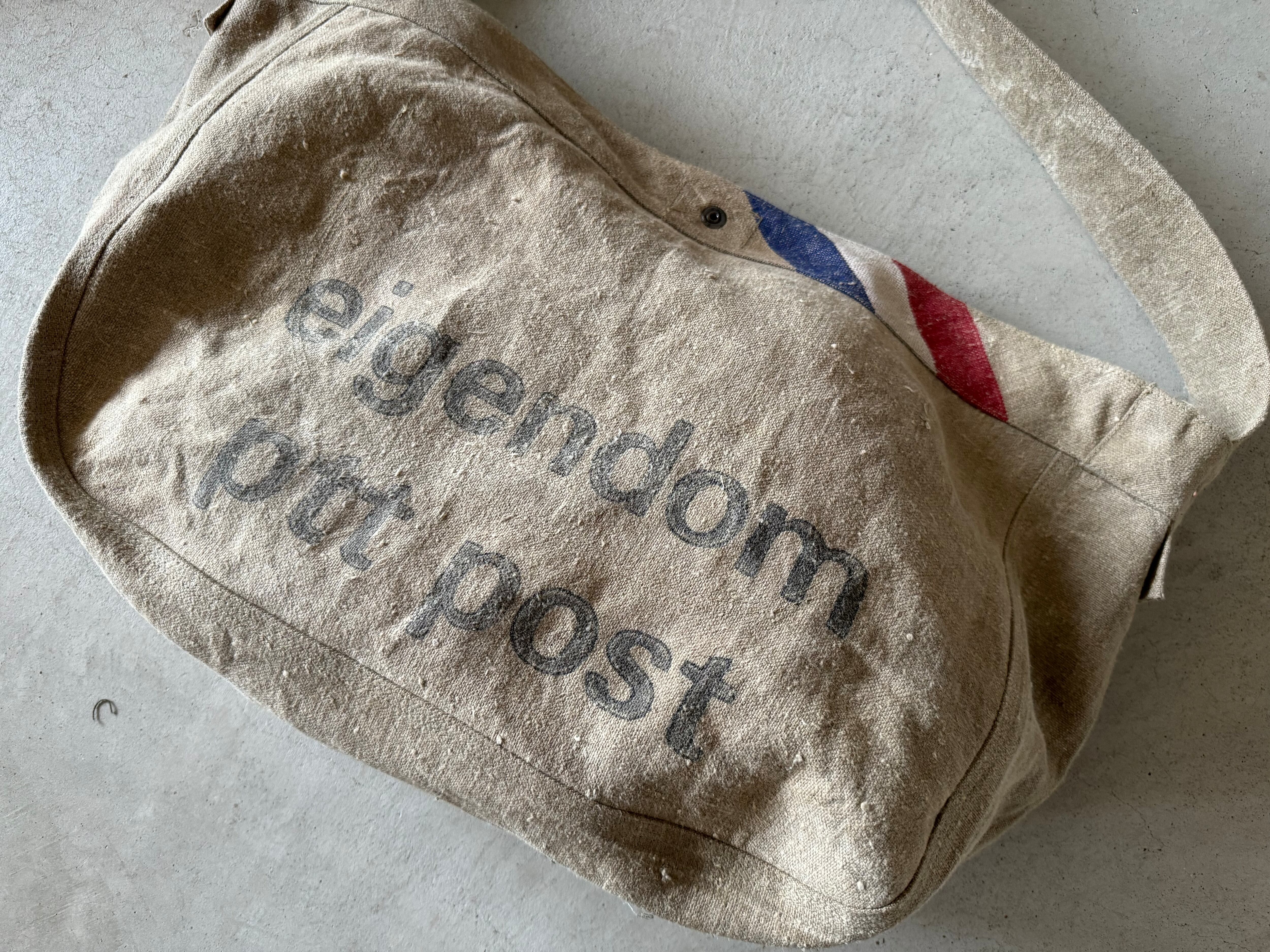ボディーの生地は90年代、オランダ郵便局のメールバッグ。素材は丈夫なジュート(麻)で、独特なクタっとした感じがヴィンテージの雰囲気を醸し出します。
