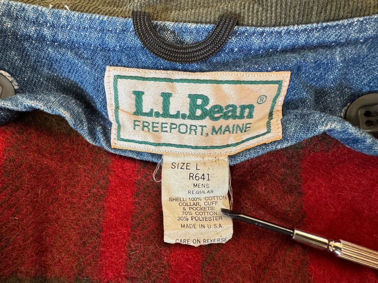 80年代アメリカ製、L.L.Beanのデニムハンティングジャケット。チェックのライナー付きです。