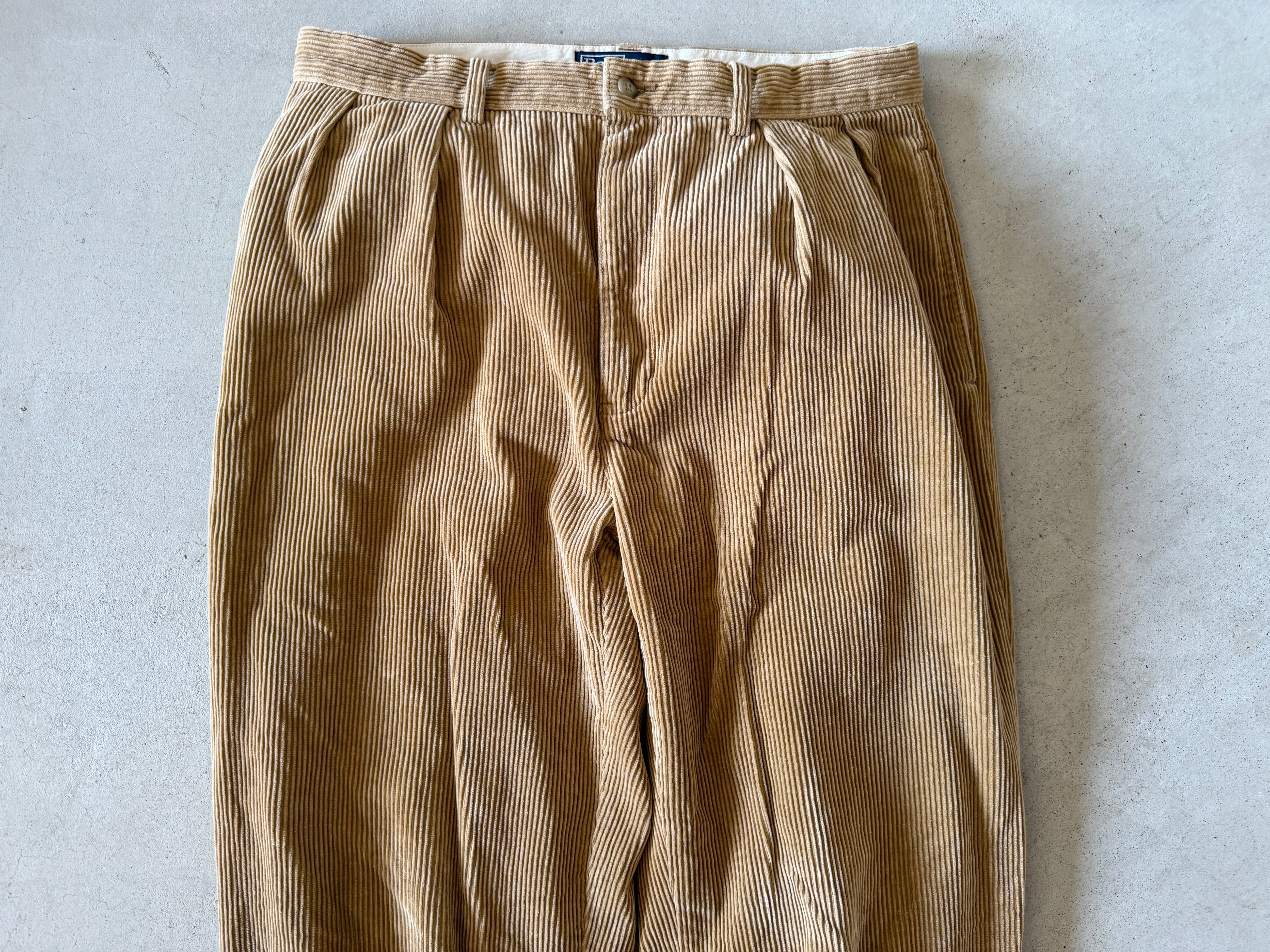 ラルフローレンの人気パンツシリーズ『ANDREW PANT』。2タックでモモ周りがゆったりとしたシルエットは今の気分にちょうどいい一本です。キャメルを少し薄くしたような色の太畝コーデュロイ素材。