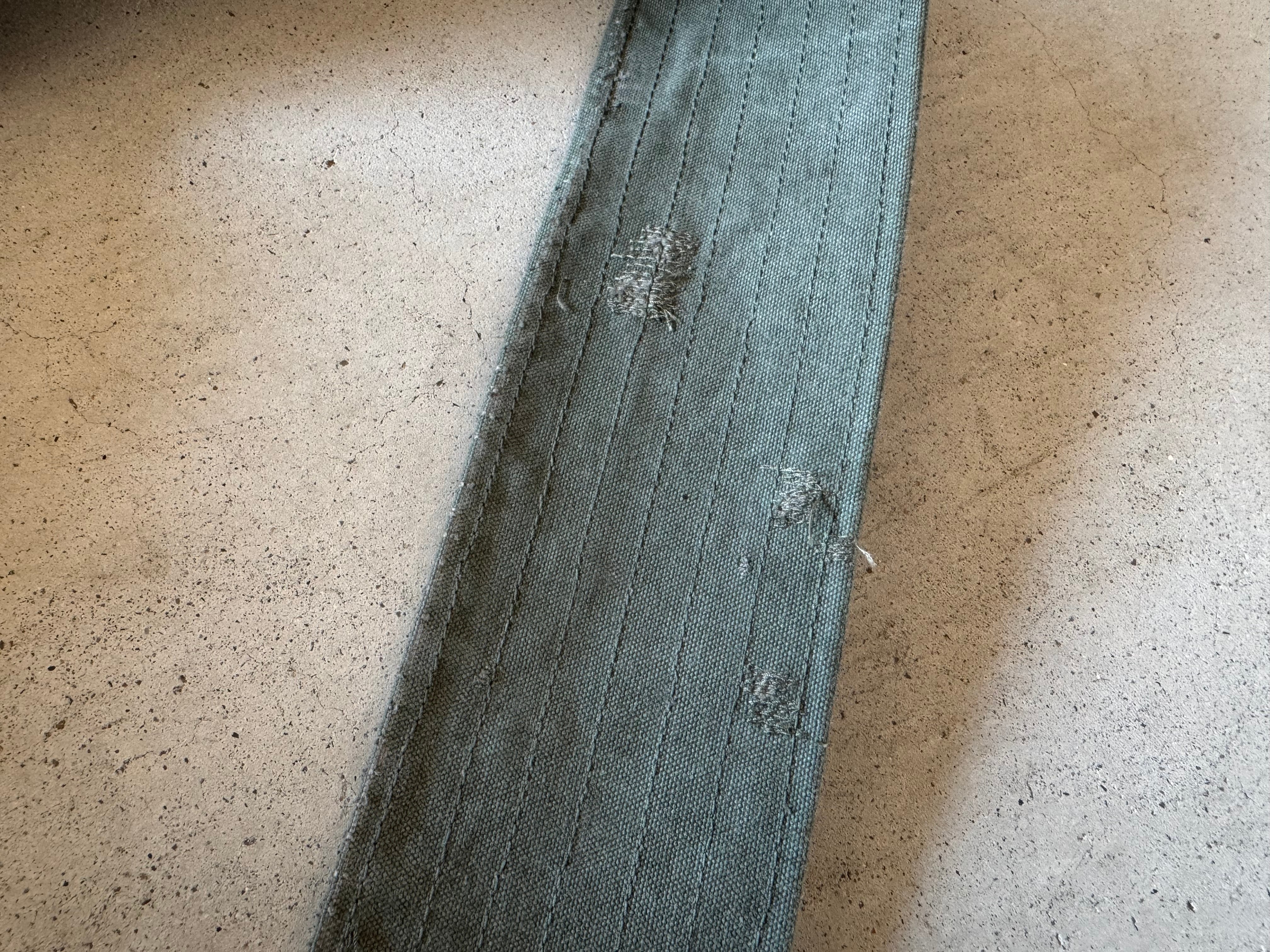 ショルダーベルトの取り付け部分につけている補強用のキャンバステープはボディーと同じ個体から外したキャンバステープを使用しています。