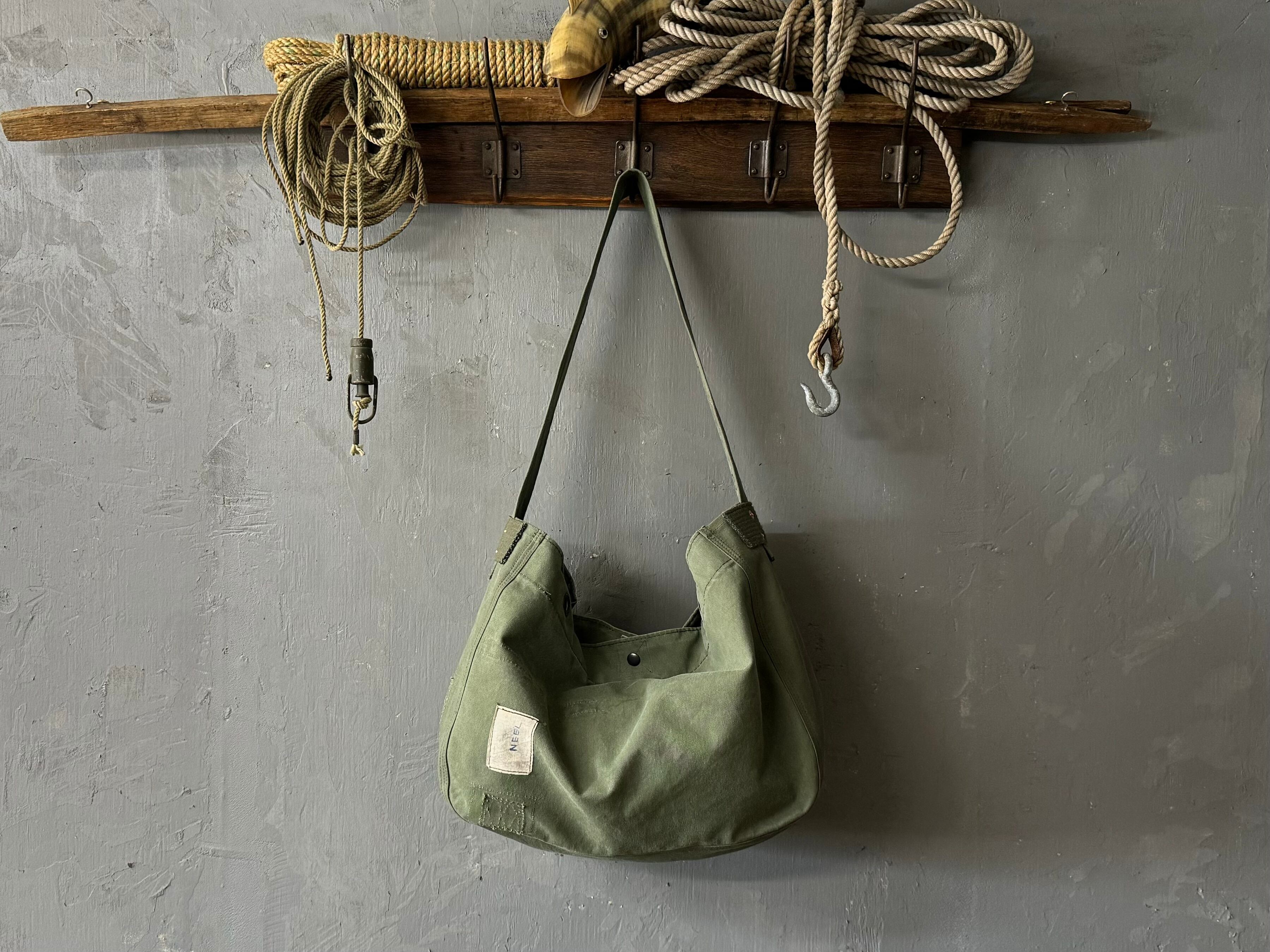ボディーの生地は80年代、フランス軍のダッフルバッグ。素材はコットンキャンバス素材で、ヴィンテージの雰囲気満載です。前面にタグがあり『NEEL』と雑に手書きで書かれています。