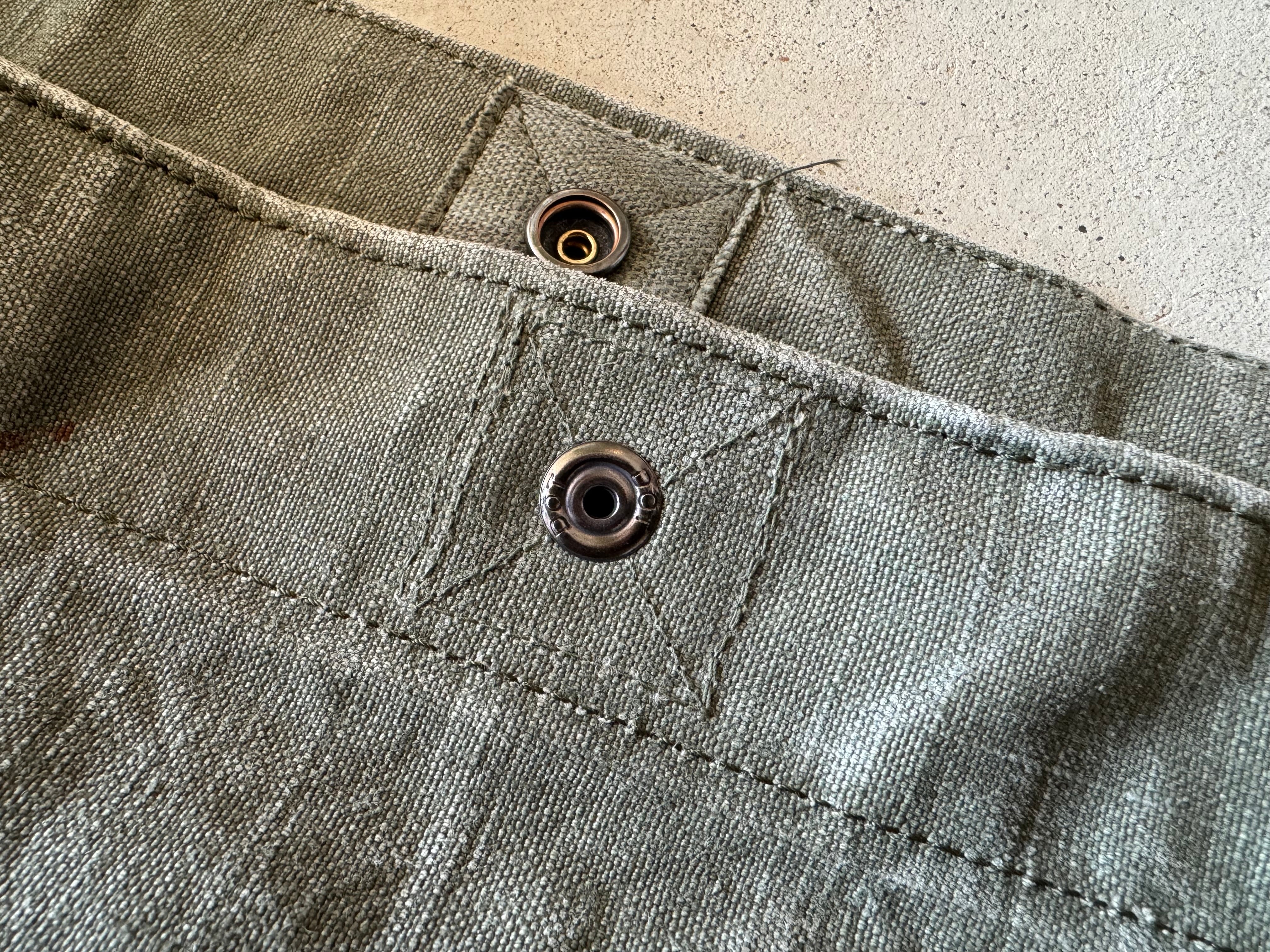 開口部についているスナップボタンは、70年代、スコービル社が米軍に納入したデッドストックのドットボタンを使用してます。『DOT』の刻印も玄人にはグッとくるところかと。。。