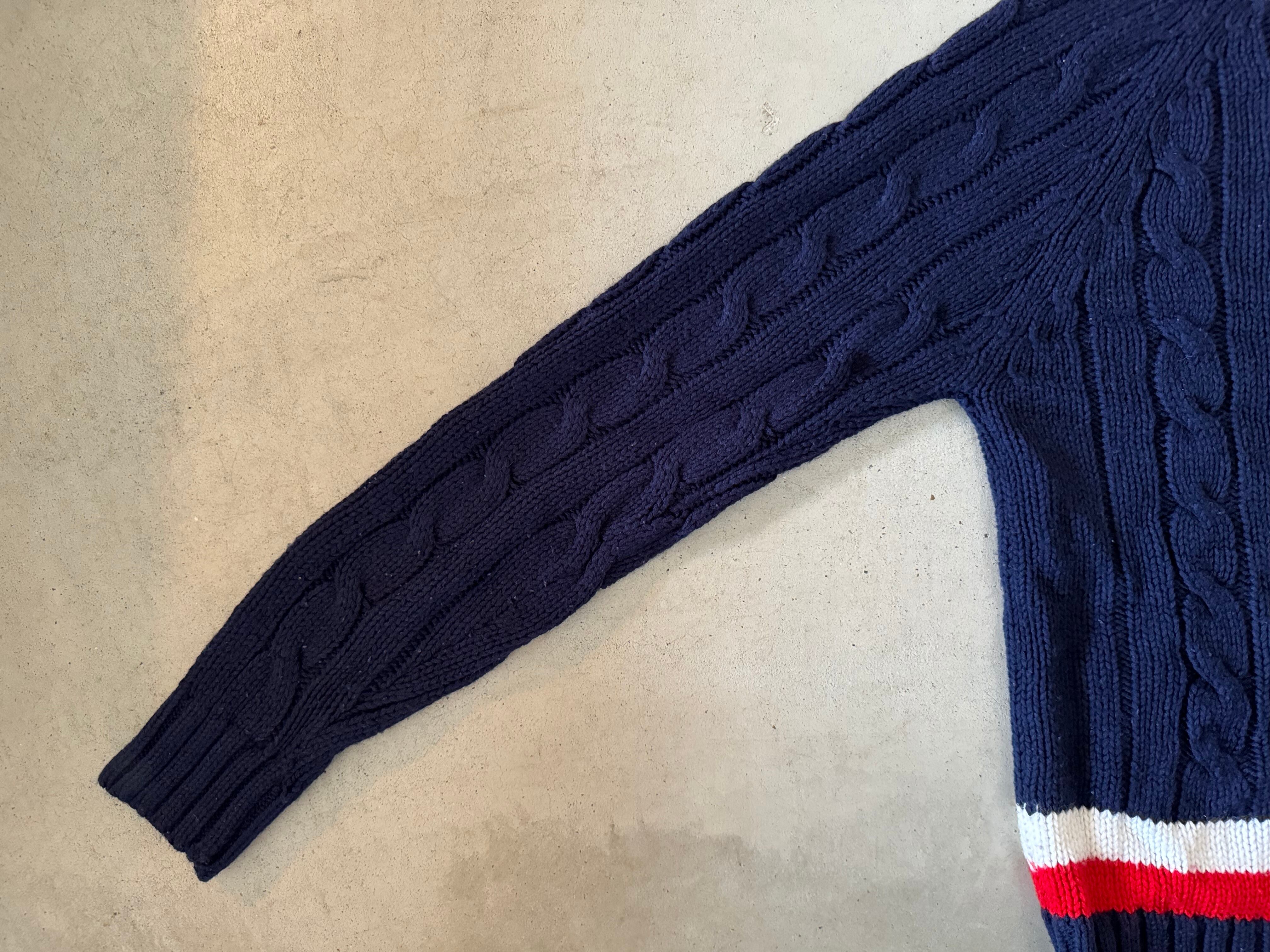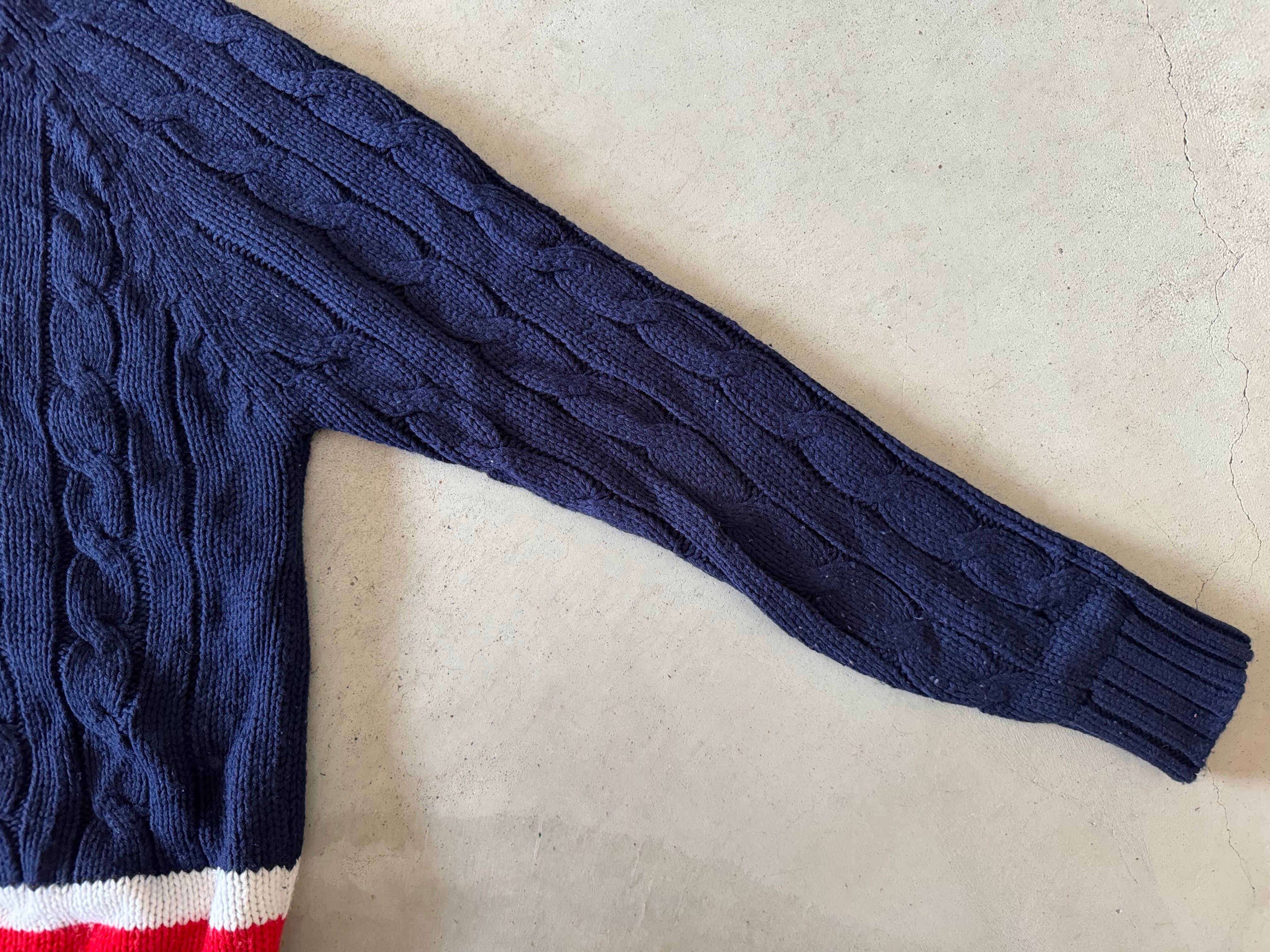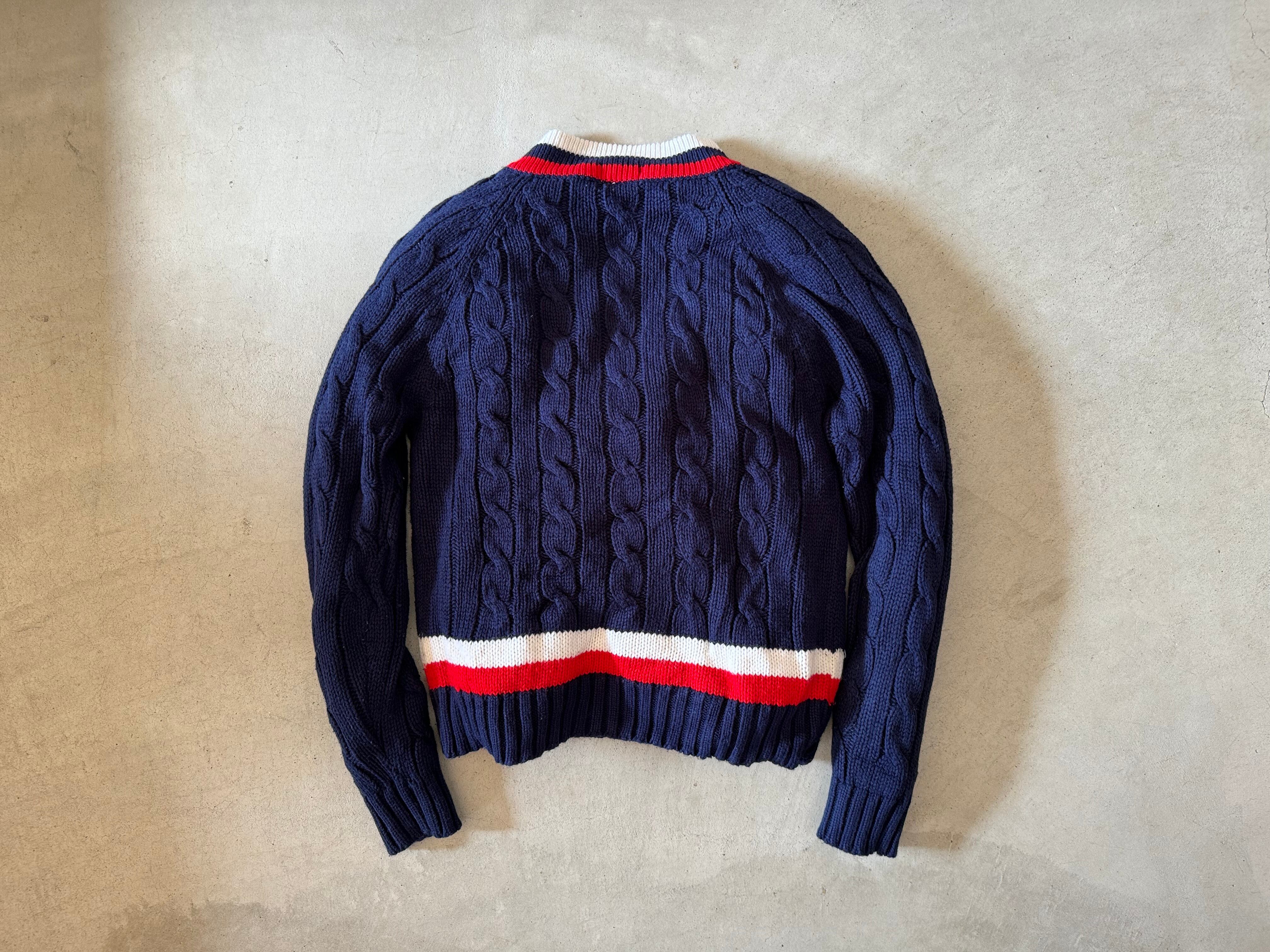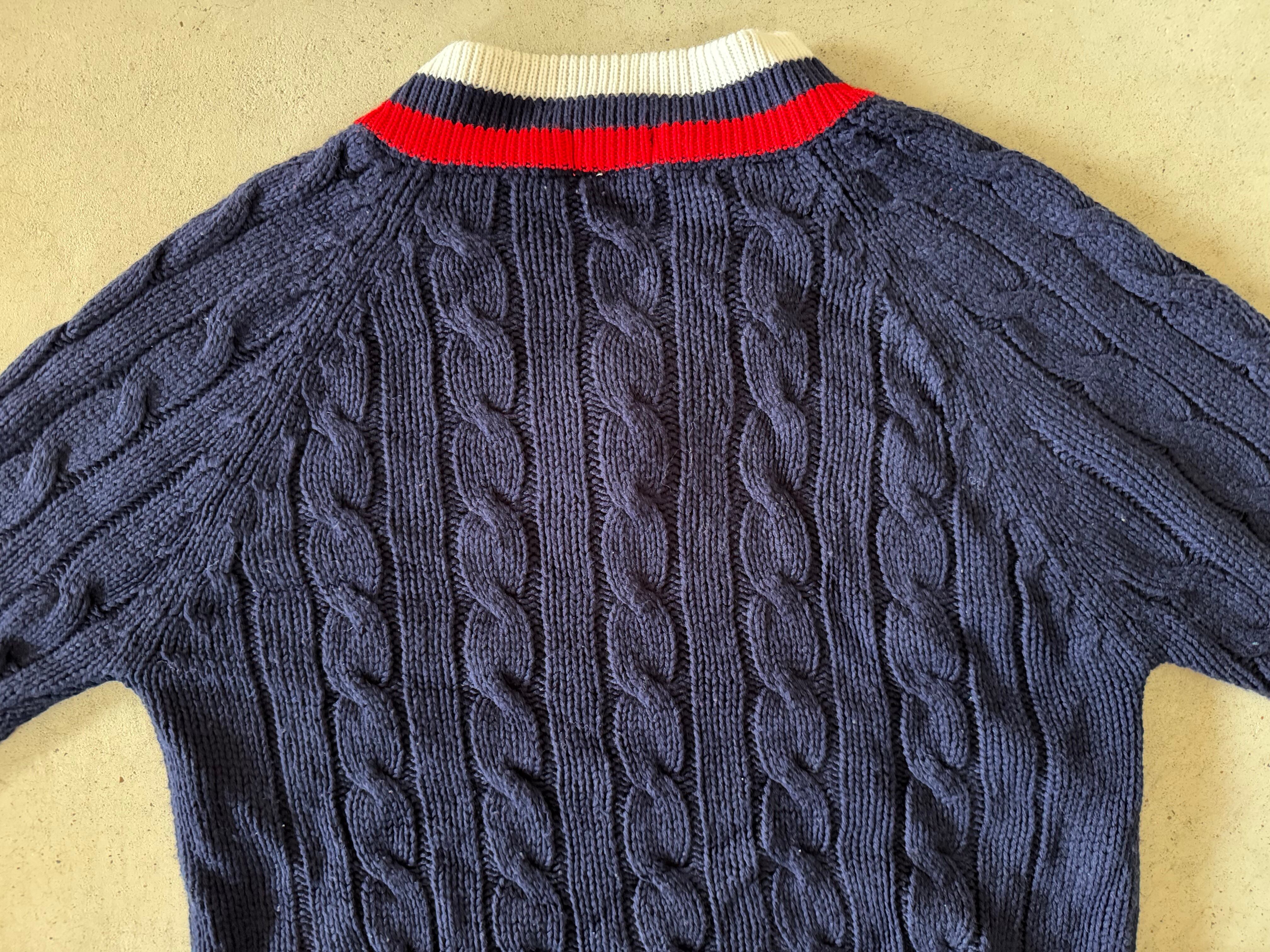 70〜80年代の糸巻きたぐがつく、IZOTのLACOSTE。ポロシャツやカーディガン、Vネックセーターはよく見かけますが、チルデンセーターは数が少ないので希少価値の高い一枚です。