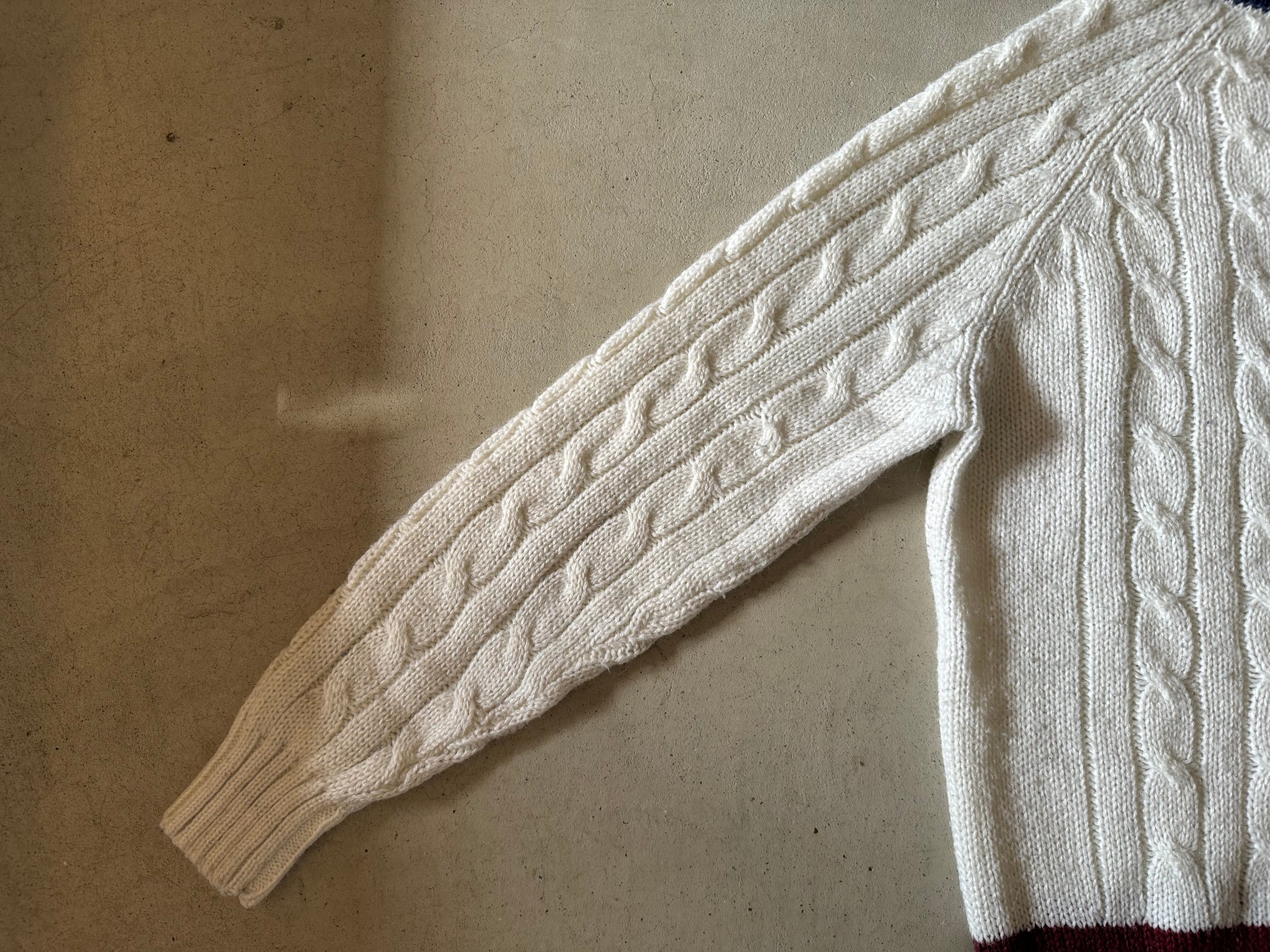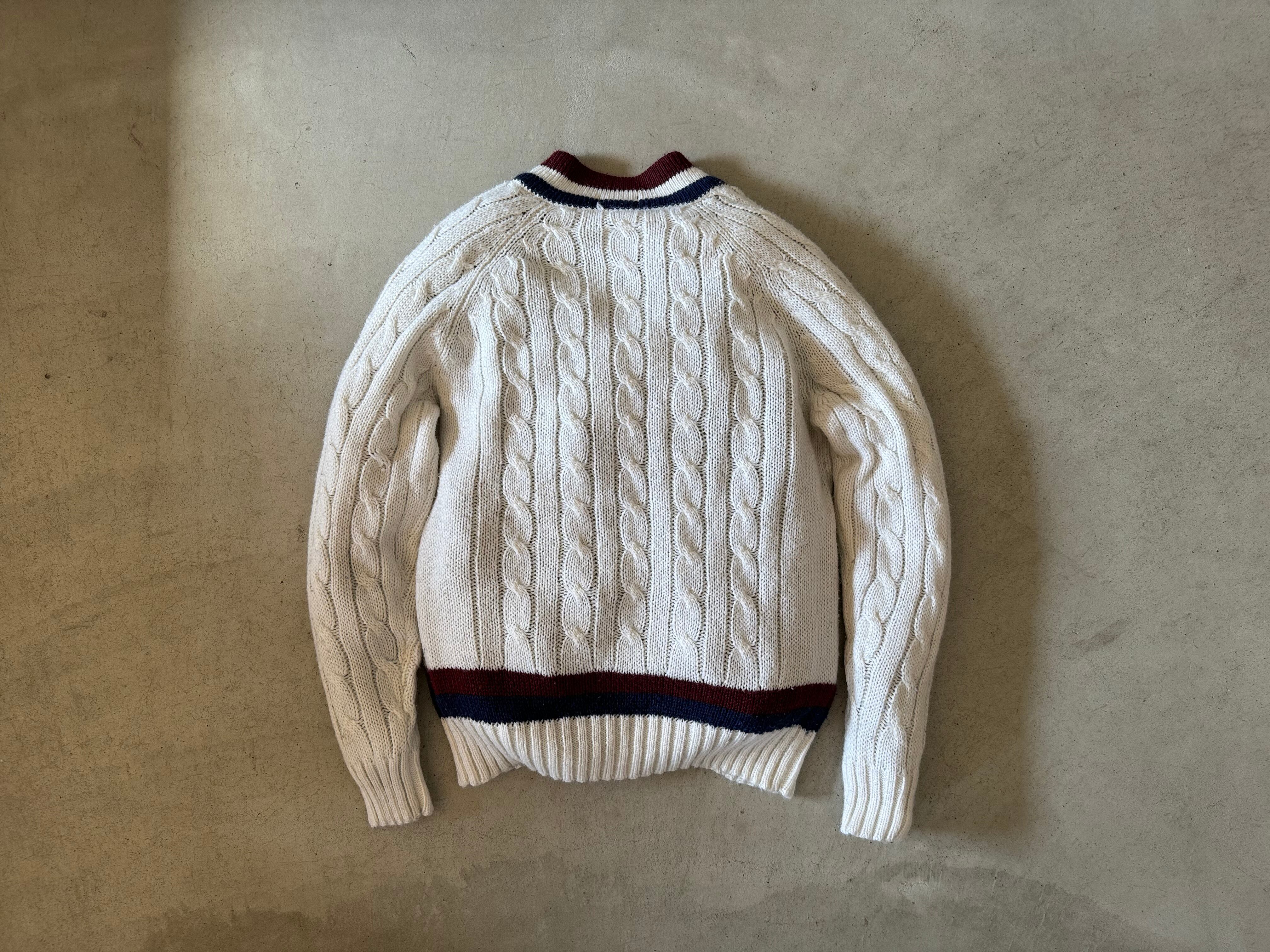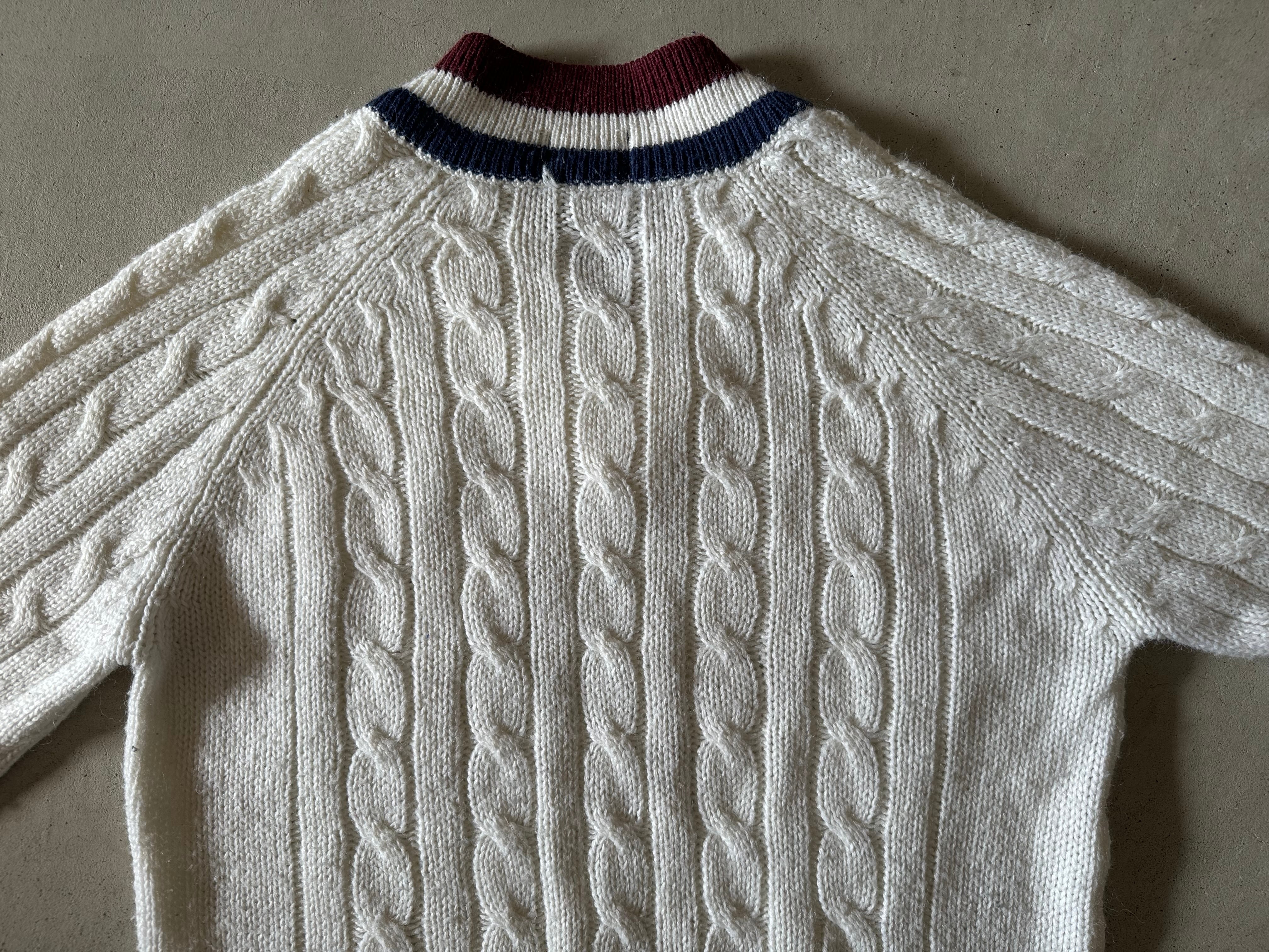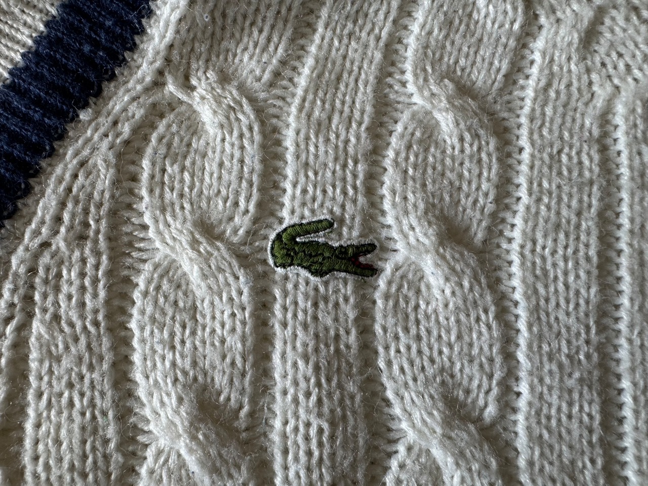 70〜80年代の糸巻きたぐがつく、IZOTのLACOSTE。ポロシャツやカーディガン、Vネックセーターはよく見かけますが、チルデンセーターは数が少ないので希少価値の高い一枚です。