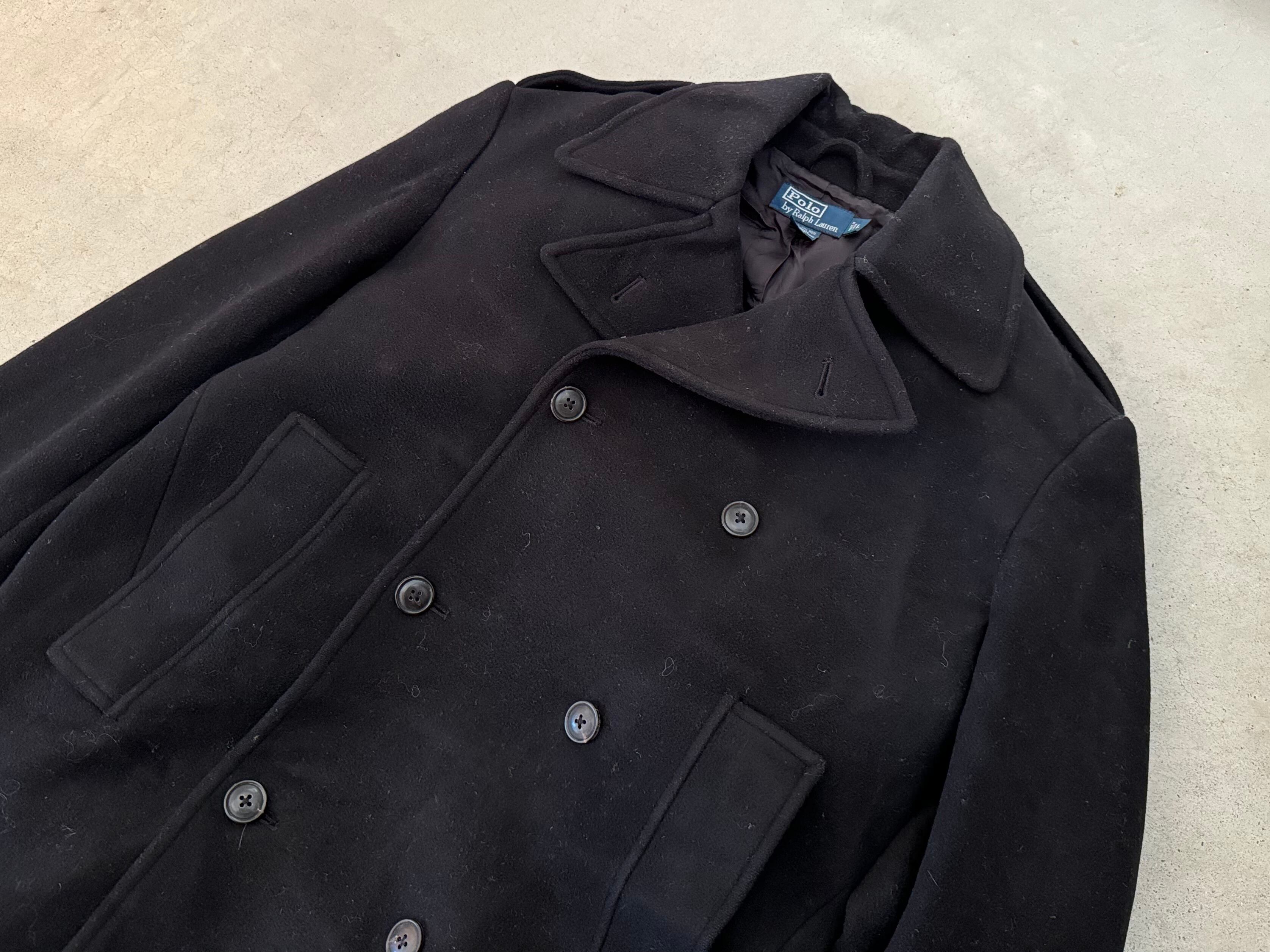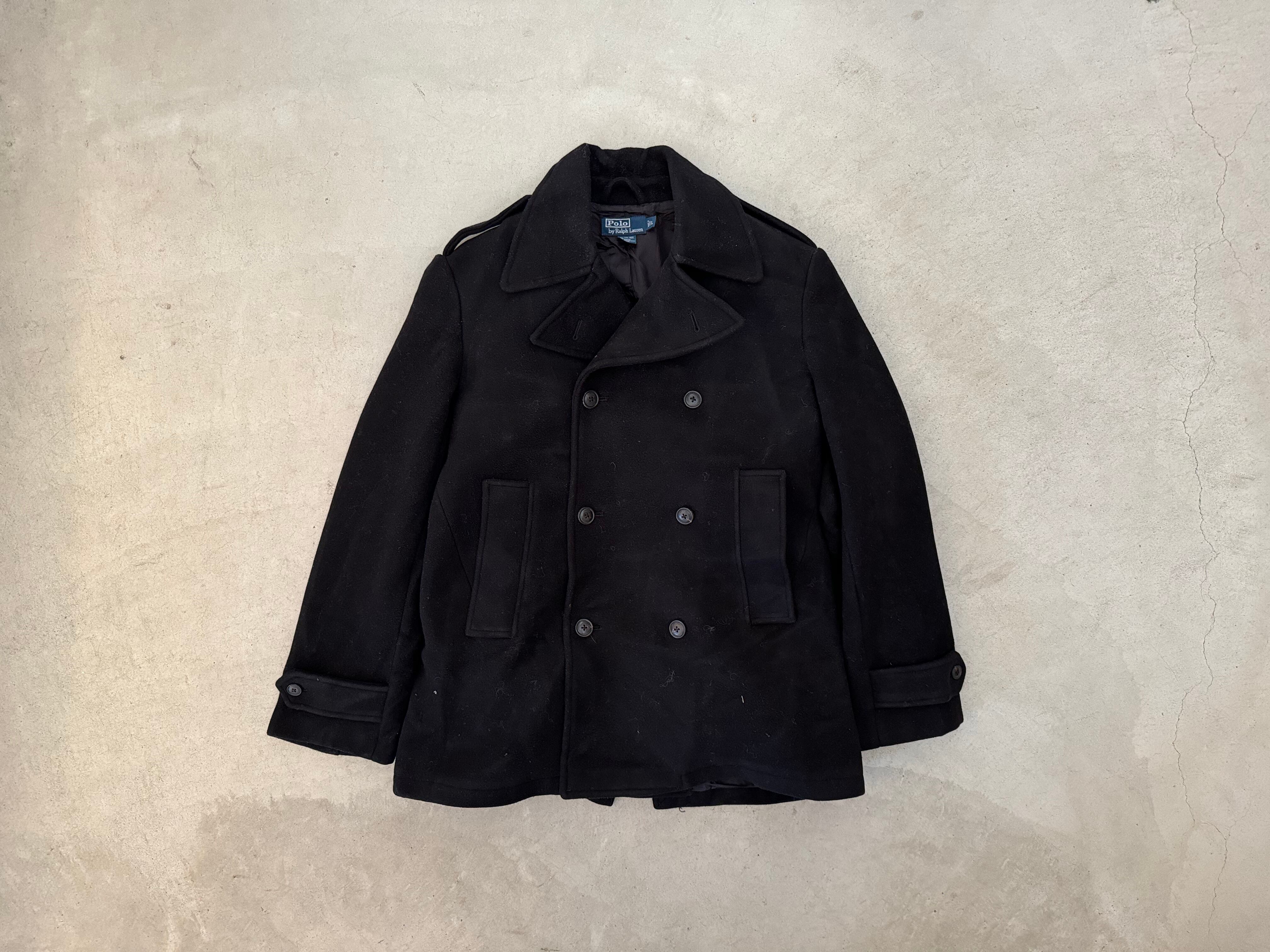 ラルフローレンのオーソドックスな黒のメルトン素材のPコート。