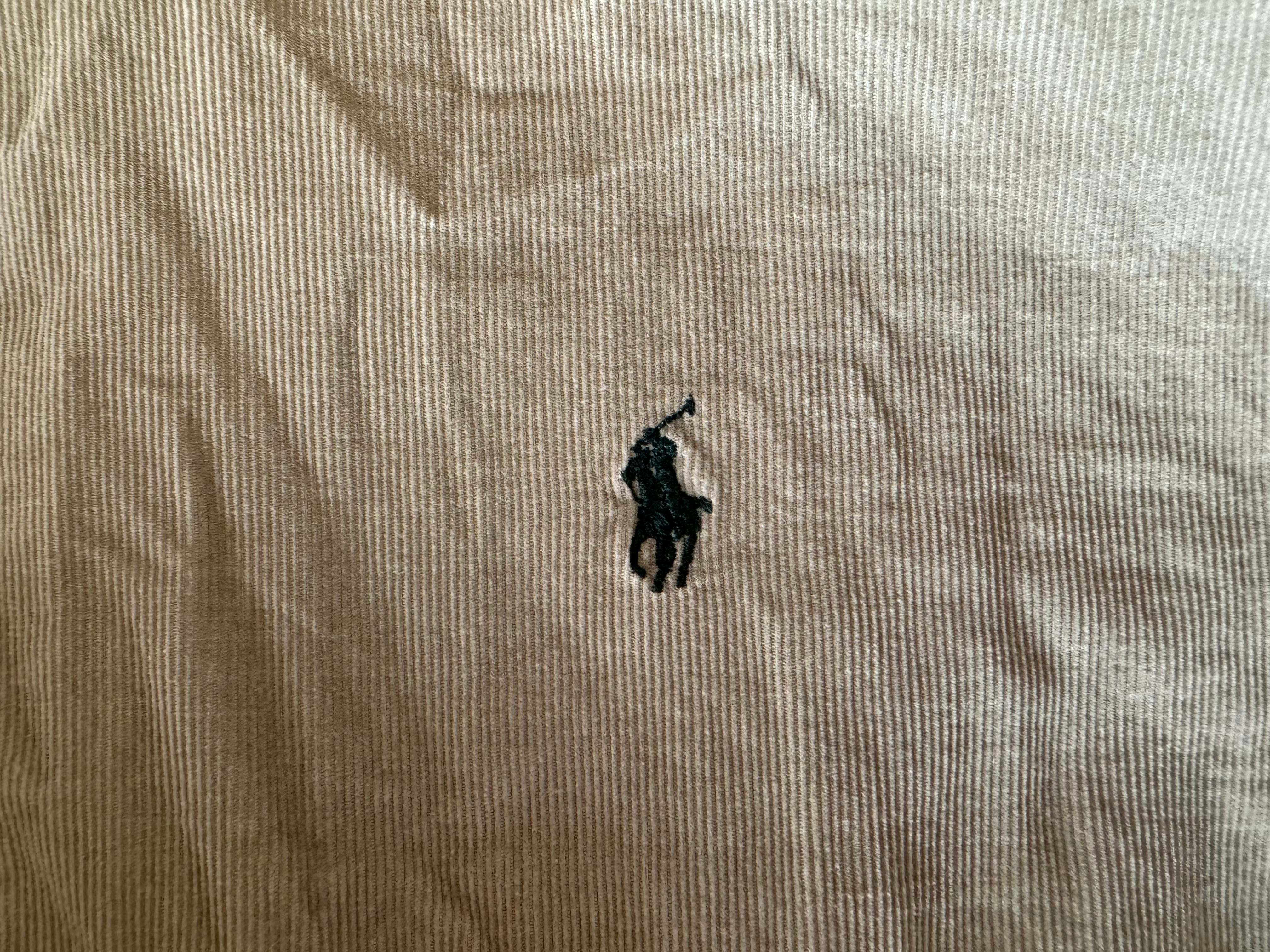 襟下の刺繍されたラルフローレンのロゴは80年代頃に見られた物。