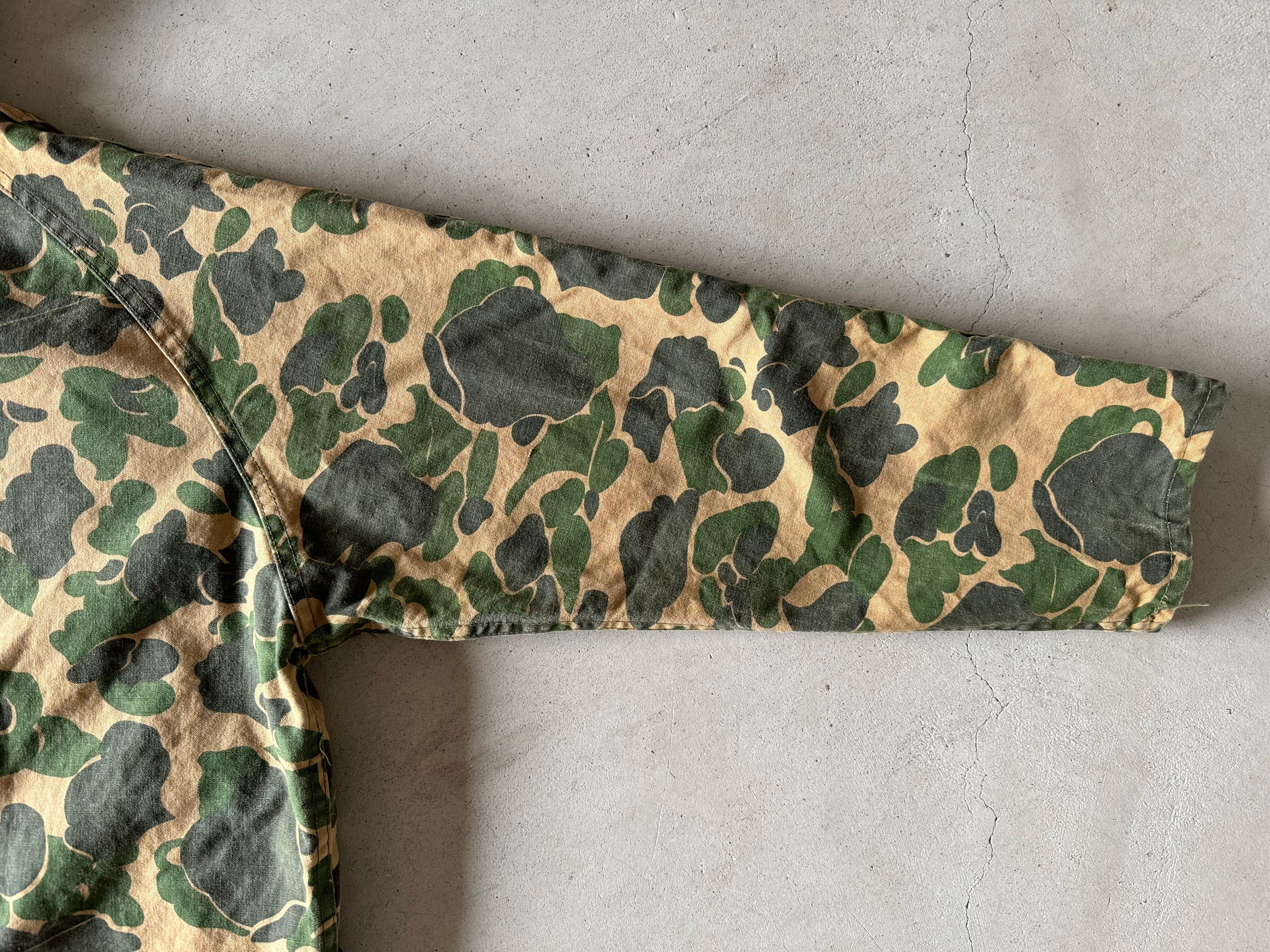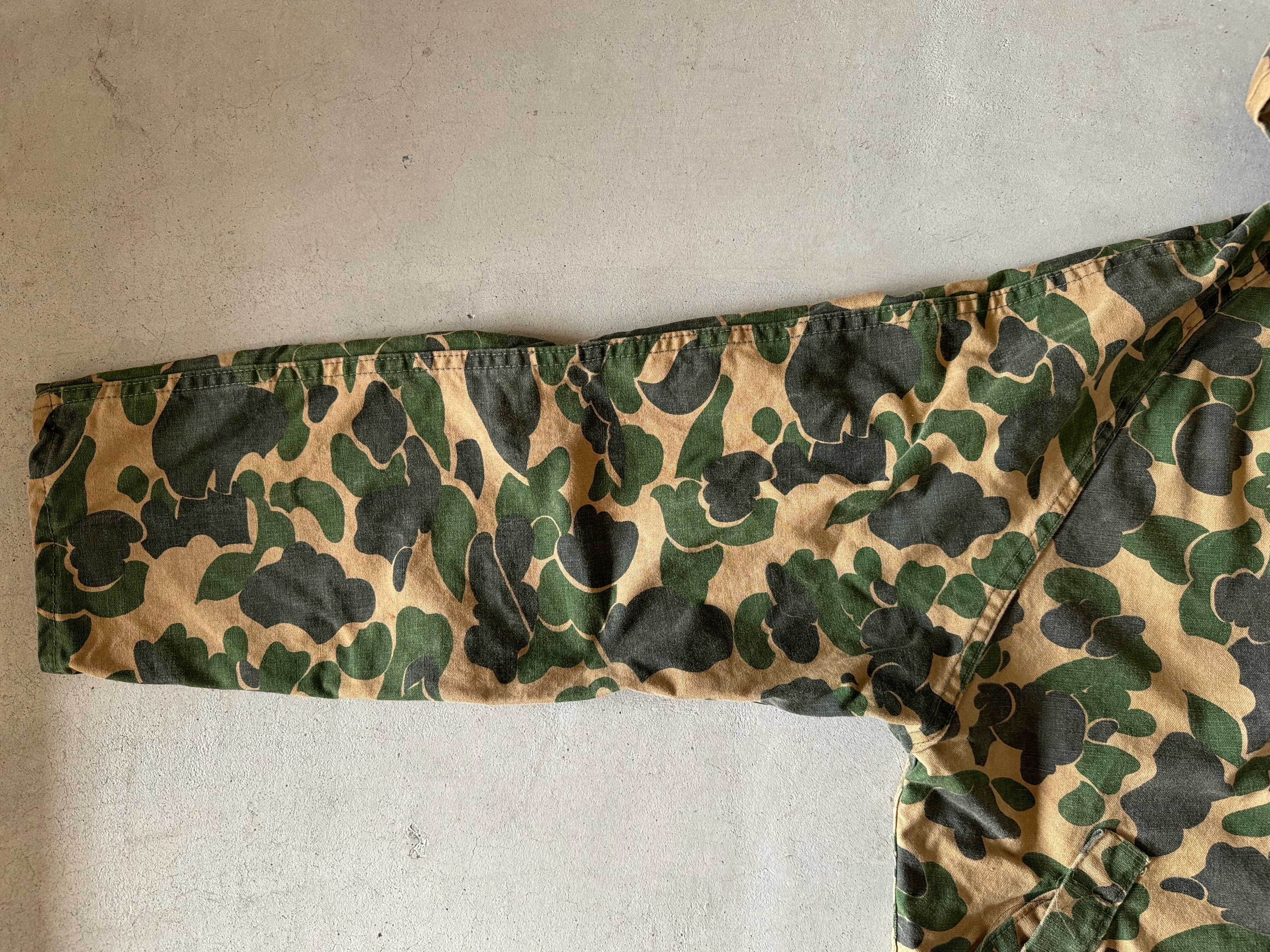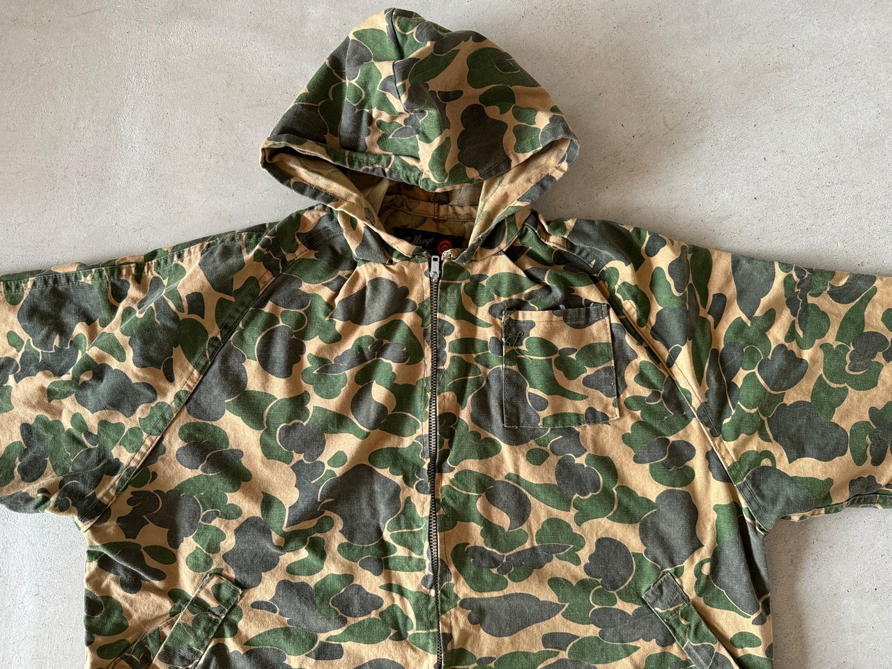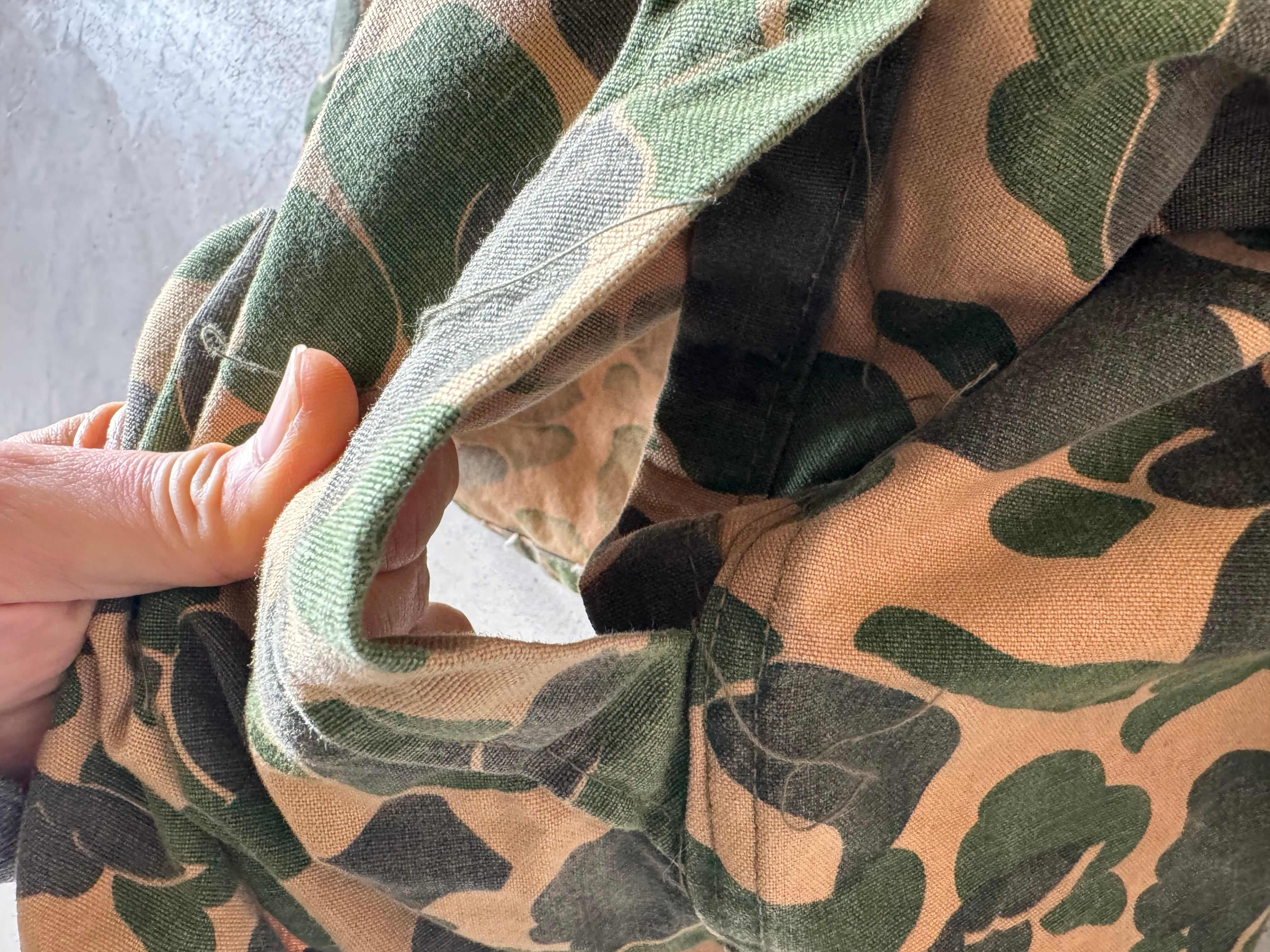 ハンティングジャケットなどはよく見かけますが、こちらのパーカージャケットは珍しいかと思います。着方としてはオーバーコートで腰のポケットはスルーポケット仕様となっております。6枚目の画像をご確認ください。