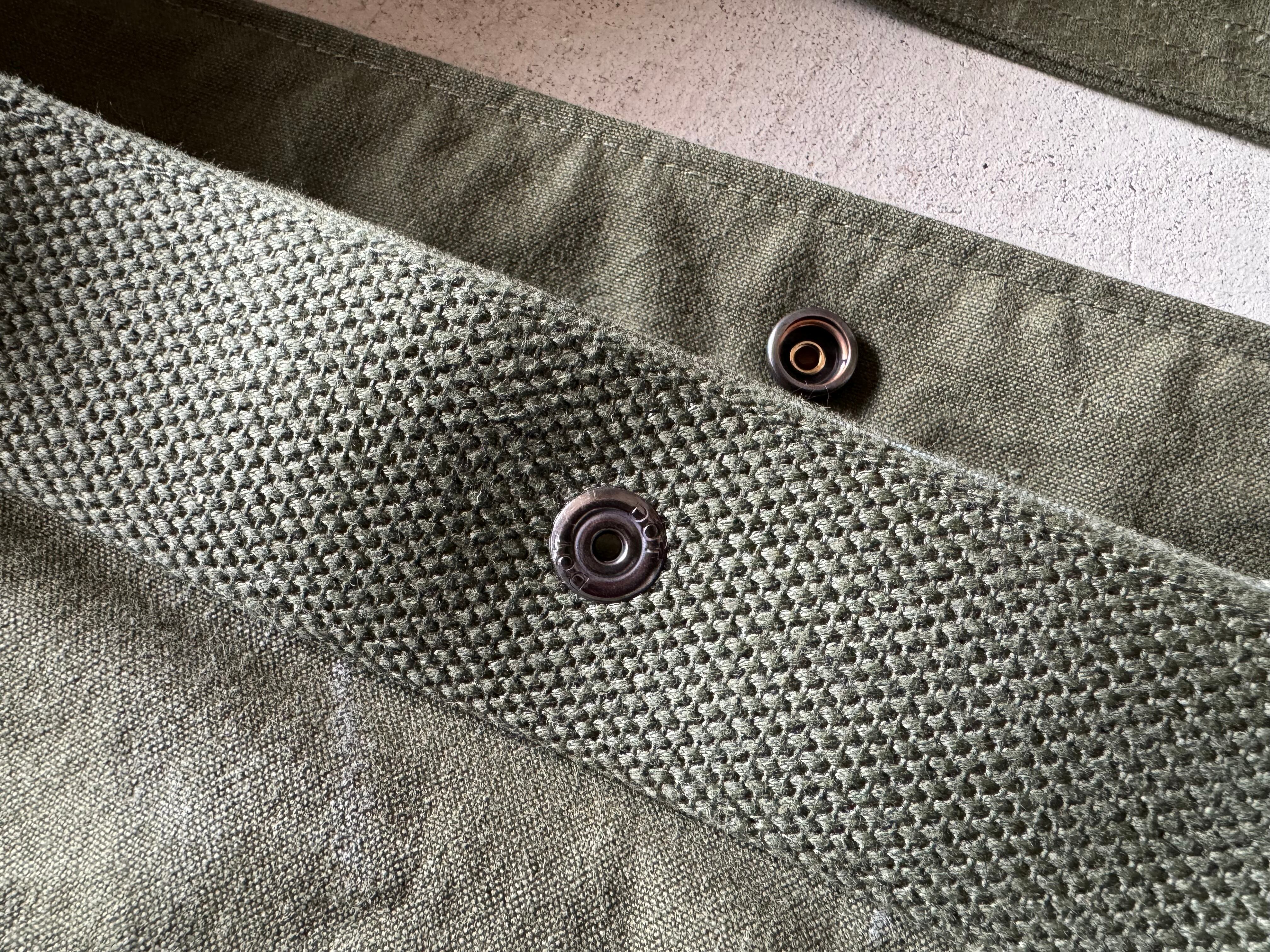 開口部についているスナップボタンは、スコービル社が70年代に米軍に納入した、デッドストックのドットボタンを使用してます。ボタン裏の『DOT』の刻印がマニア心をくすぐります。。。