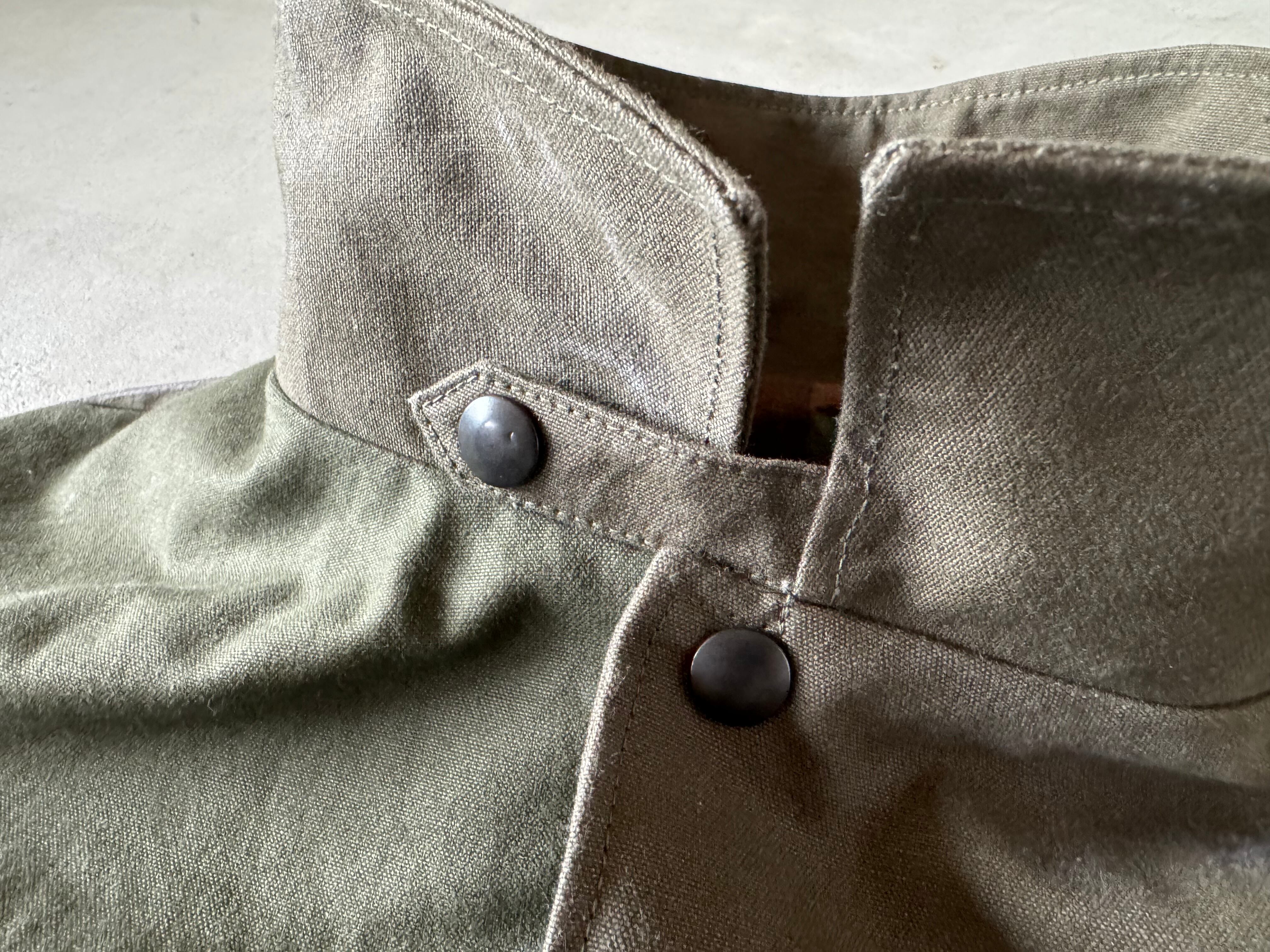 スナップボタンは、70年代、スコービル社が米軍に納入したデッドストックのドットボタンを使用。『DOT』の刻印も玄人にはグッとくるところかと。。。