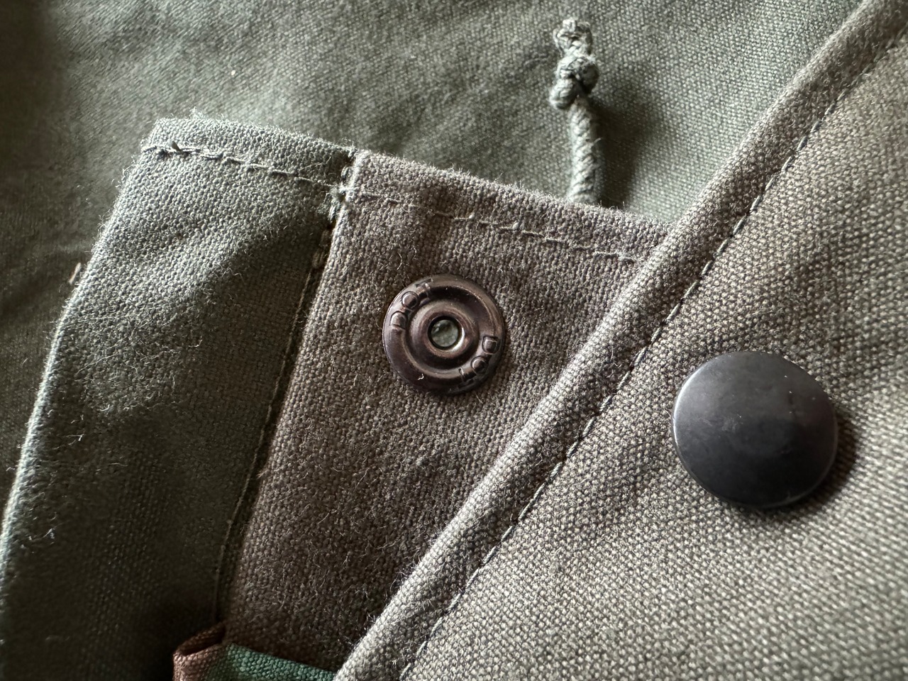 スナップボタンは、70年代、スコービル社が米軍に納入したデッドストックのドットボタンを使用。『DOT』の刻印も玄人にはグッとくるところかと。。。