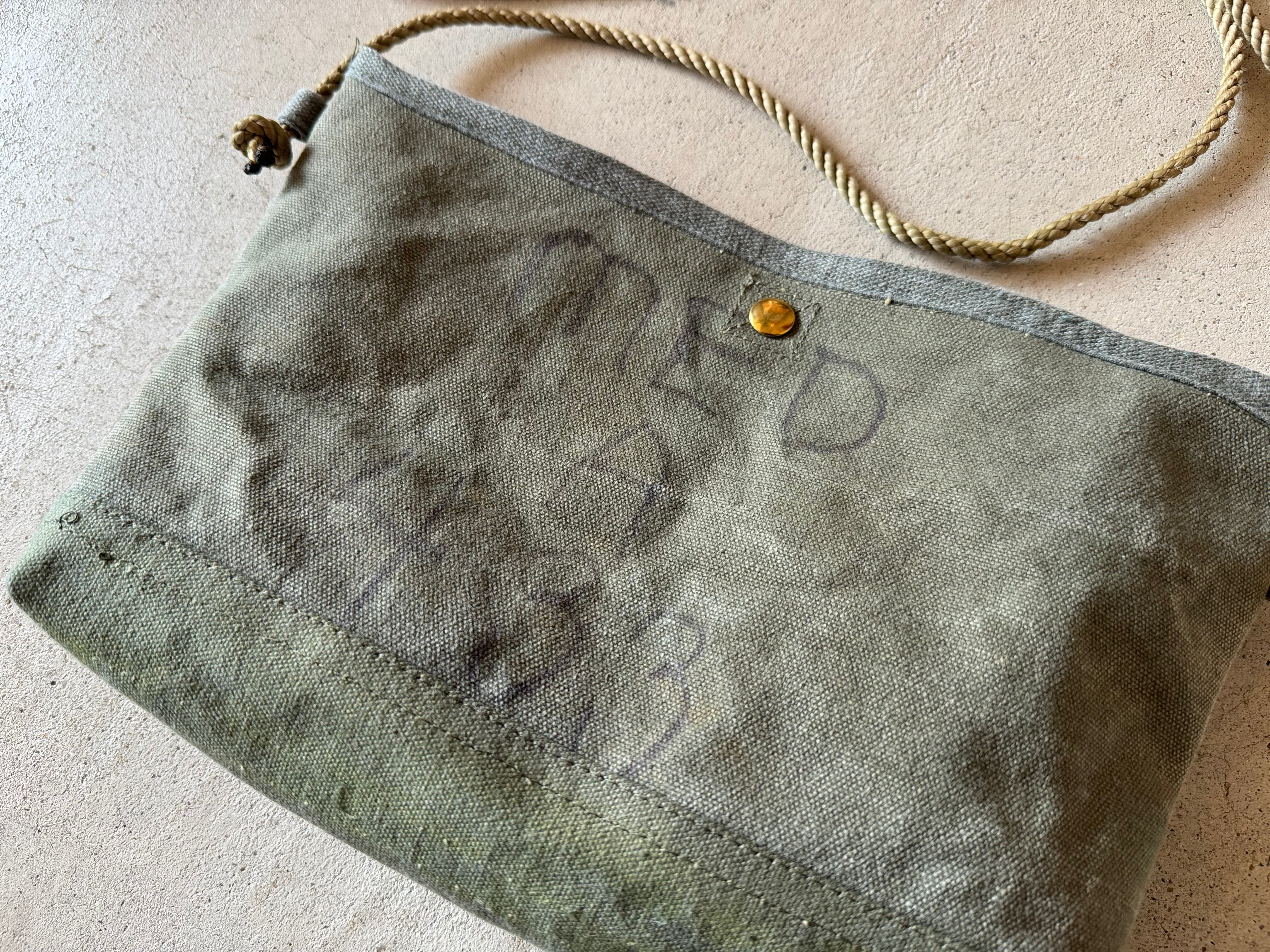 ボディーは80年代のフライヤーズキットバッグのコットンキャンバス生地。手書きで書かれた文字が良い味を醸し出しています。