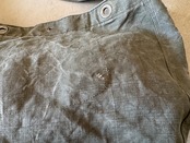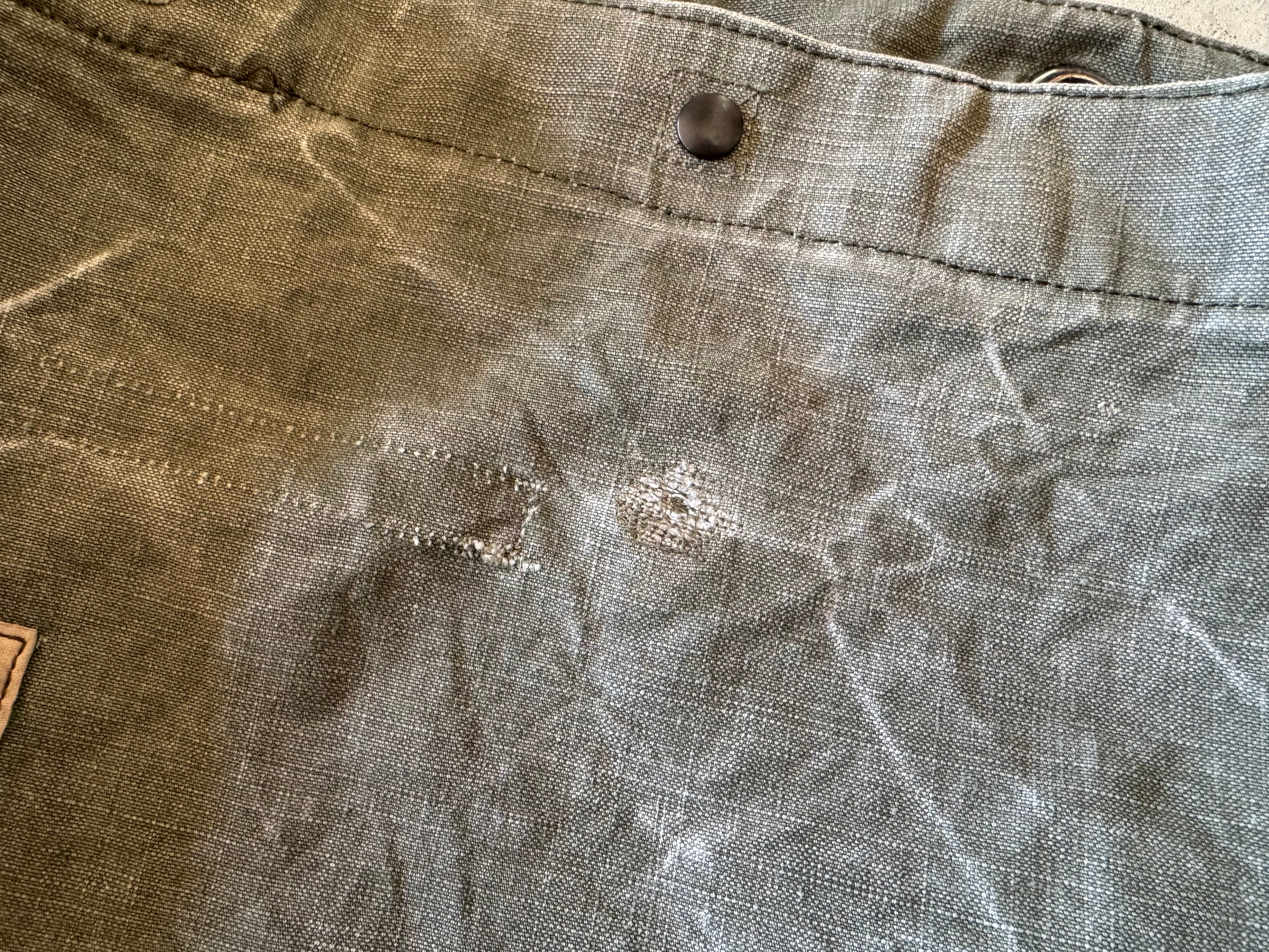 穴があいた、破れた、糸がほつれた、などのトラブルは、ヴィンテージ生地でのパッチワークや、ミシンでたたいて補修をします。ボタンやスナップボタンなどの付属品が取れてしまった、カバンのストラップがちぎれたなどの場合は、似寄りの物で対応させていただきます。