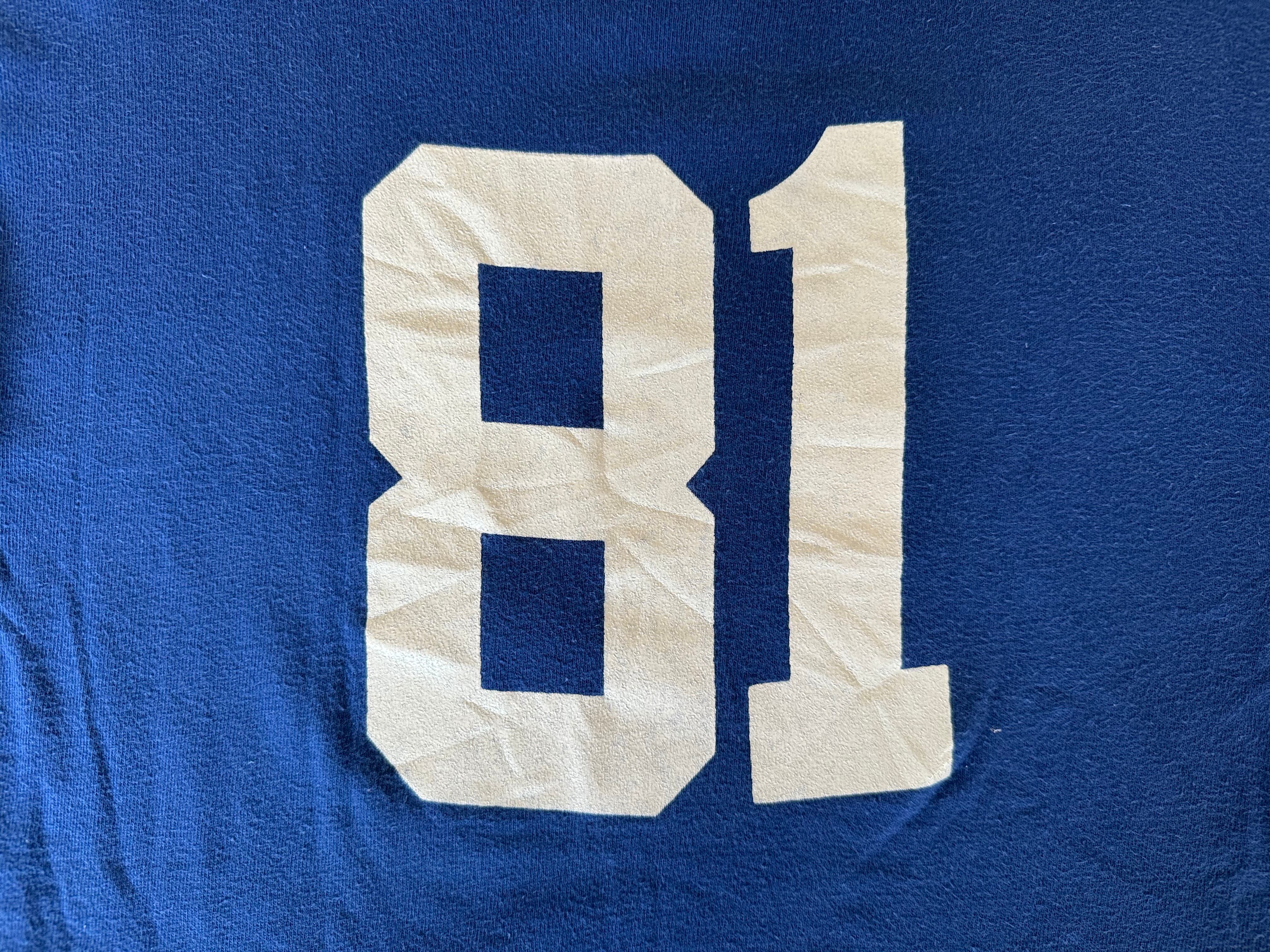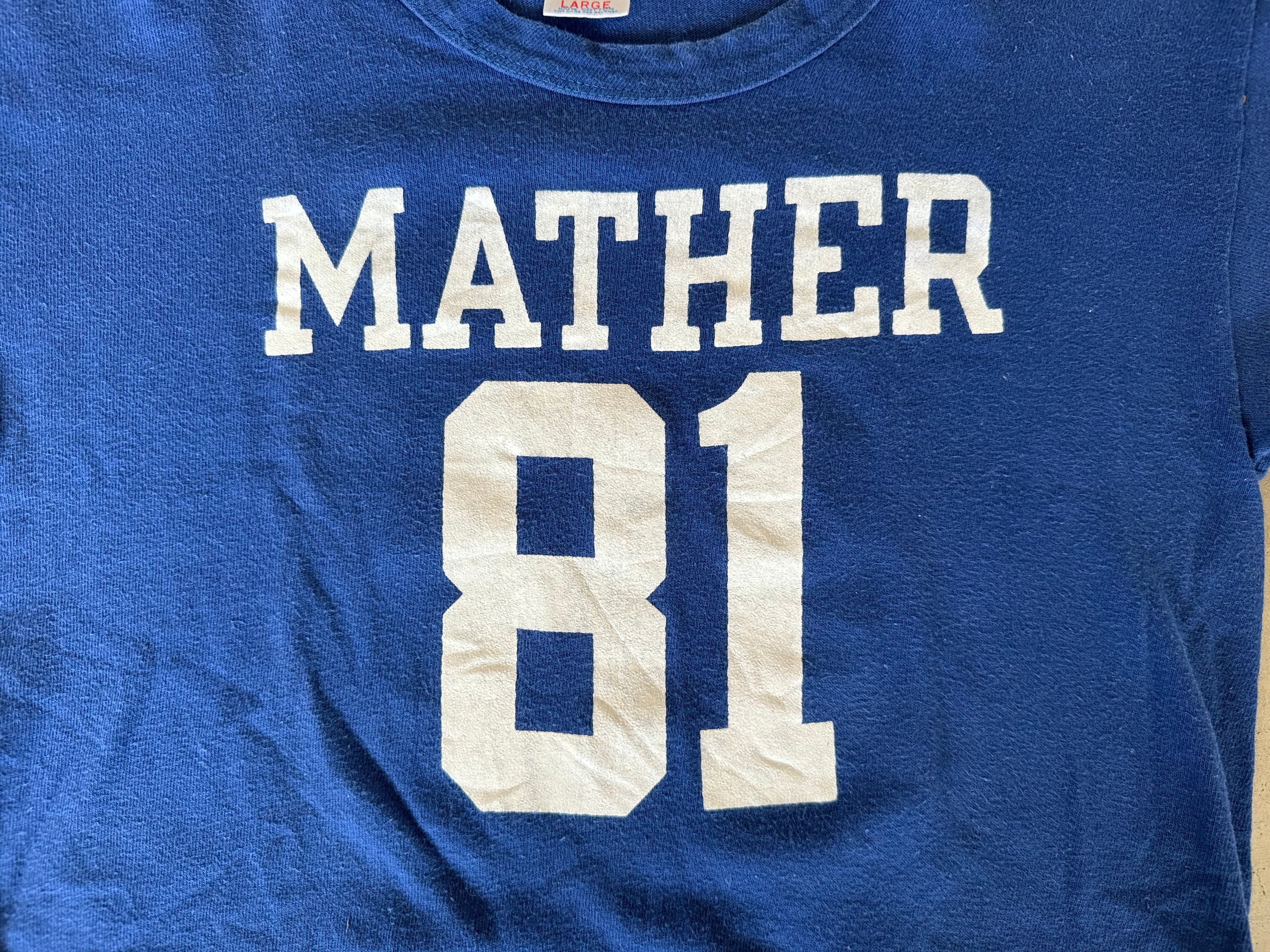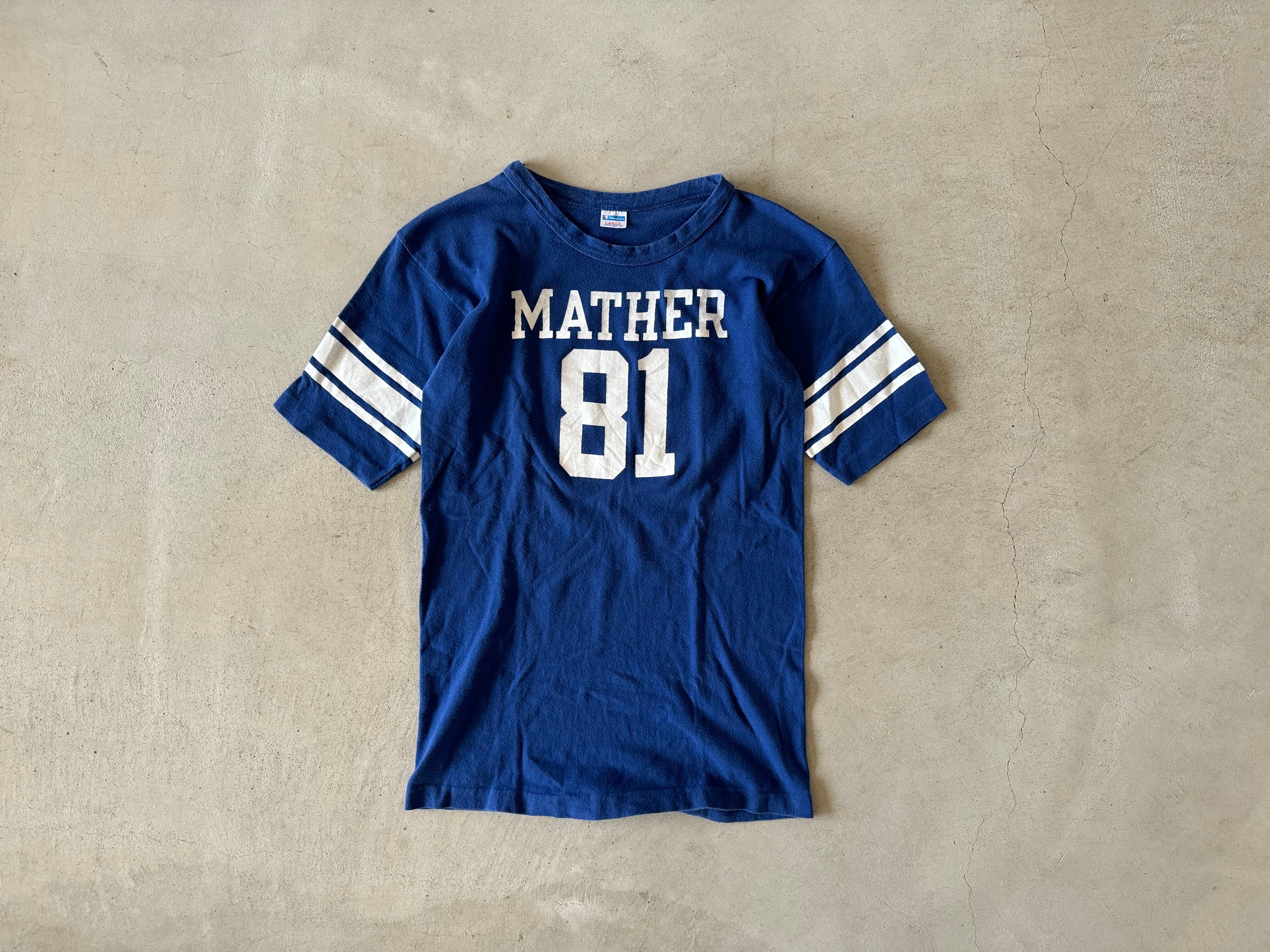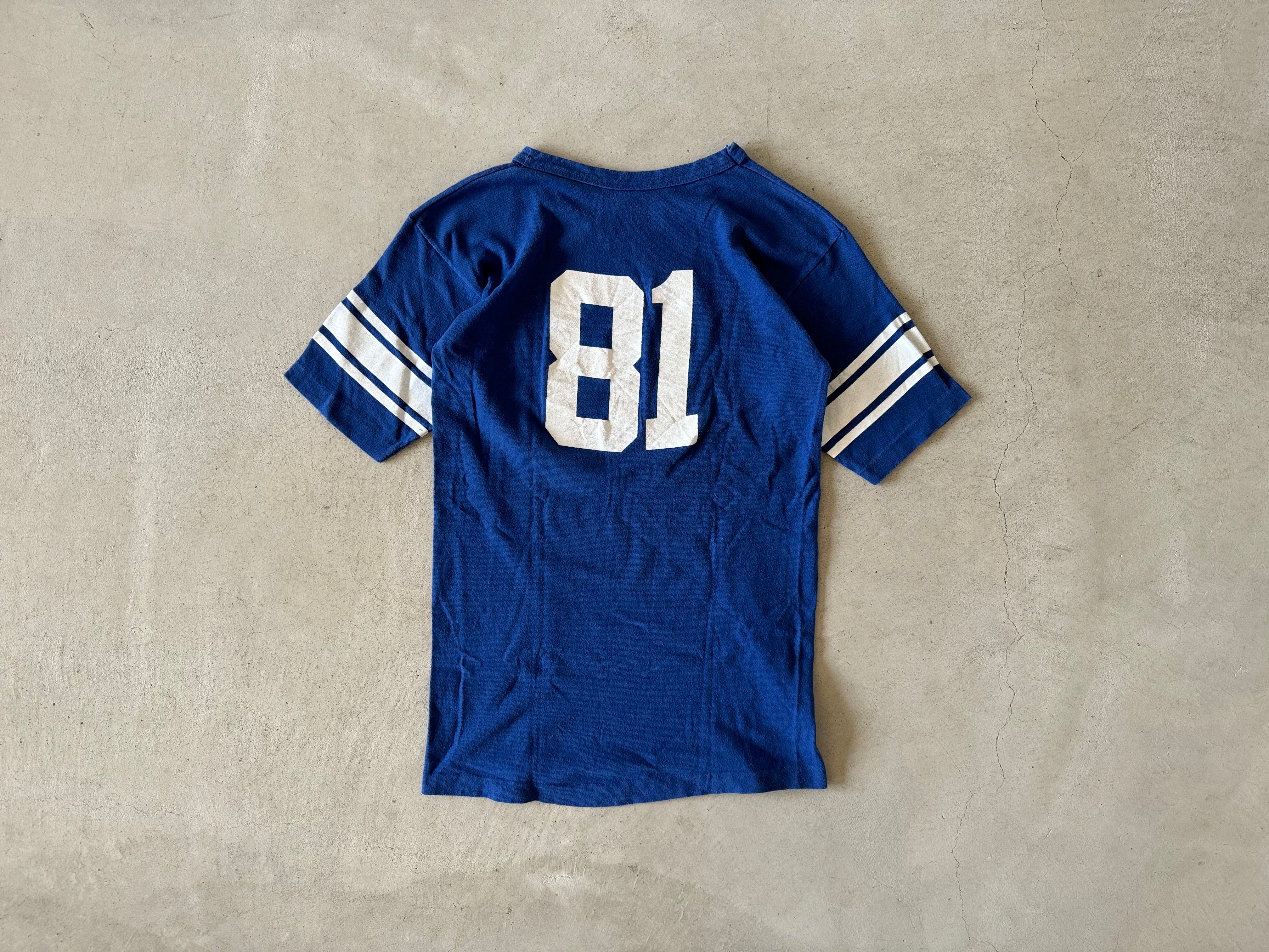 バータグがつく、コットン100%のフットボールTシャツ。この年代の特徴で、シルエットは細めでございます。女性にオススメの一枚。