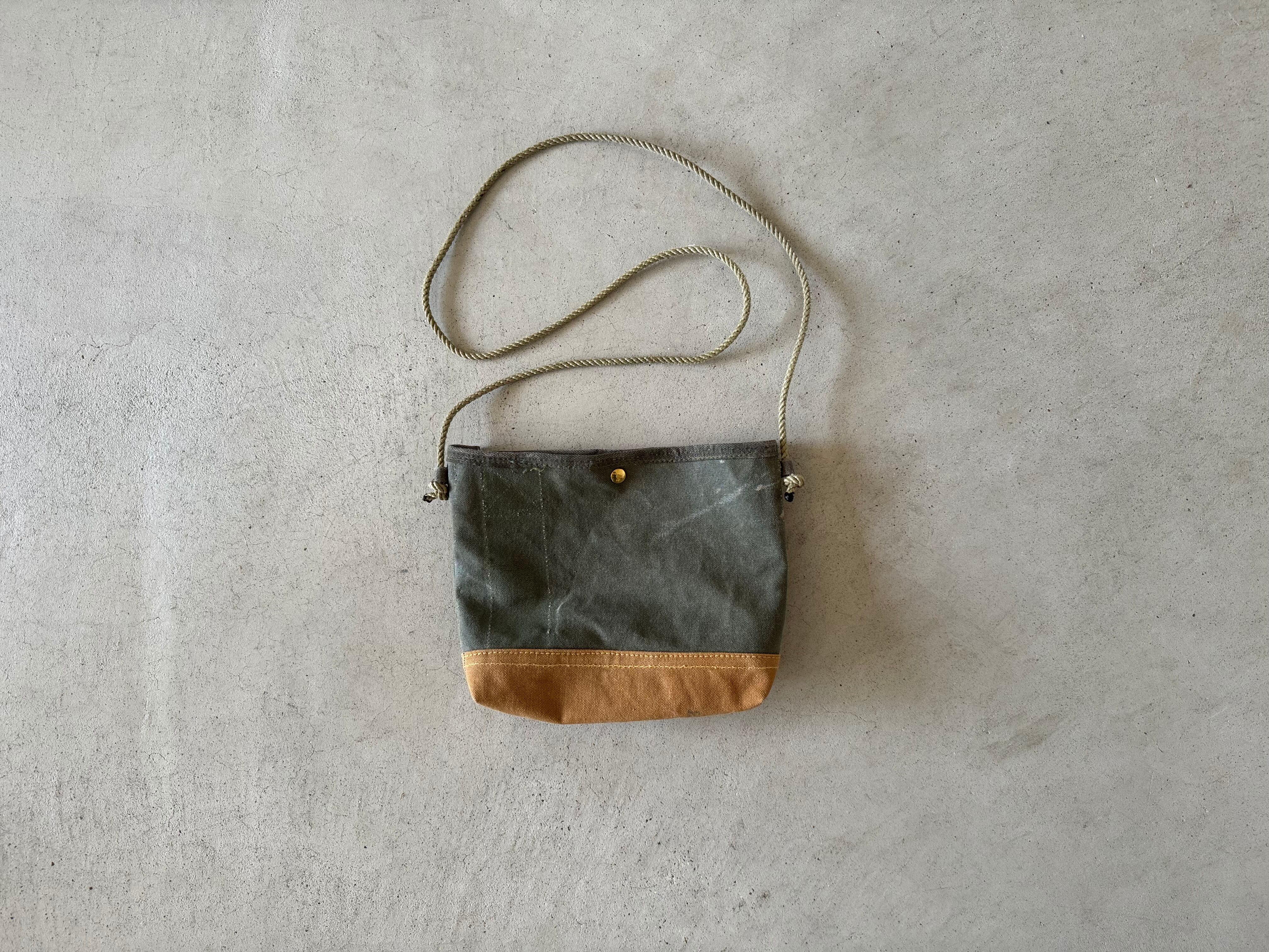底は40年代のイギリス軍のダッフルバッグ。とても分厚いキャンバス生地で安定感のあるサコッシュです。