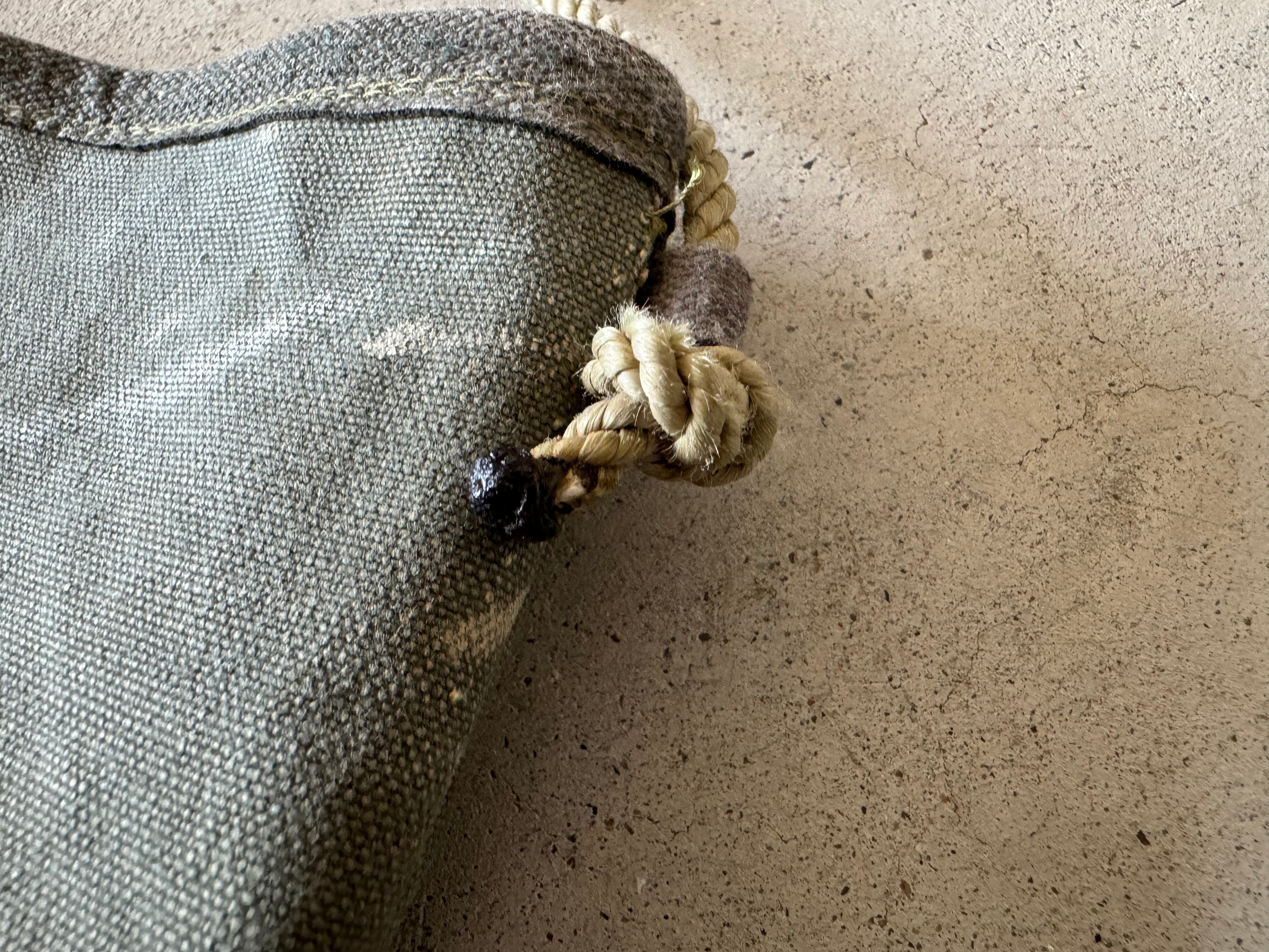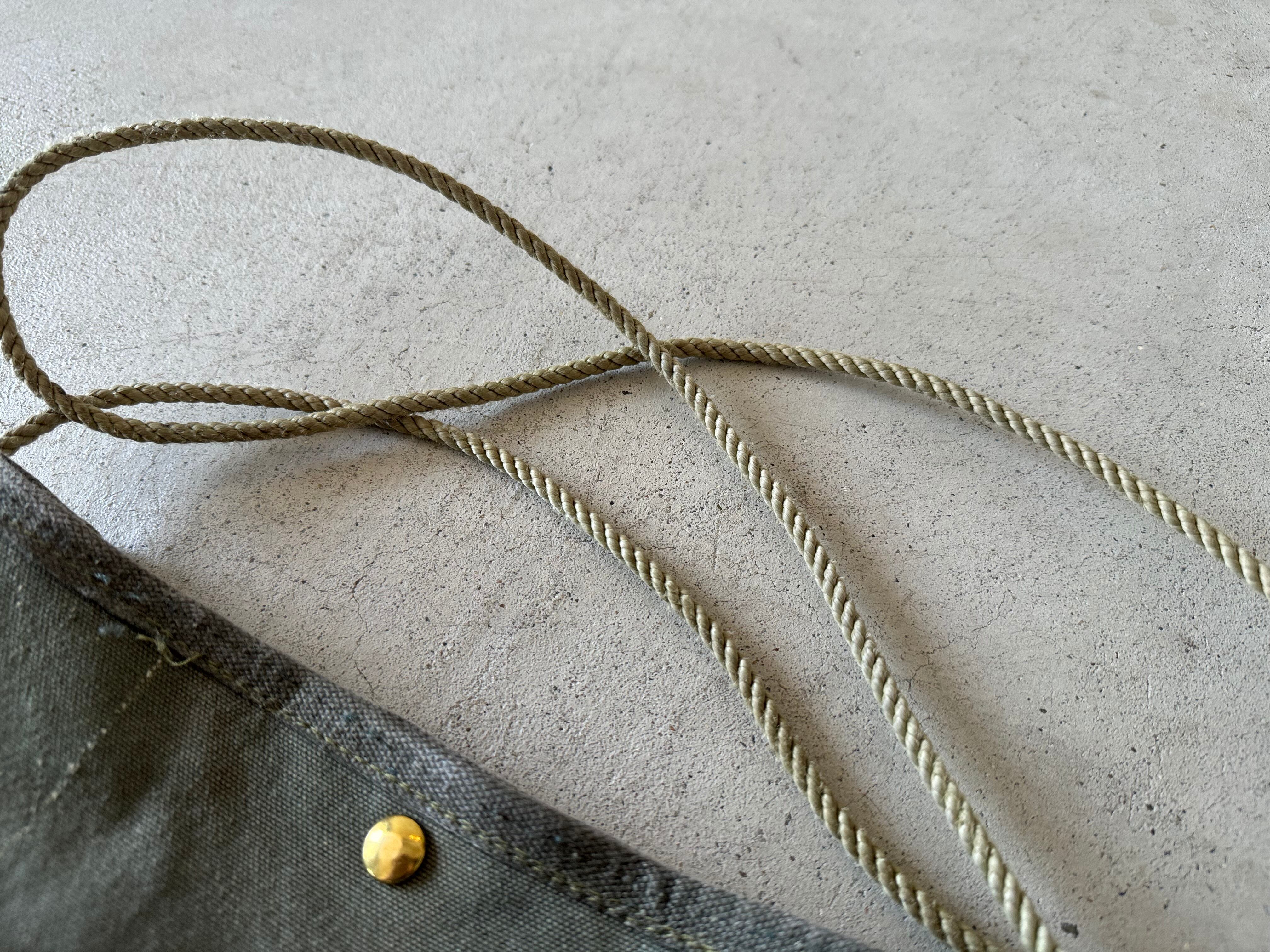 ショルダーの紐はアメリカで50年代頃に旗を上げる時に使用される非常に丈夫な細いロープです。結び目をつくることでショルダーの長さを調節できます。