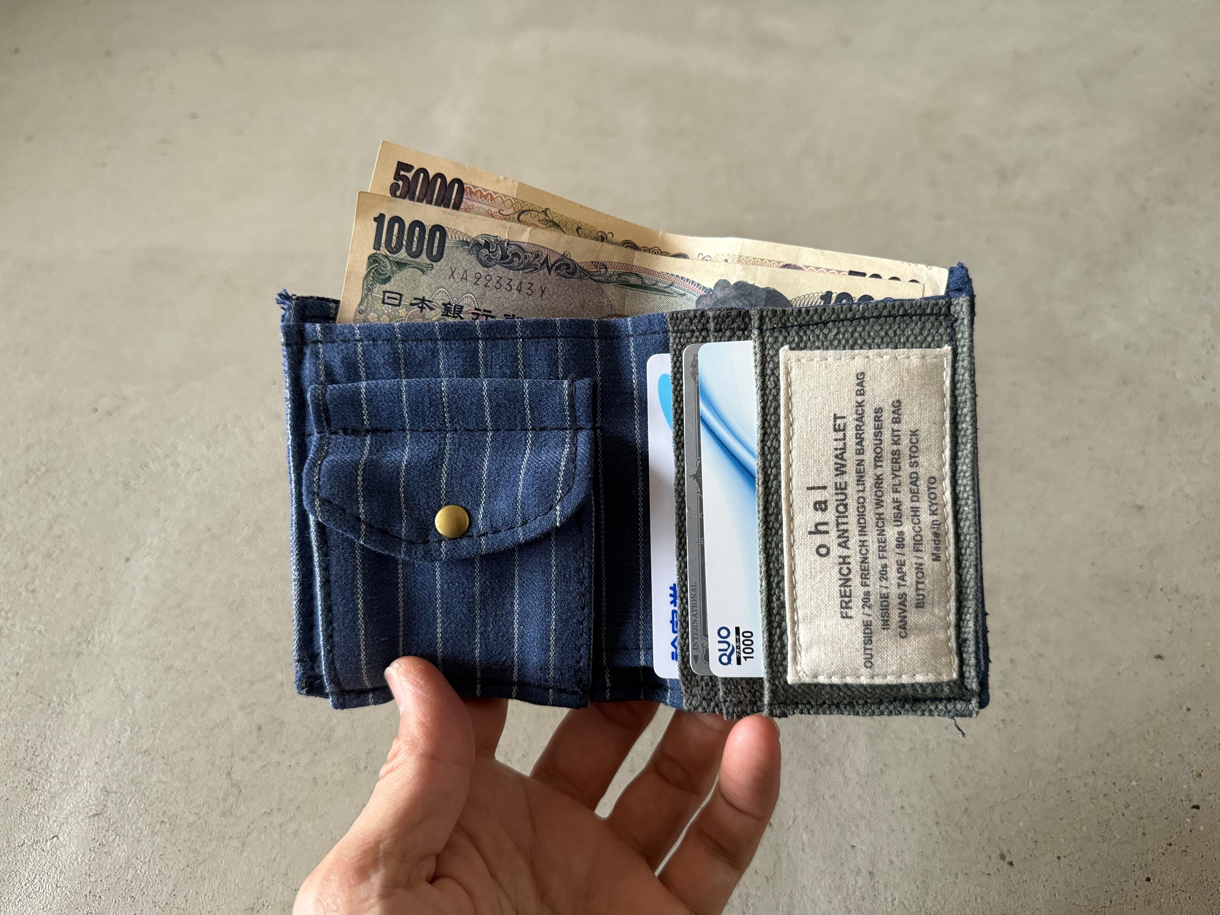 外側は20年代、フランスで使われていたインディゴリネンのバラックバッグの生地を使用。使いこむほどに味わいが出てきそうです。