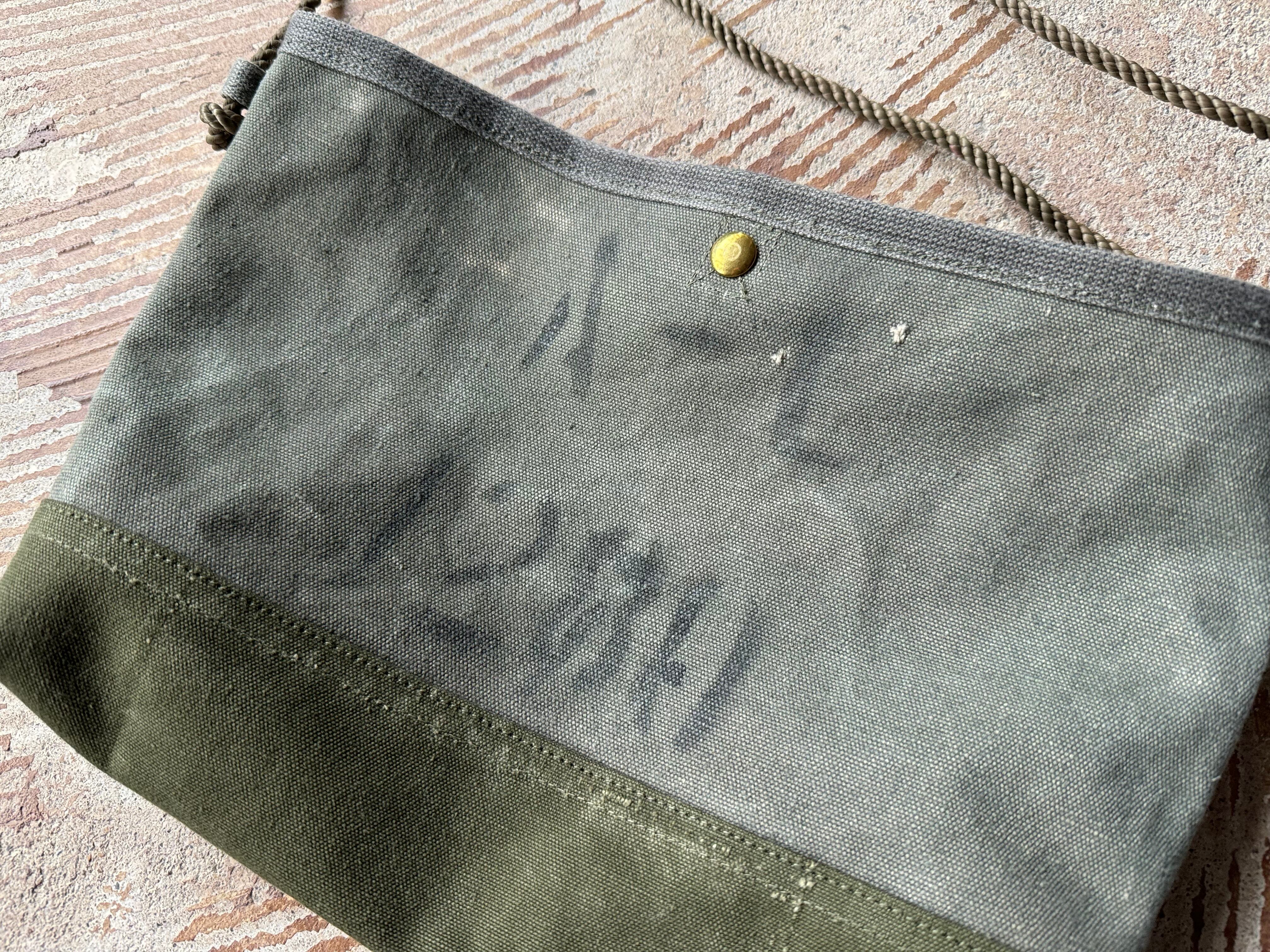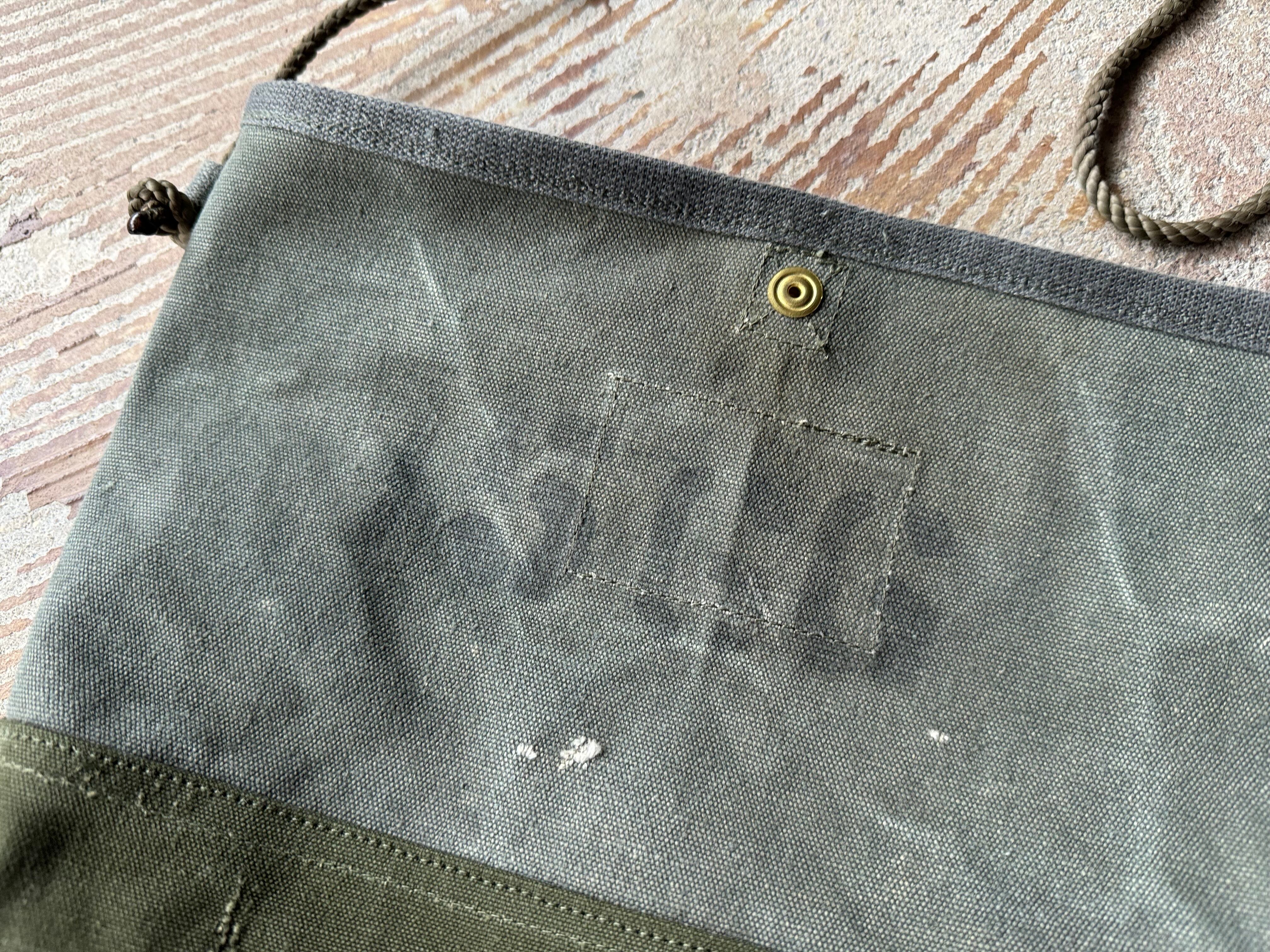 ボディーは80年代のアメリカ軍のフライヤーズキットバッグの生地。独特な褪せたカーキ色がカッコいい生地です。前後に入ったステンシルが抜群にカッコいい個体です。