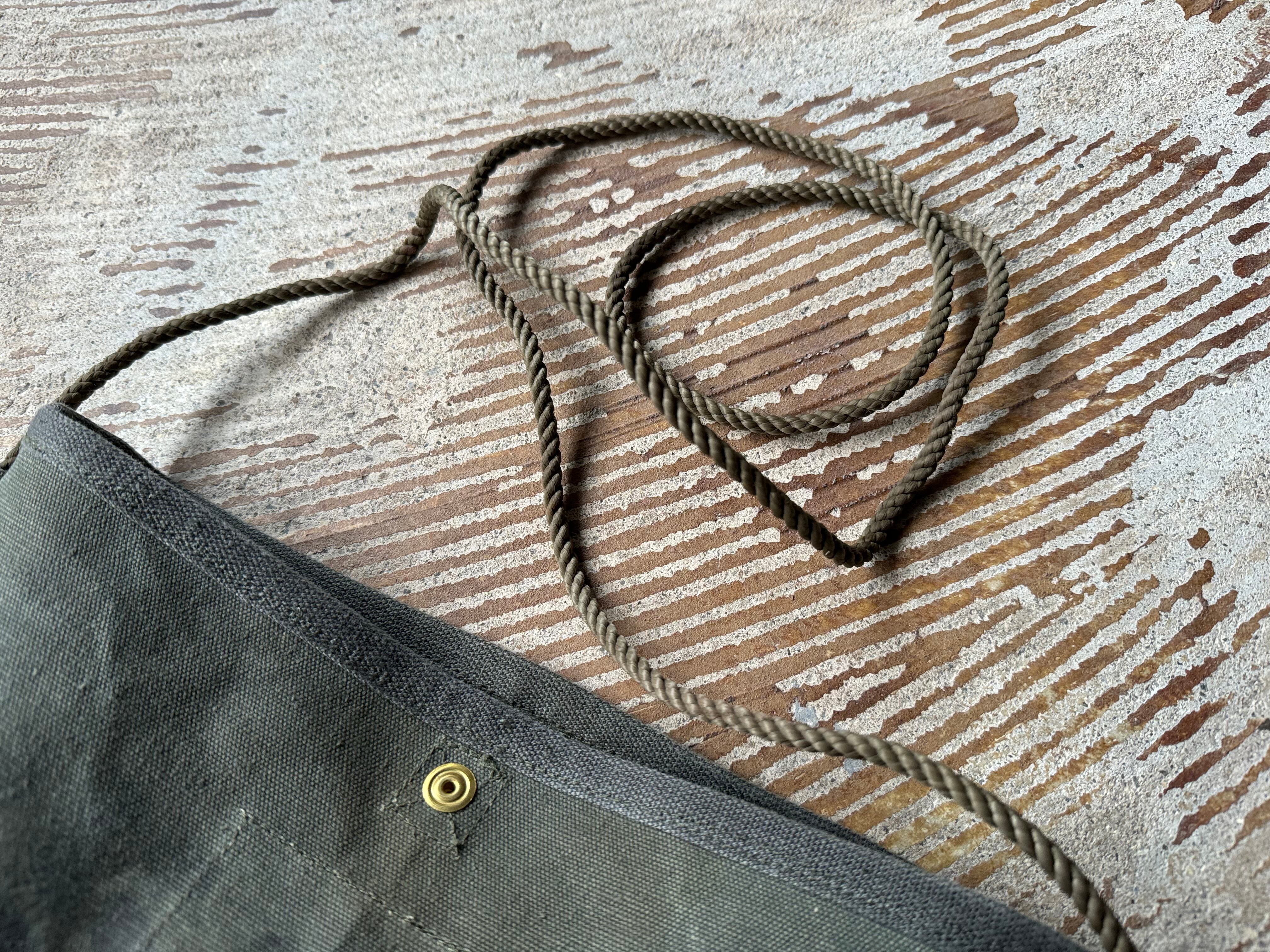 ショルダーの紐はアメリカで50年代頃に旗を上げる時に使用される非常に丈夫な細いロープです。結び目をつくることでショルダーの長さを調節できます。
