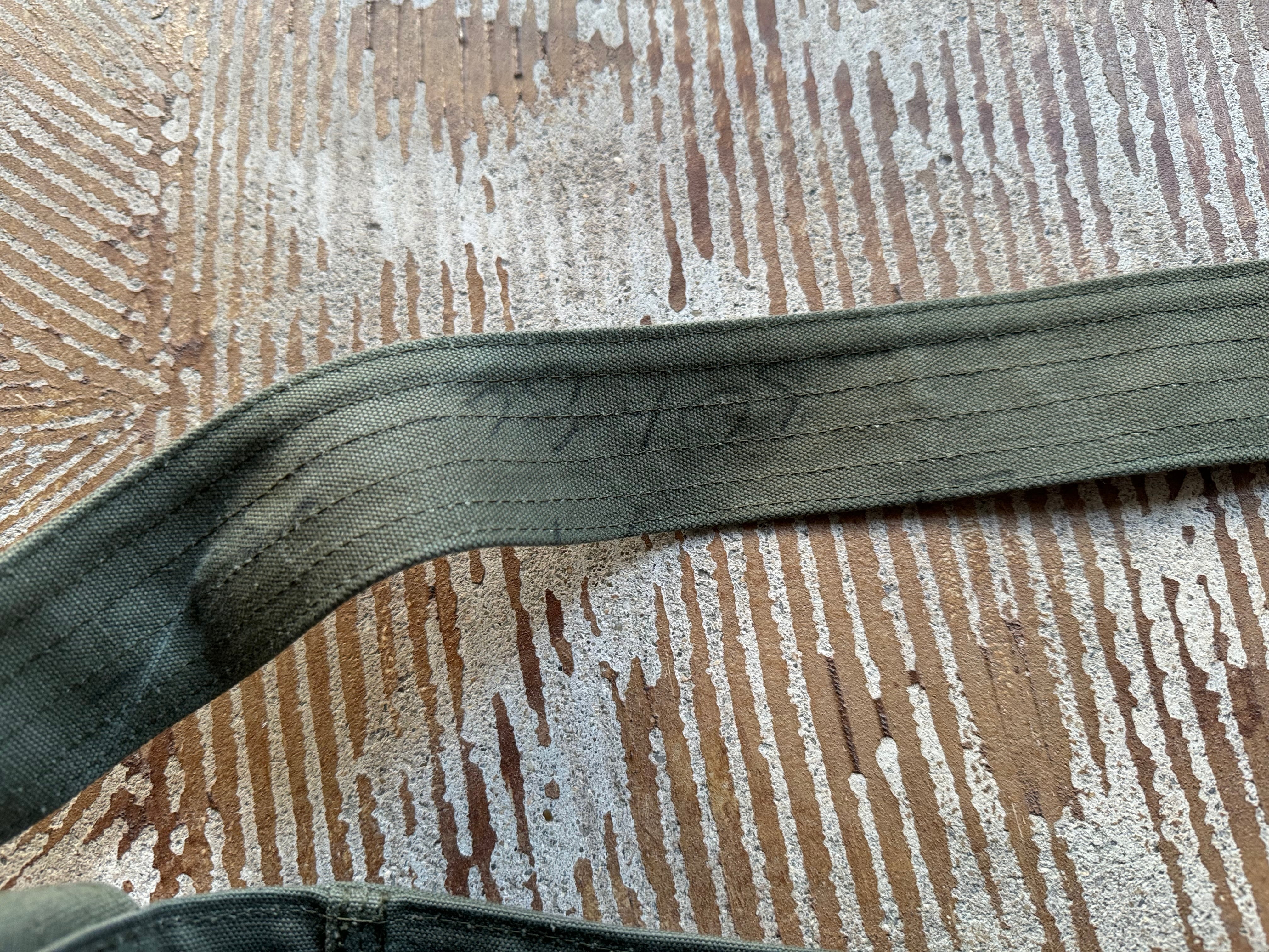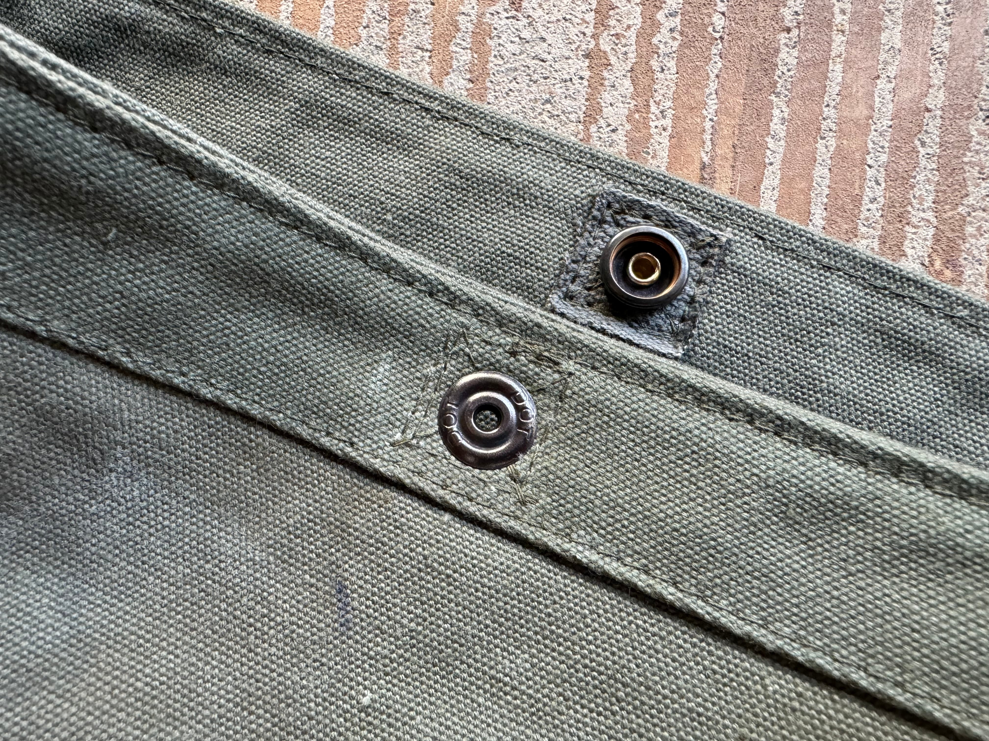 前面には当時のステンシルが残っており81年に納入されたことがわかります。素材はコットンキャンバスです。ステンシルや、縫製跡、傷などがヴィンテージの雰囲気を倍増させます。