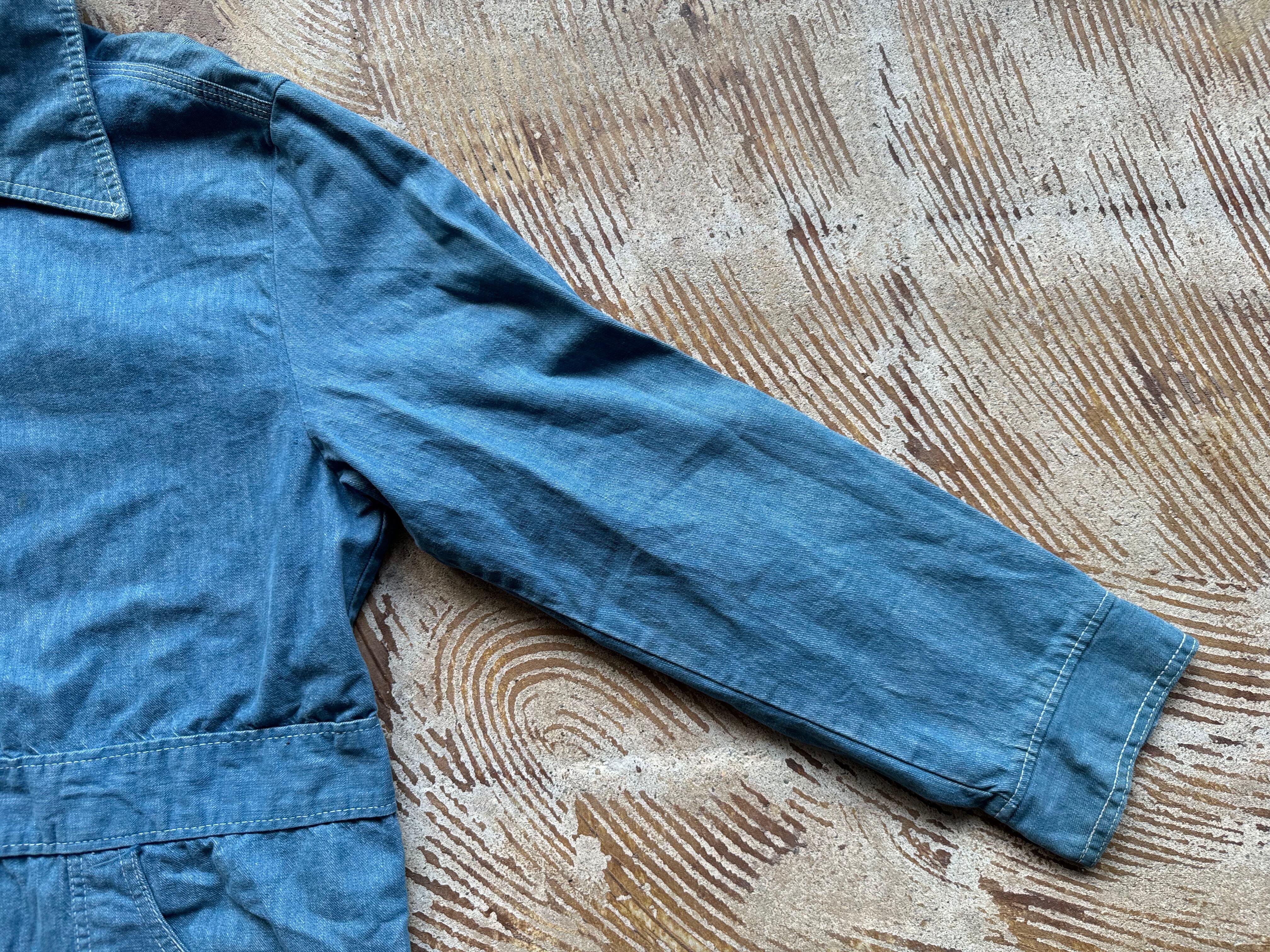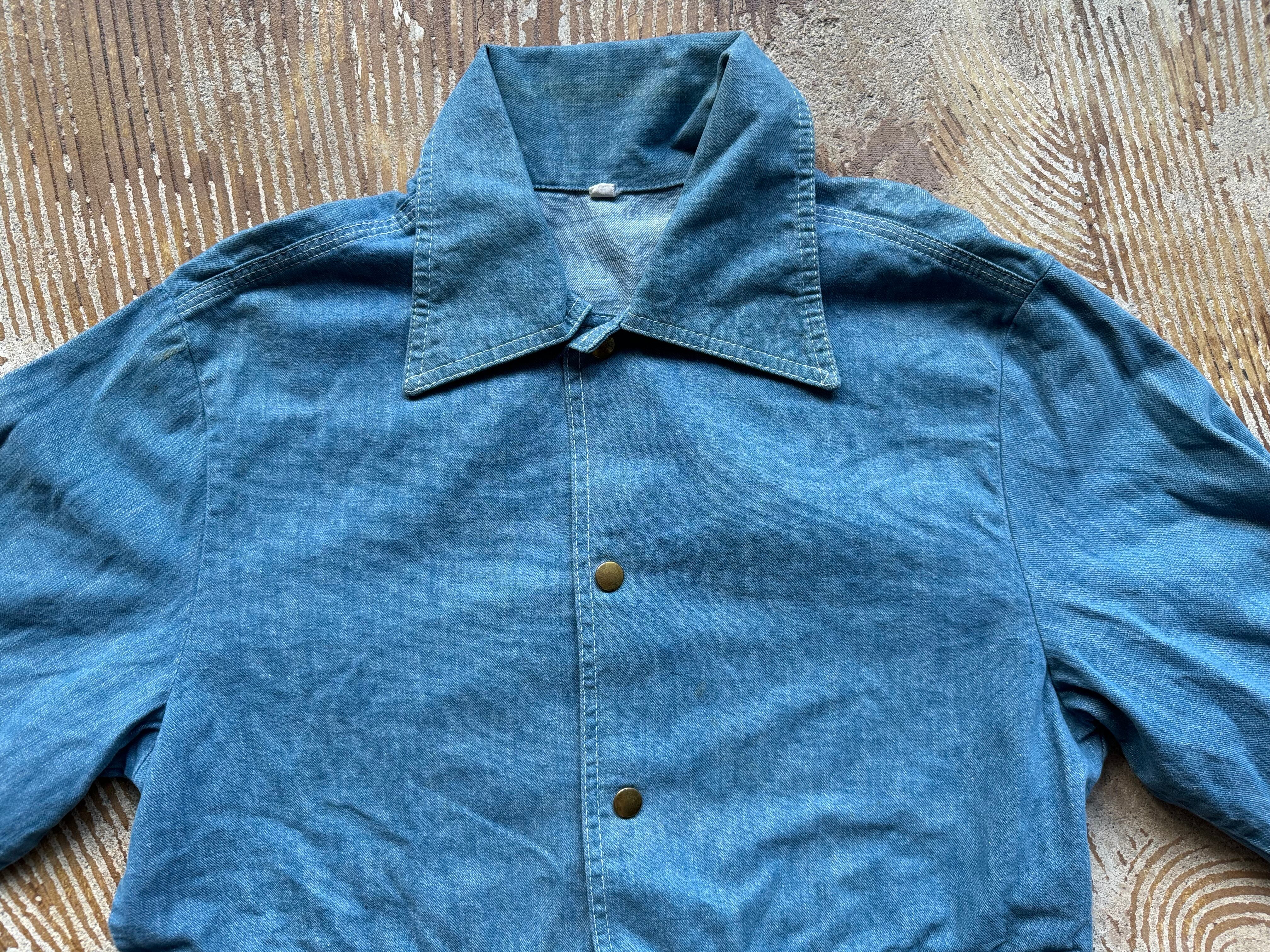 ポイント/ 襟の大きさ、デニムの風合い、シルエットなどからおおよそ70年代頃かと推測されるデニムのジャケットです。