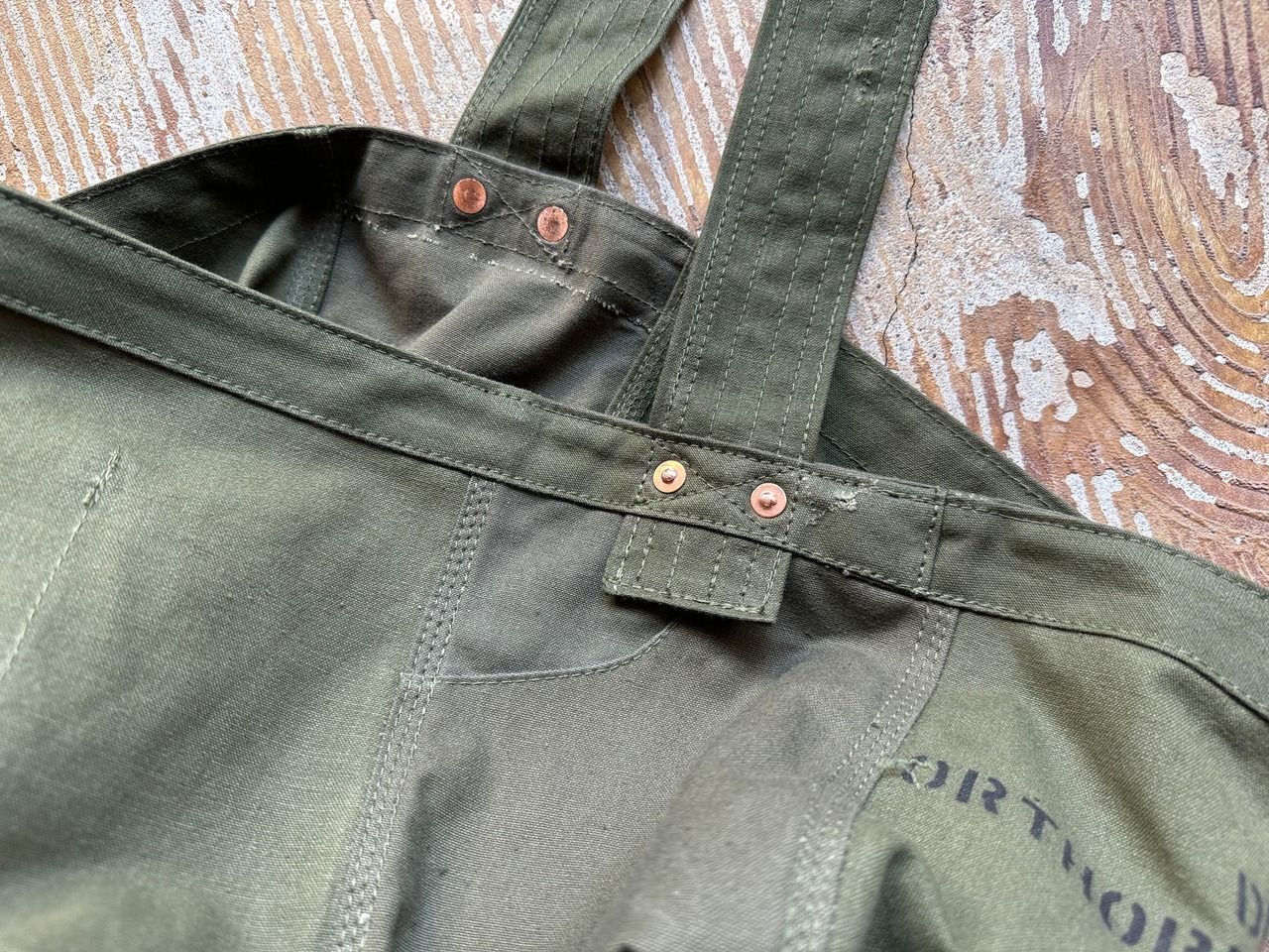 前面には当時のステンシルが残っており81年に納入されたことがわかります。ステンシルや、縫製跡、傷などがヴィンテージの雰囲気を倍増させます。