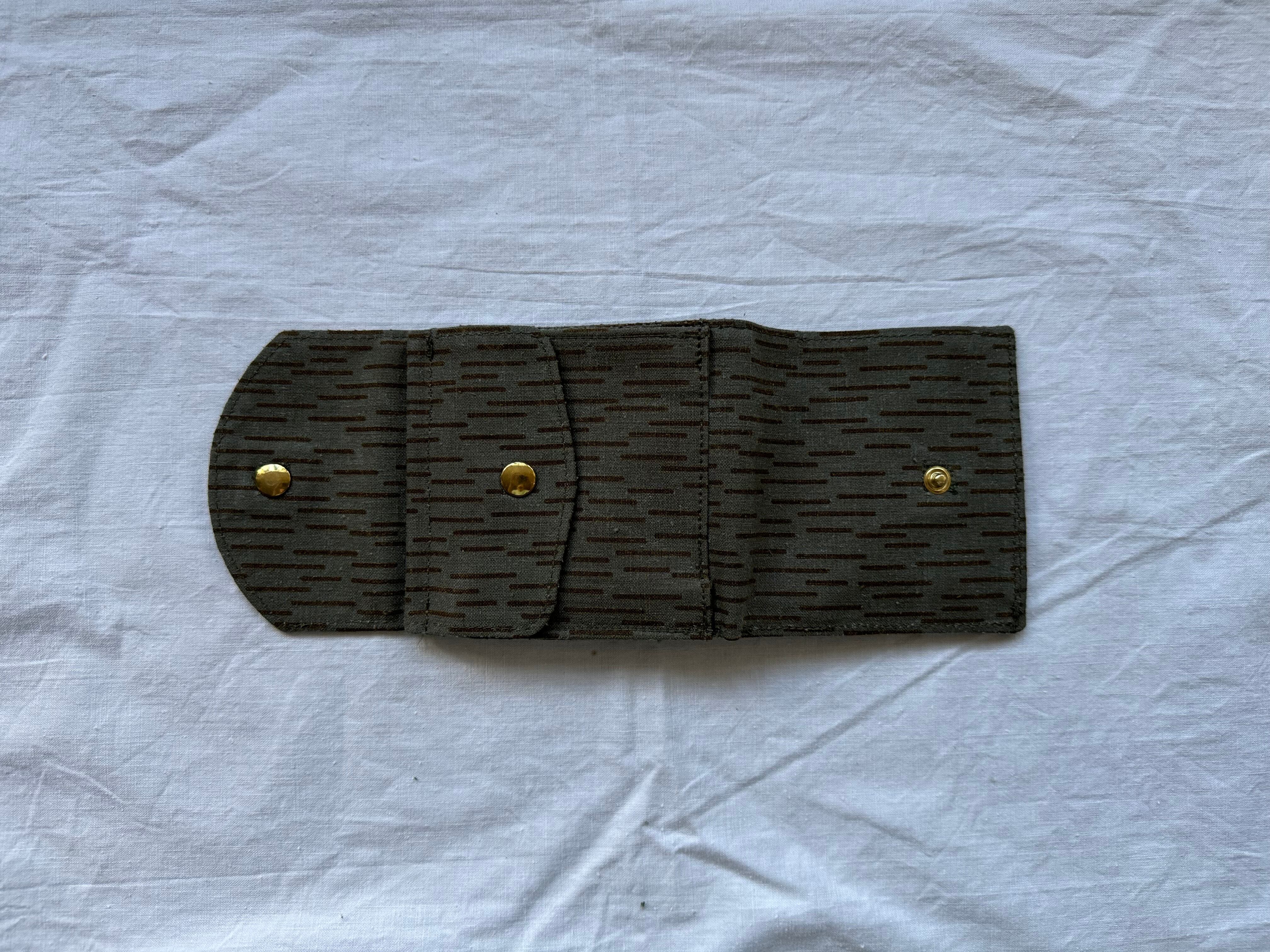 ヴィンテージの生地を使い、3つ折り財布を製作しました。