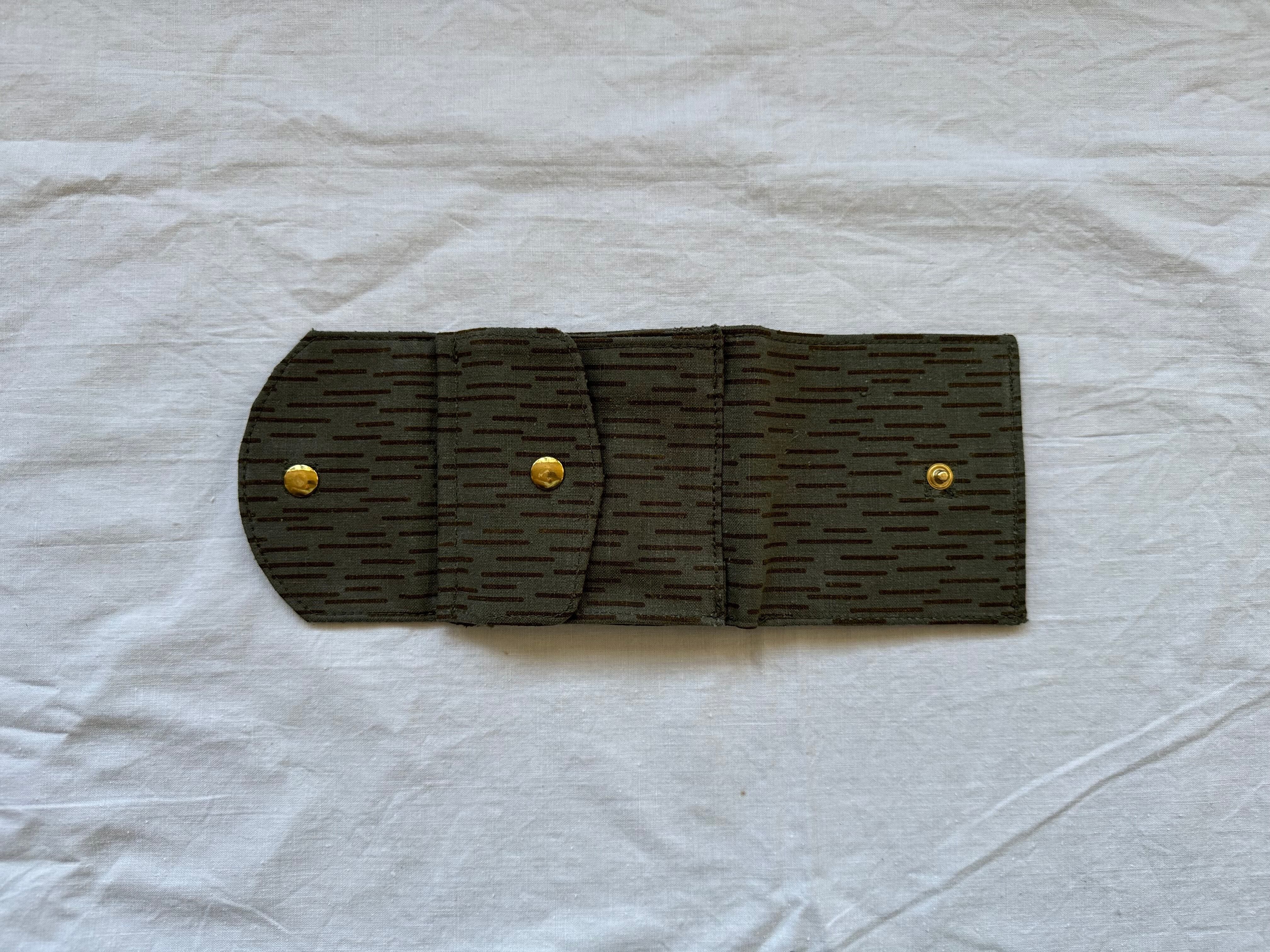 ヴィンテージの生地を使い、3つ折り財布を製作しました。