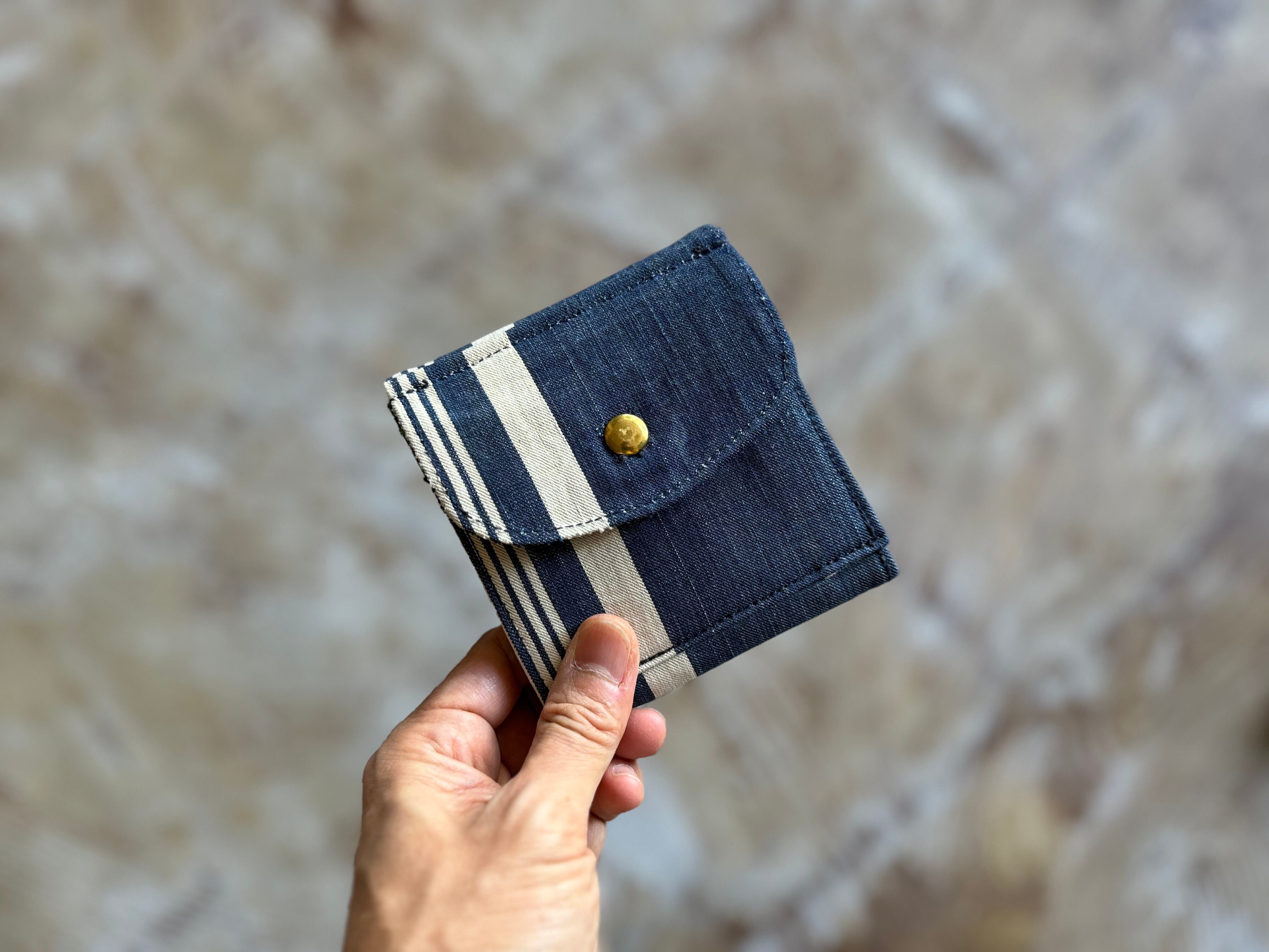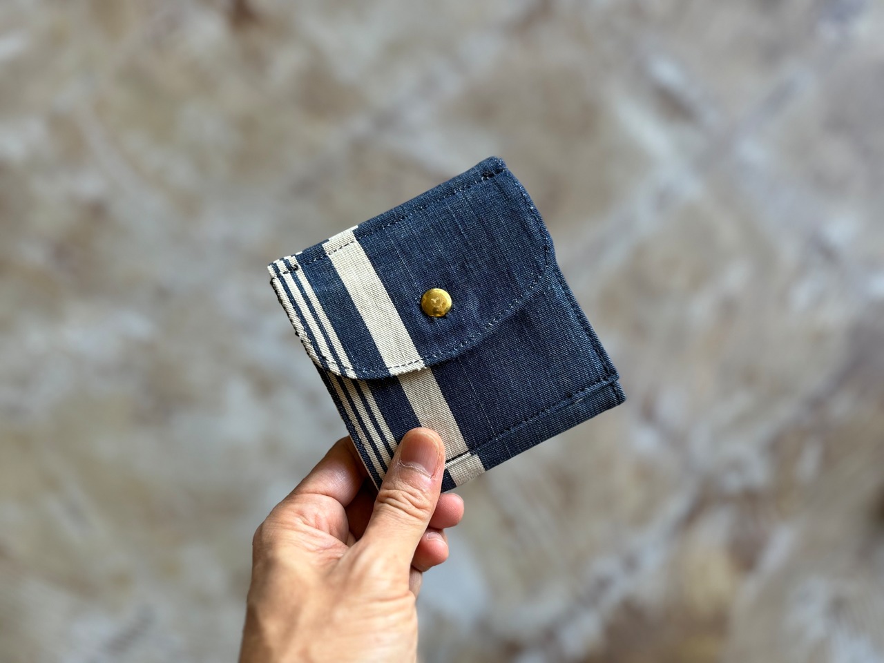 ヴィンテージの生地を使い、3つ折り財布を製作しました。