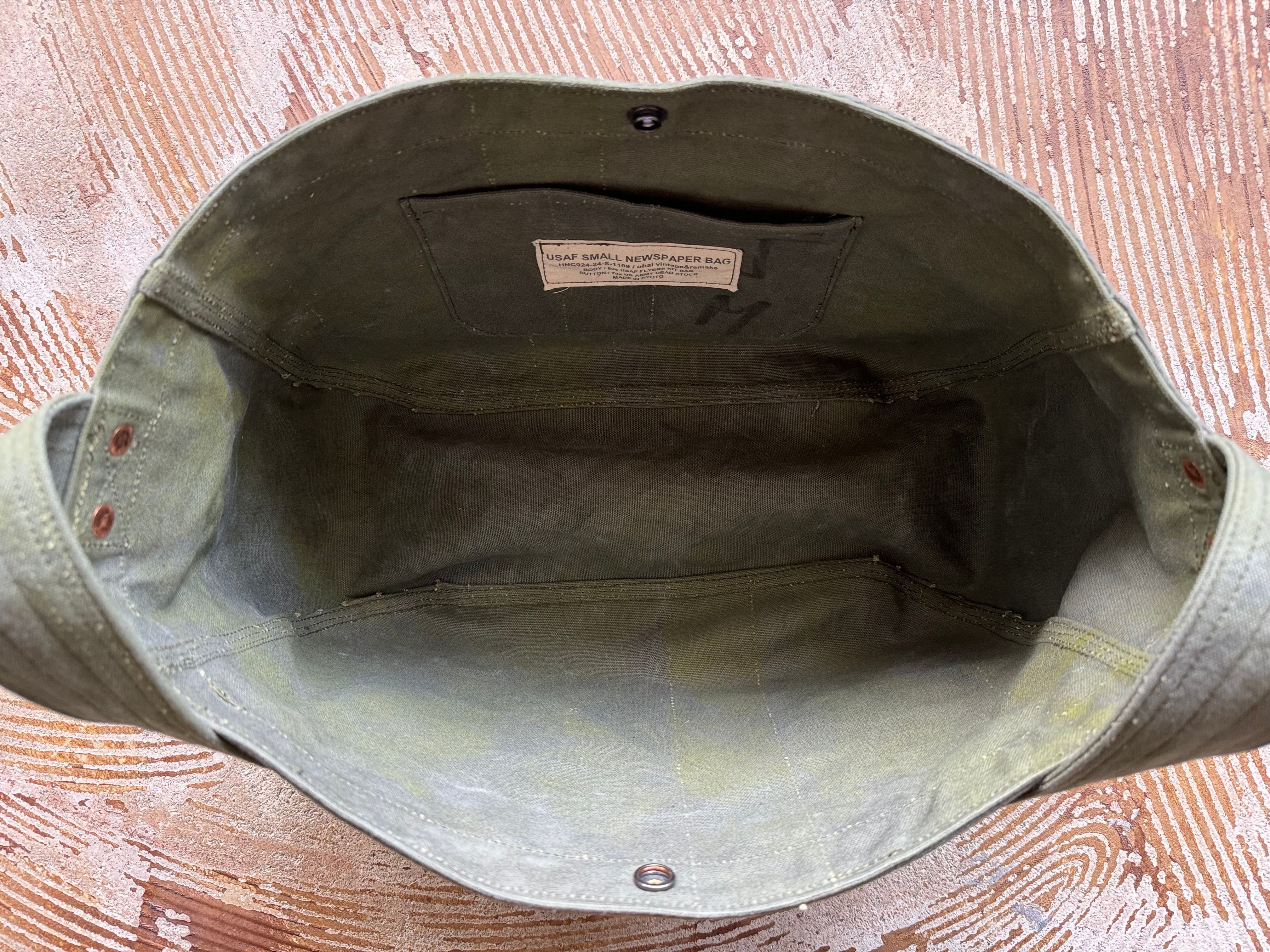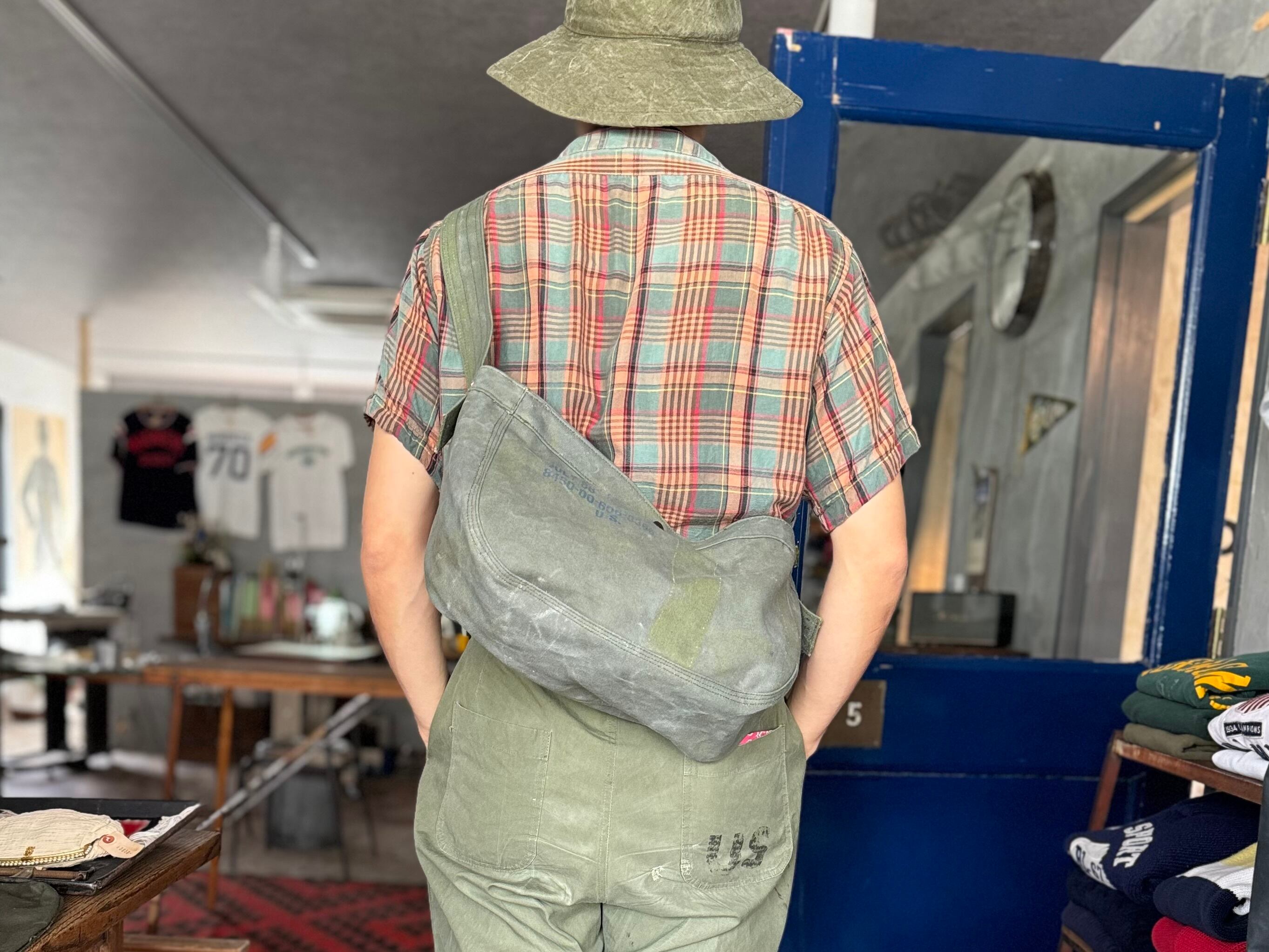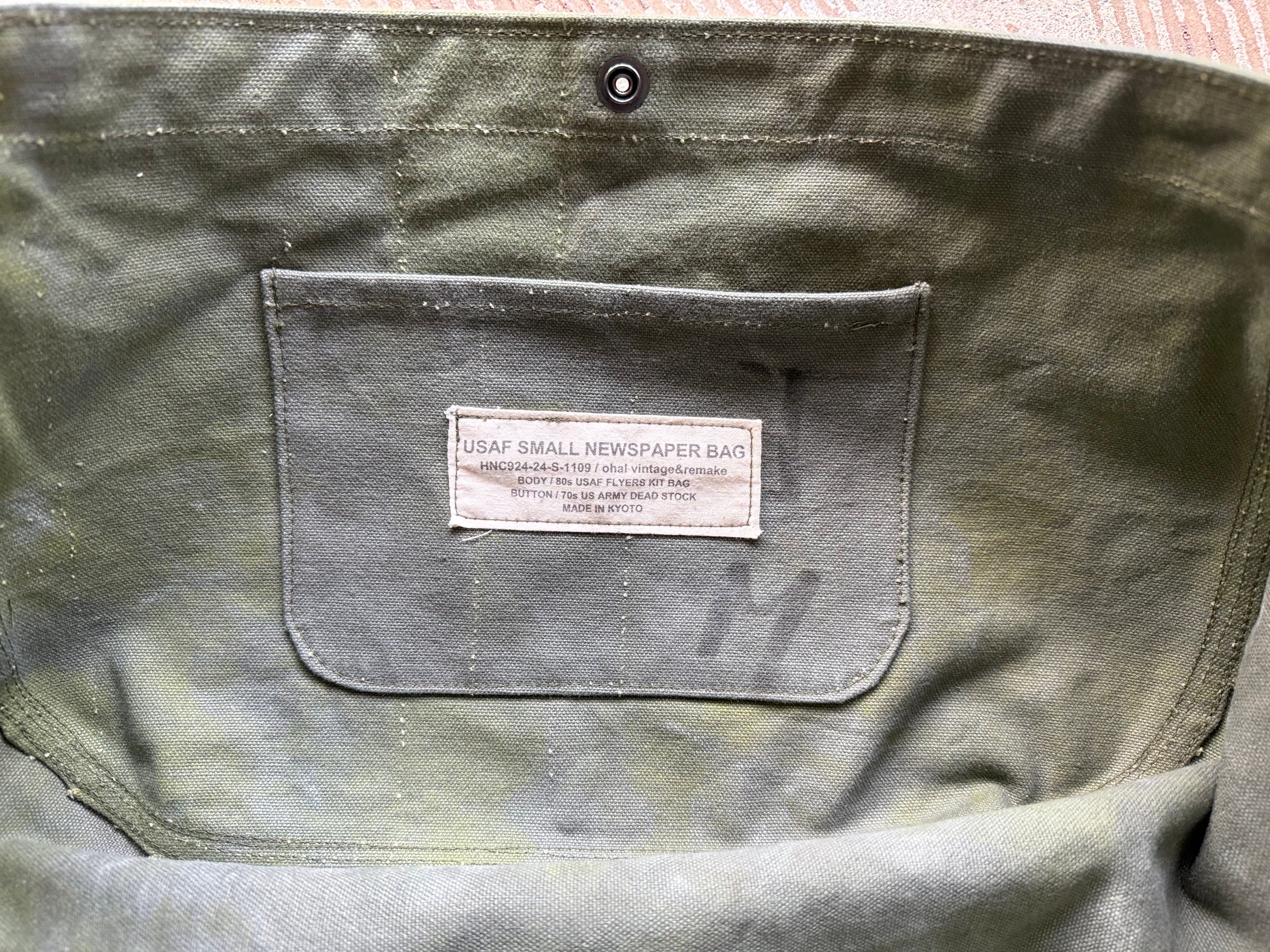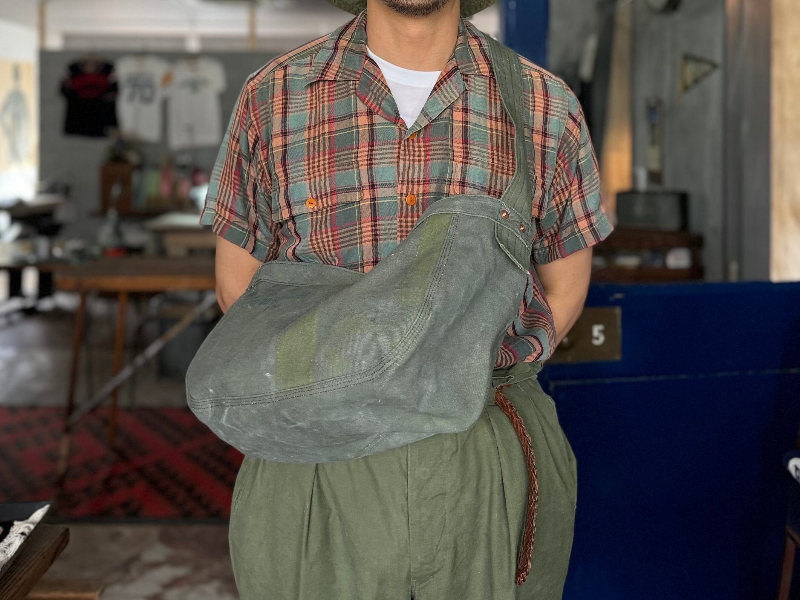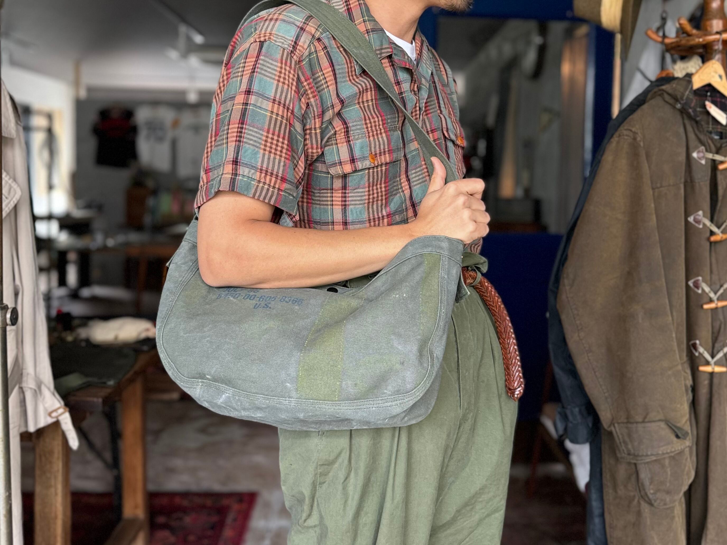 昔、新聞配達をする時に使用されていたバッグをサンプリングしております。ヴィンテージなどで見かけるニュースペーパーバッグよりも少し小さめで女性でも合わせやすいサイズ感。もちろん男性でも使いやすいサイズ感です。