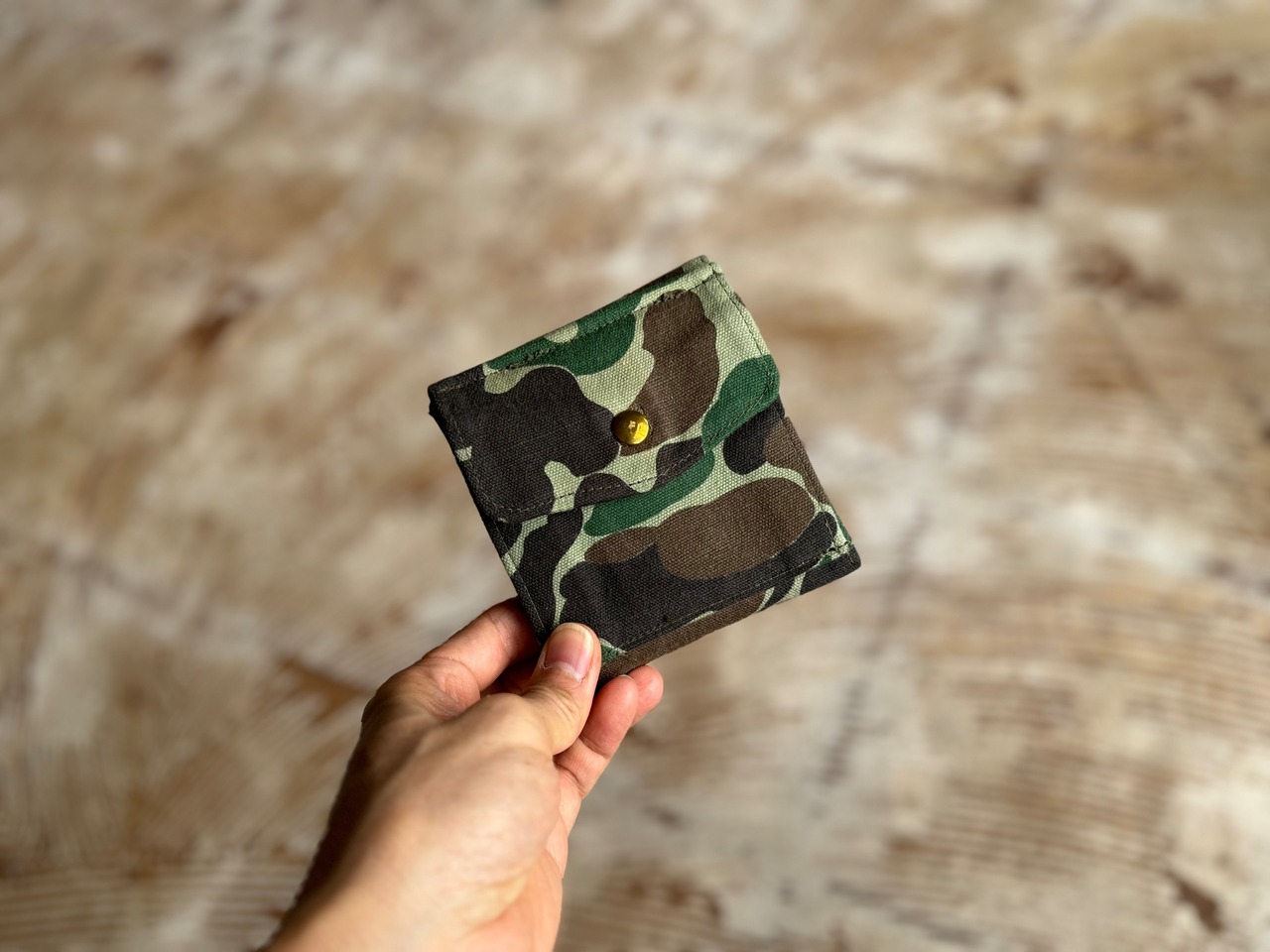 ボディーは70年代、アメリカで使用されていたハンターカモのパンツの生地を使用。