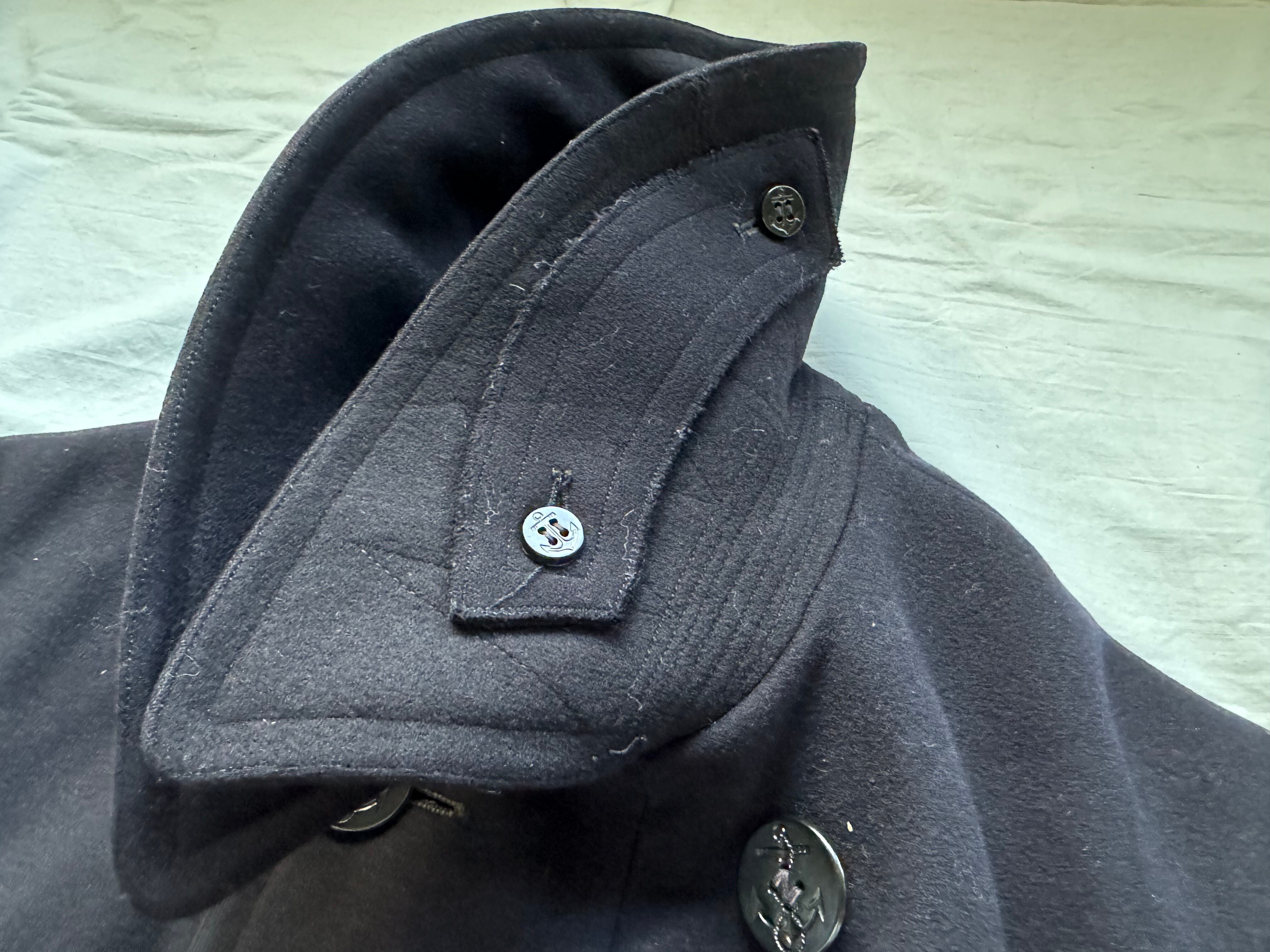 ポイント/ 高密度の肉厚なメルトンウール。襟裏にはストームフラップ、ポケットのスレーキはコーデュロイ。タグがプリントではなく刺繍タグですので年代は30年代頃になります。