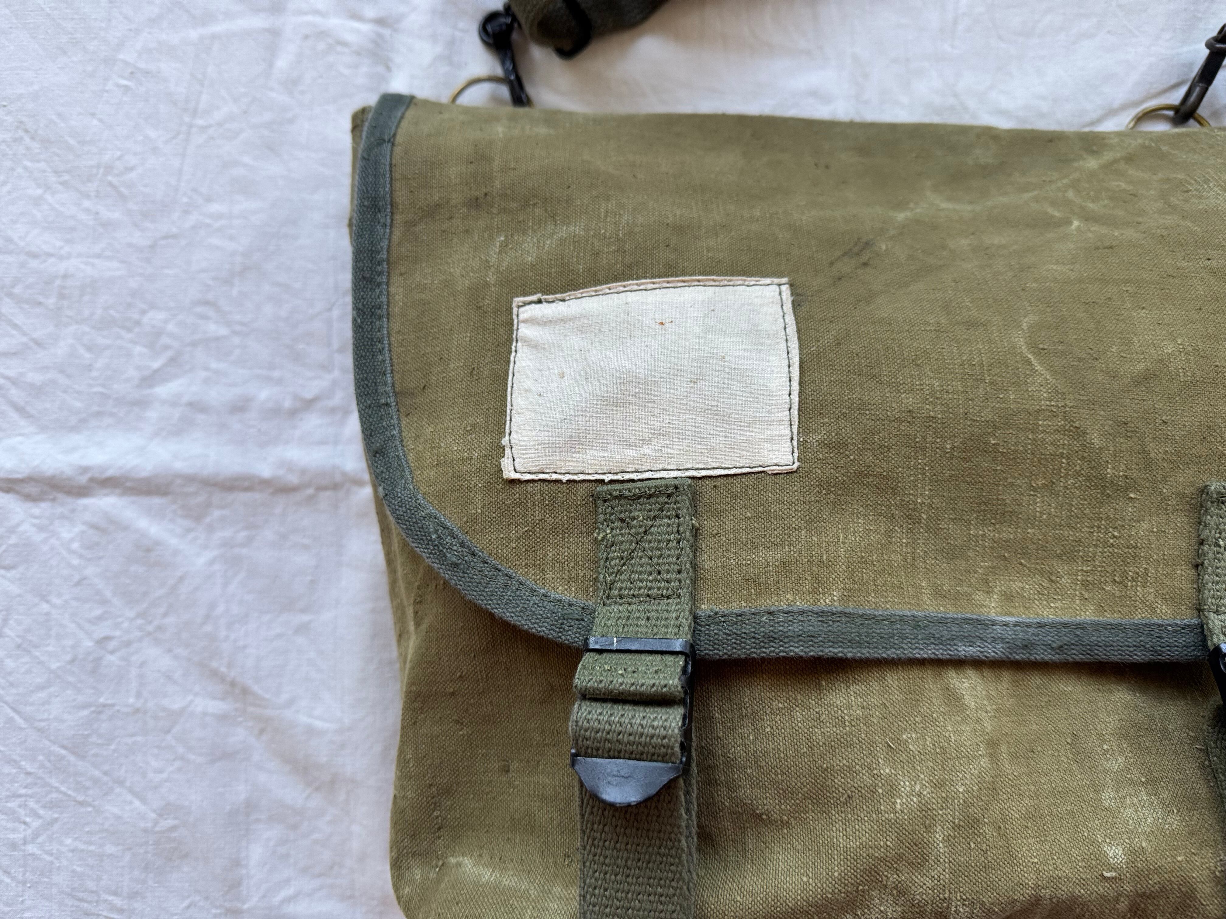 ボディーの生地は50年代頃のフランス軍で使用された、ダッフルバッグの生地。