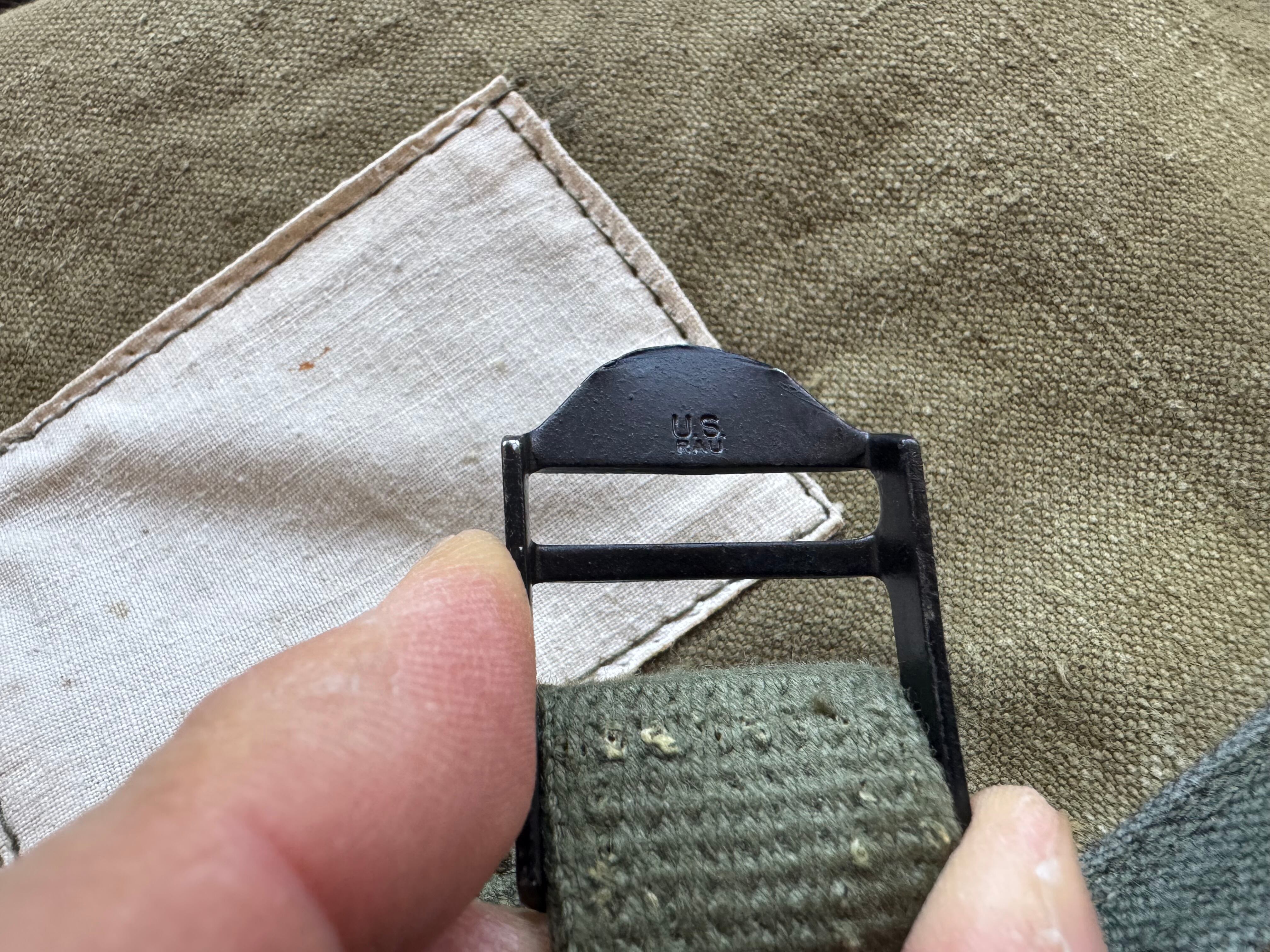 フラップを止めるバックルとキャンバステープはアメリカ軍の物です。バックルの裏には『US』の刻印が。。。