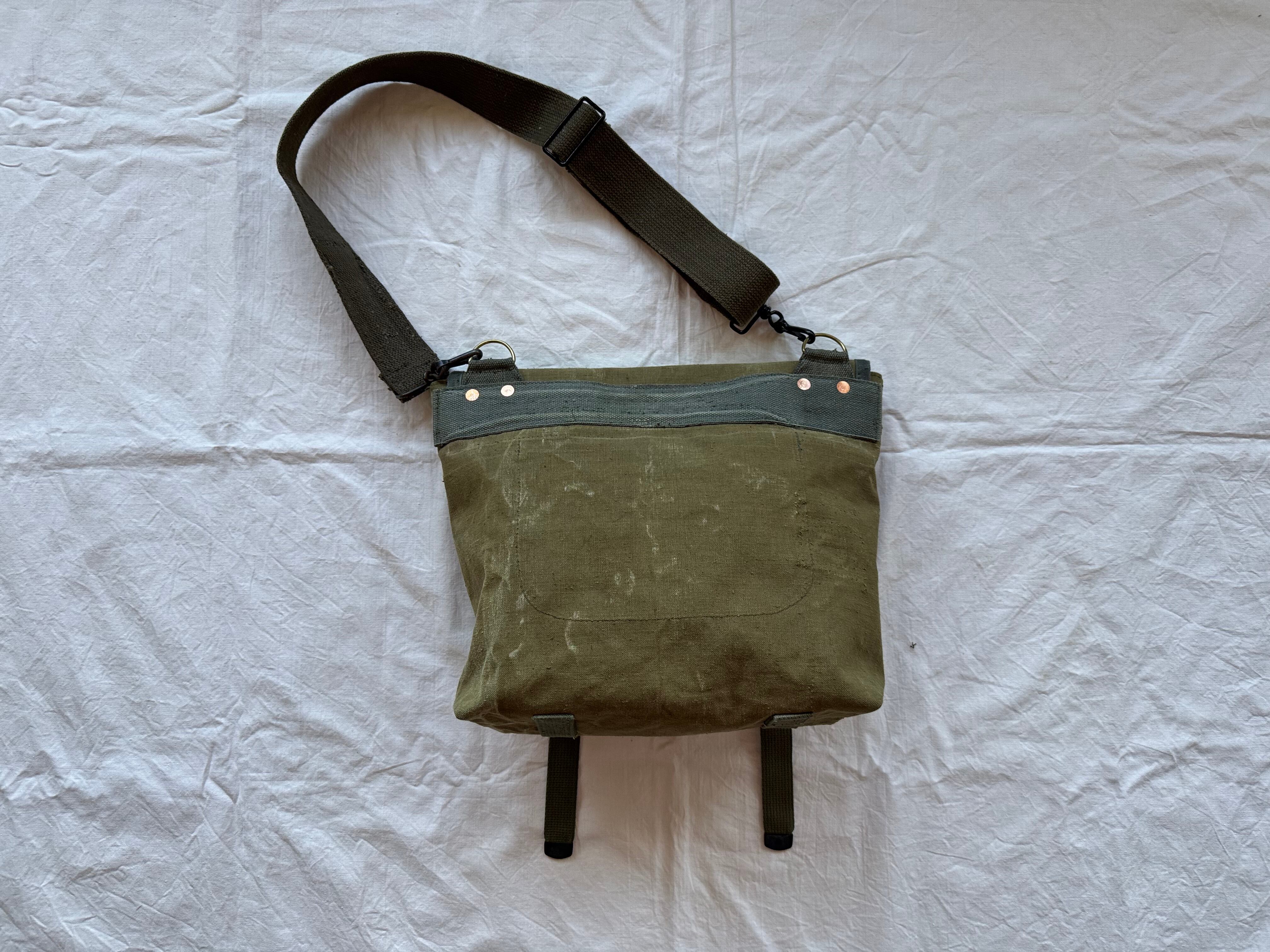 ヴィンテージのミリタリー素材を組み合わせて、ショルダーバッグを作りました。