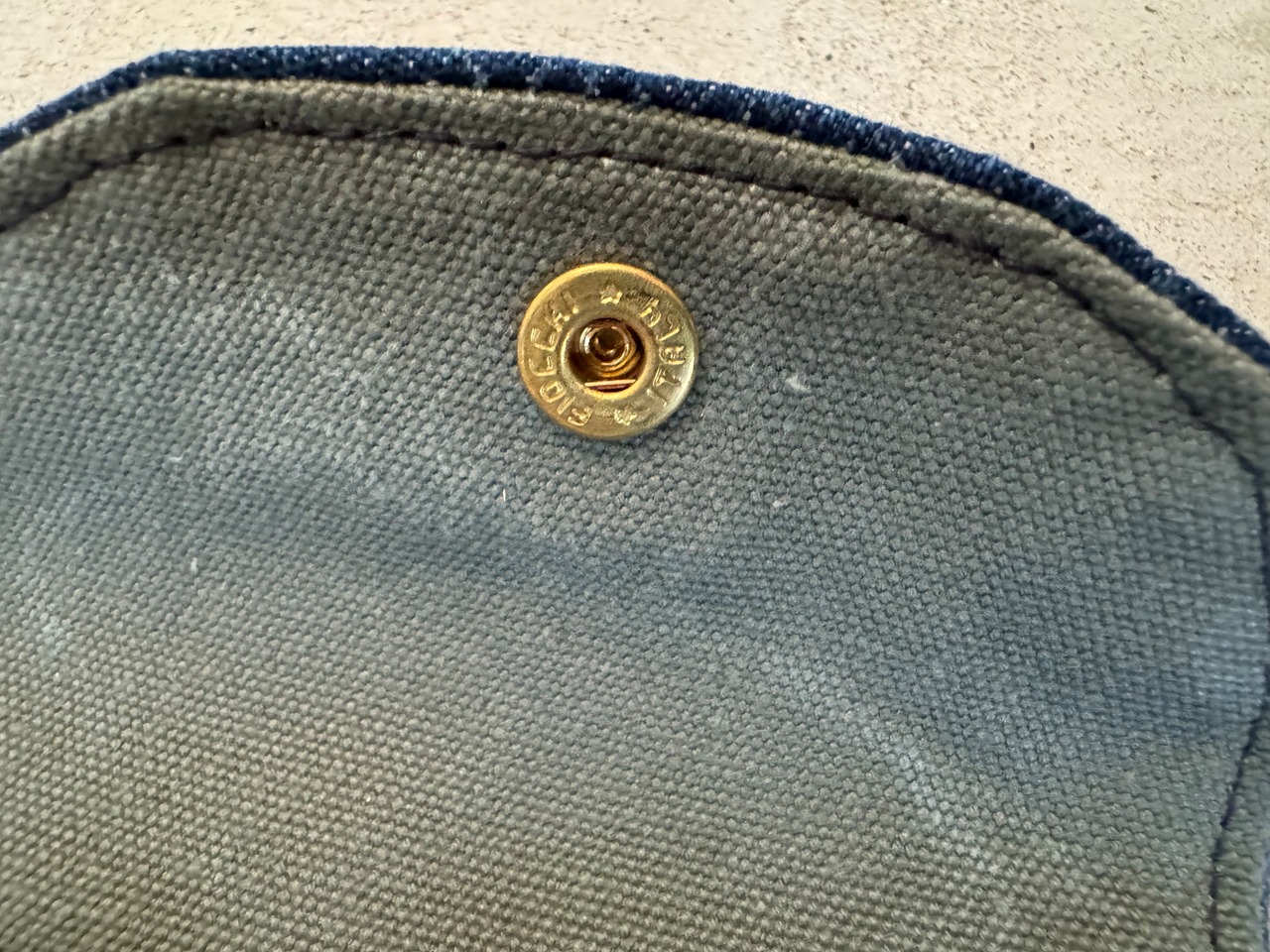 内側の真ん中のキャンバステープは80年代にアメリカ軍で使用されていた物で、金具は50年代ベルギー軍のショルダーバッグで使用されていた真鍮の金具です。