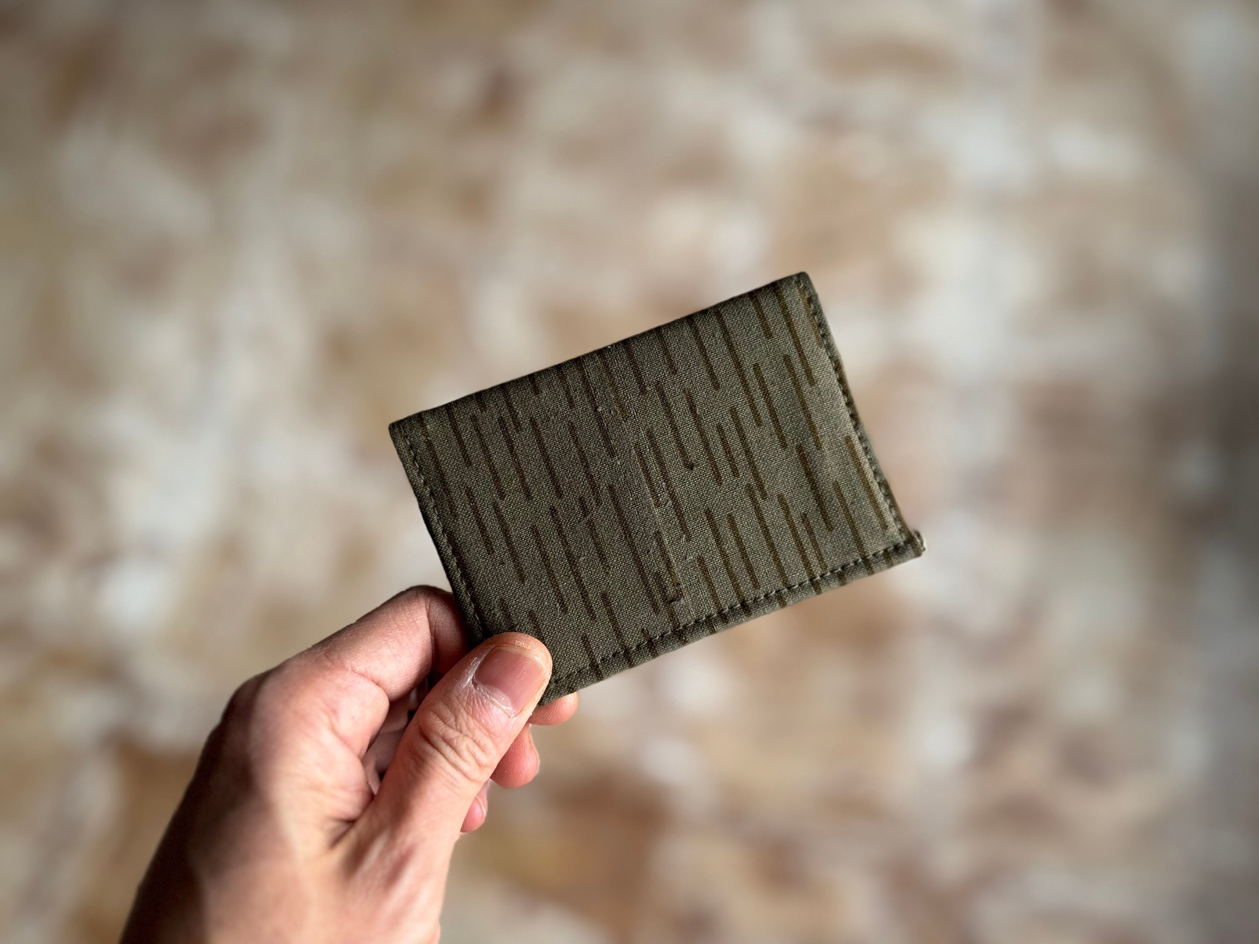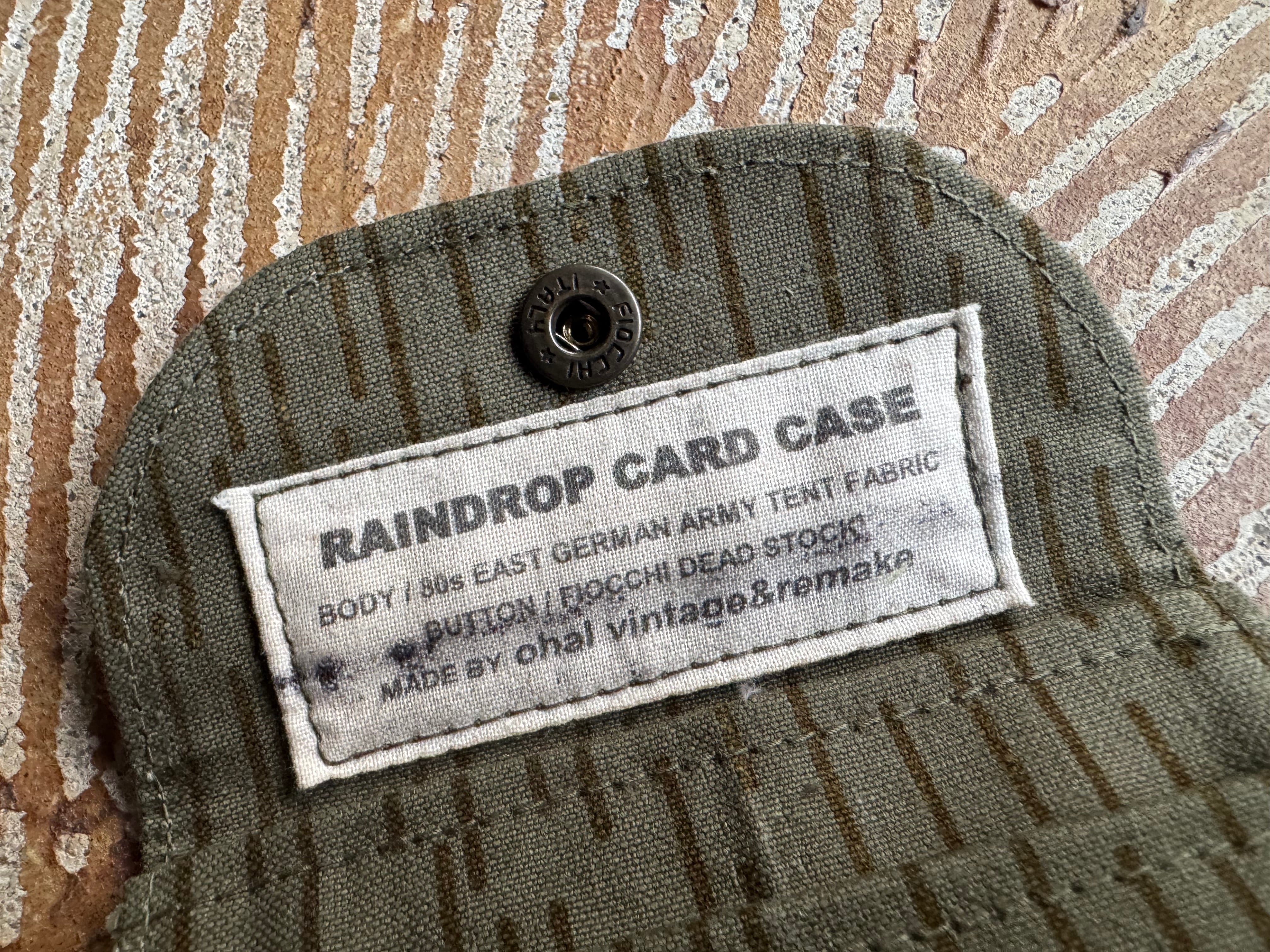 生地は80年代、東ドイツ軍のレインドロップ柄のテント生地。カード入れは2室ございます。